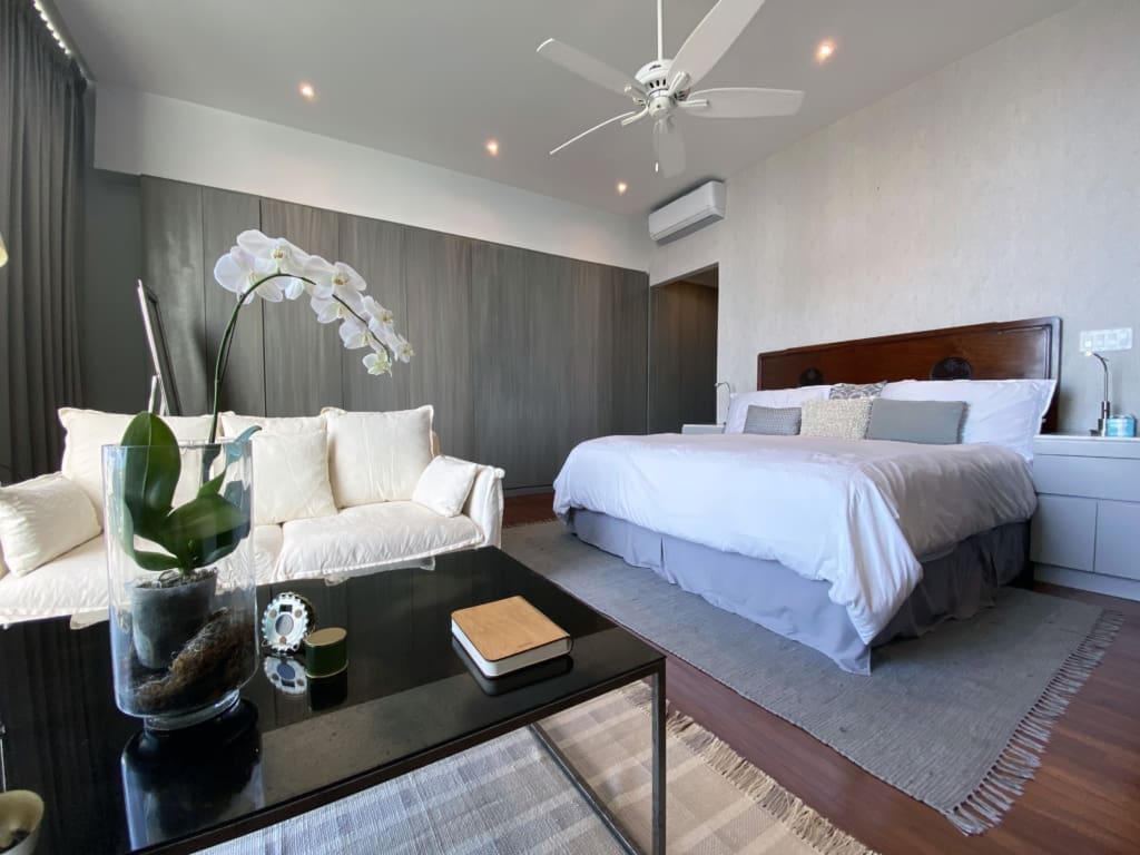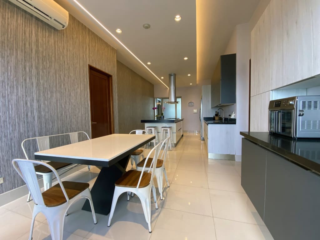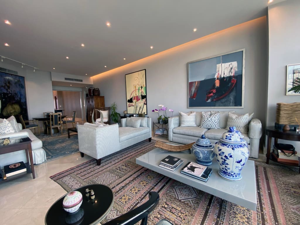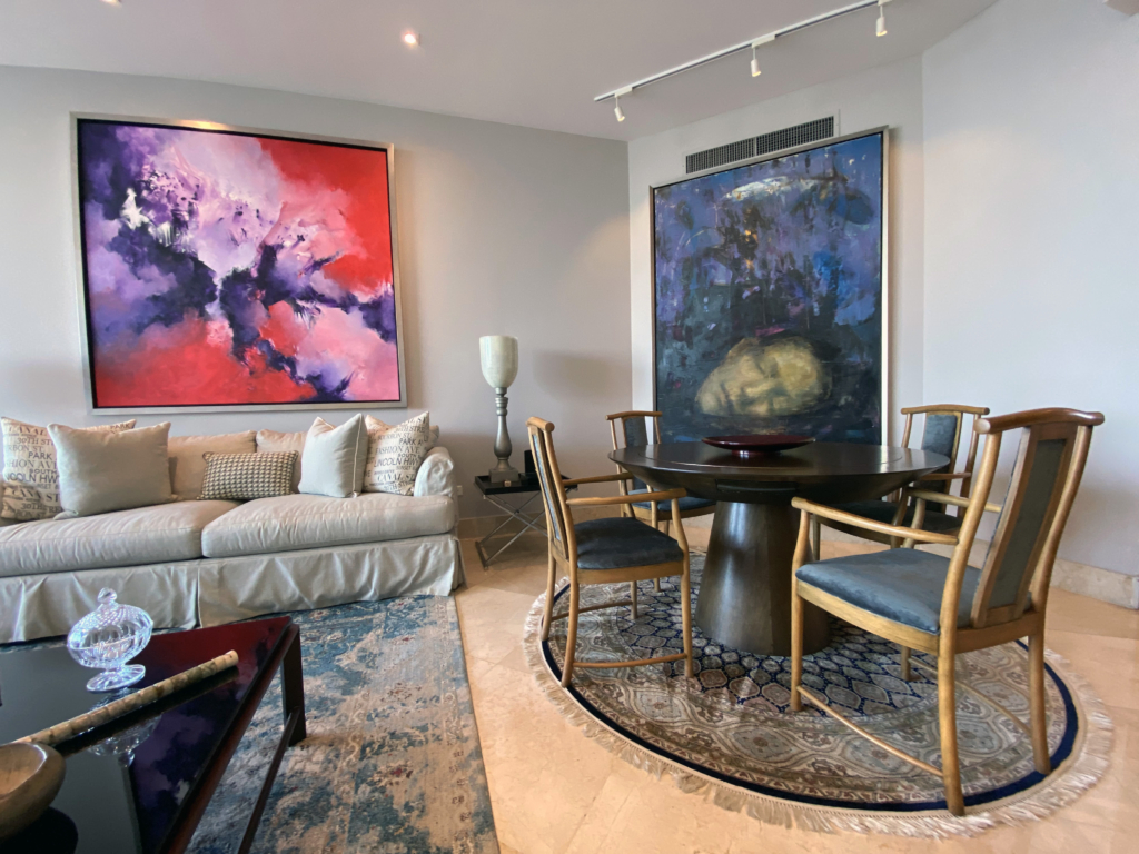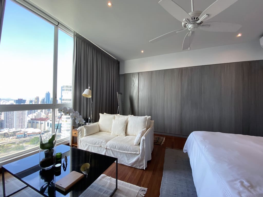 Este bello apartamento de 350 m2 con altura de piso a techo de 3.40 m, posee ventilación cruzada y espectaculares vistas a la Bahía y Ciudad de Panamá. Este apartamento cuenta con 3 habitaciones, la principal posee walk-in clóset, baño privado y una hermosa vista a la Bahía de Panamá, las otras 2 recámaras cuenta con su baño privado. Además podrá encontrar en este apartamento un vestíbulo, amplia sala comedor, sala de entretenimiento audiovisual, sala familiar con 2 pupitres integrados, espaciosa cocina con desayunador y vista al mar, lavandería y cuarto y baño de servicio.