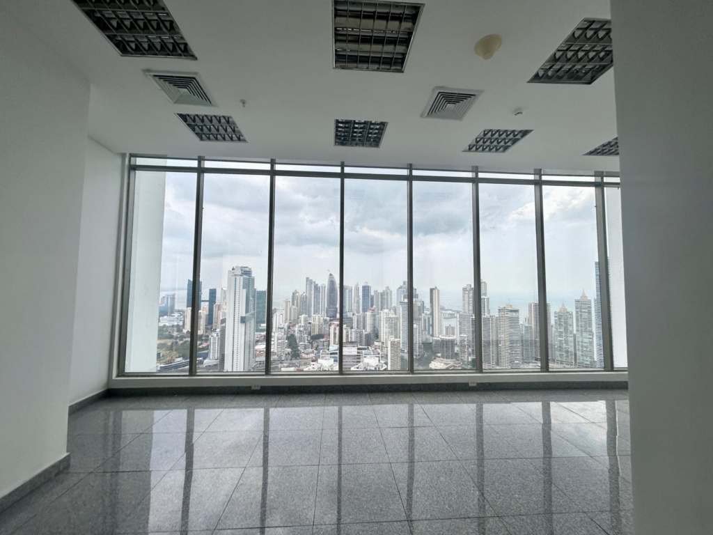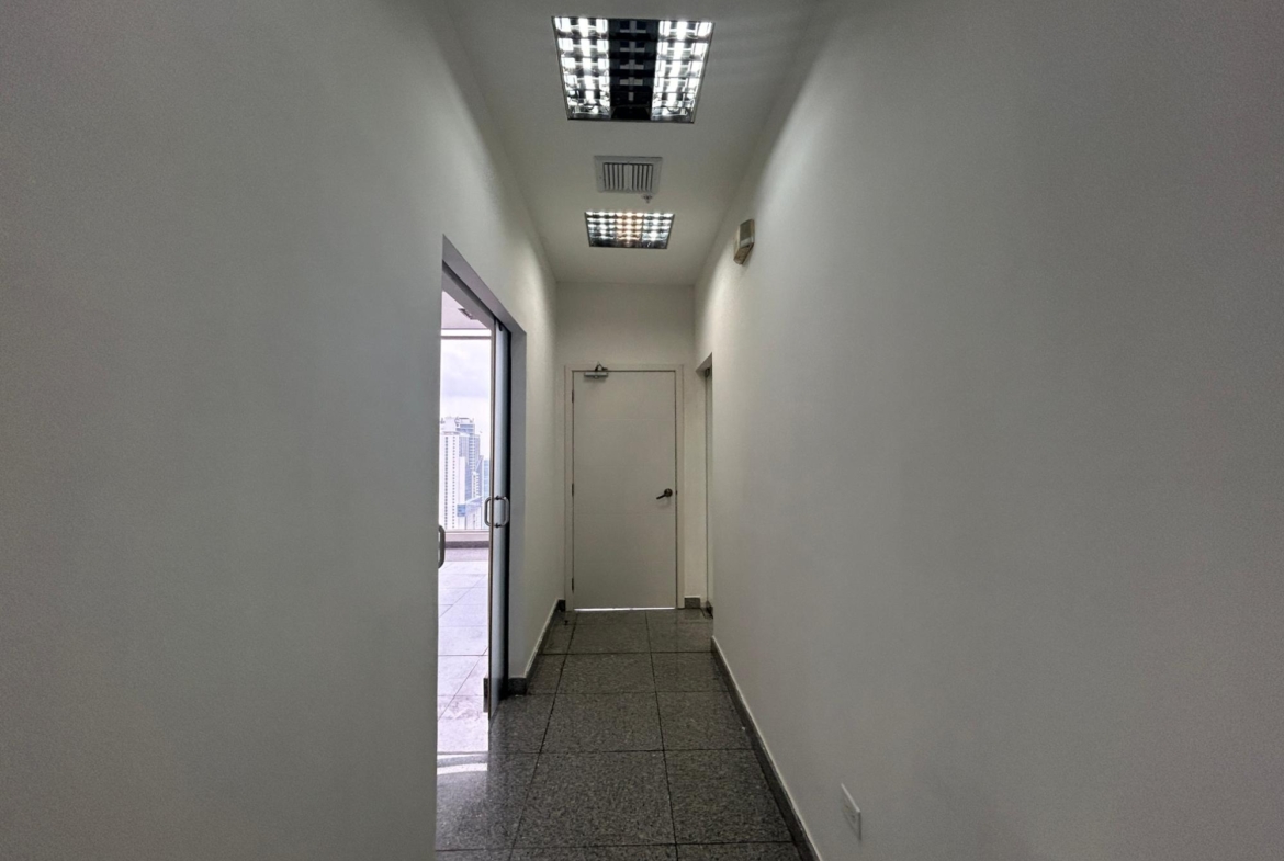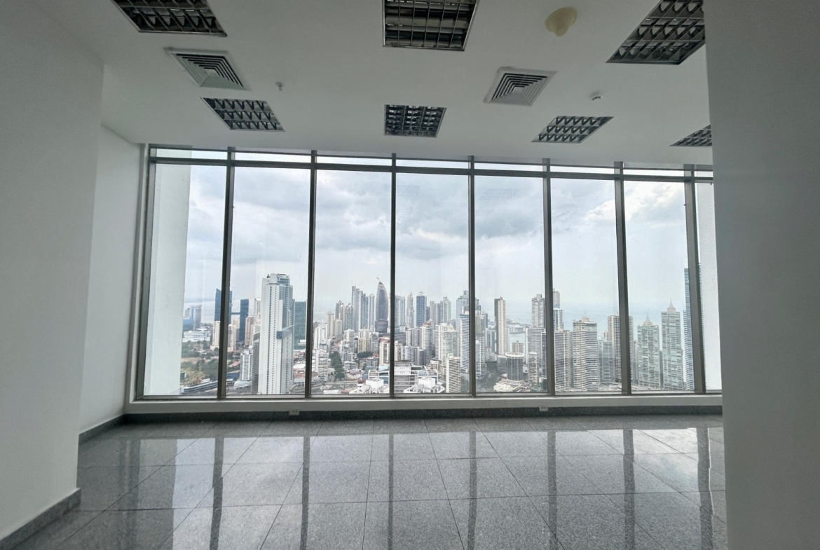 En alquiler espectacular oficina en la Avenida Balboa, piso 52. Ideal para trasladar o empezar tu negocio. Con un ambiente super agradable y distribución que favorece a la atención de clientes y reuniones en equipo. Tiene 108m2 distribuidos en 3 espacios delimitados, adicional 3 baños, y 2 puestos de estacionamiento en el E3. Lo interesante de esta propiedad es que tienes acceso a las áreas sociales del Hilton, lo cual favorece enormemente a la productividad de los trabajadores. Contáctanos para mayor información, BRACO PROPIEDADES – CP