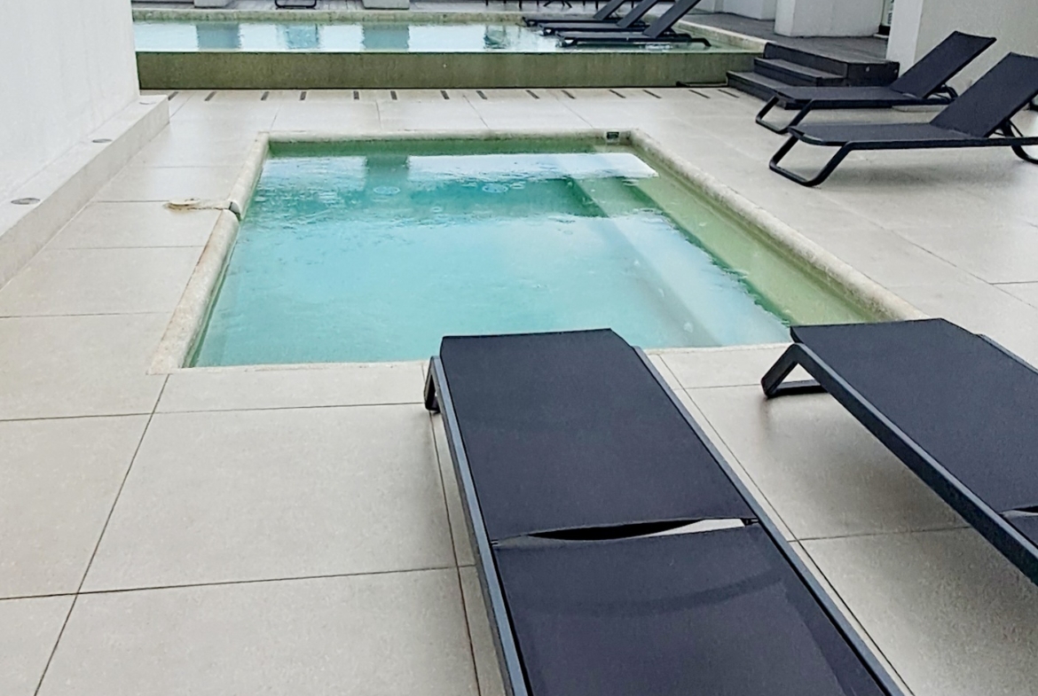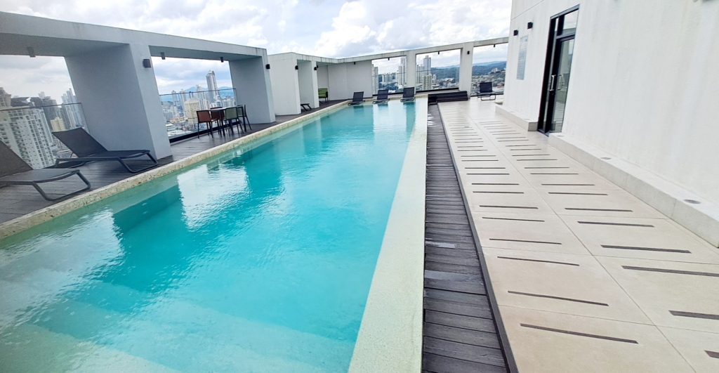 Piscina infinity en el último piso con vista panorámica