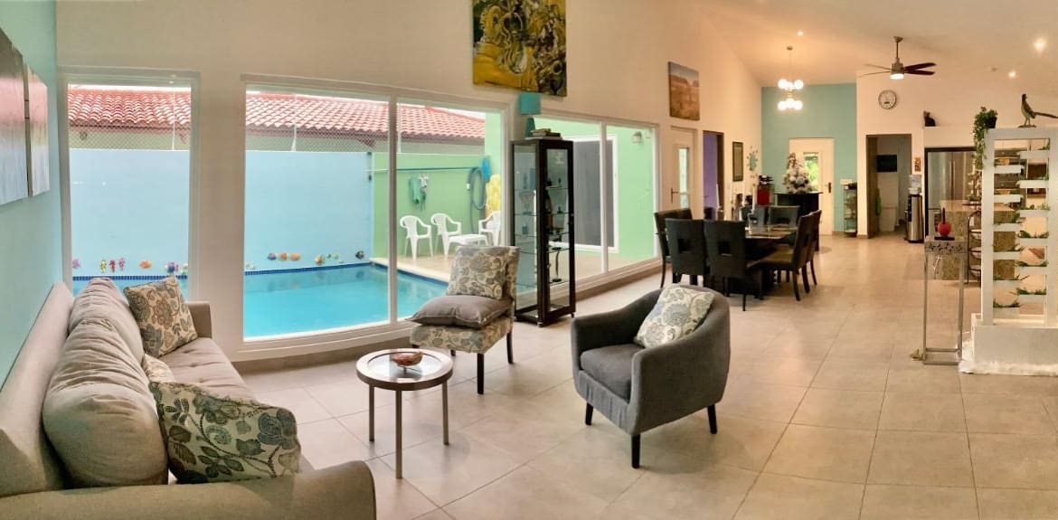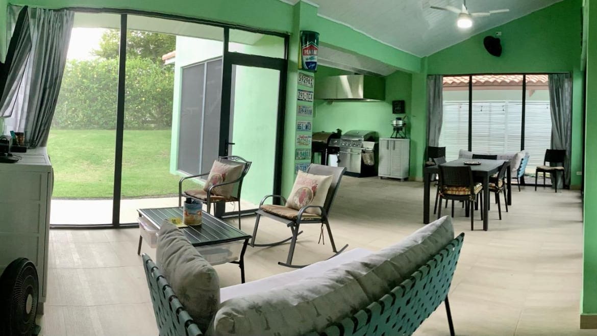 Descubre el epítome de comodidad y lujo en esta espaciosa casa de 327 metros cuadrados, con 4 habitaciones y 3 baños, construida según estándares norteamericanos en seguridad, privacidad y diversión. Ubicada en el codiciado Club Ecuestre, esta propiedad ofrece una combinación única de comodidades modernas y una ubicación privilegiada, perfecta para familias numerosas o para aquellos que adoran el entretenimiento. La propiedad en Ecuestre permite la membresía en el Club Coronado Country sin cuotas de membresía iniciales ni pagos iniciales, solo requiere cuotas mensuales de membresía a una tarifa reducida. Características clave: Construcción con bloques de 6 pulgadas para durabilidad y seguridad Exoneración de impuestos hasta 2029 Pantallas de seguridad Fuertec con vidrio de seguridad sólido en todas las ventanas de apertura Cocina moderna con granito de alta gama, electrodomésticos de acero inoxidable y una amplia isla con caída de granito Techos altos tipo catedral y un diseño de planta abierta con múltiples áreas de estar Unidades de aire acondicionado Panasonic inverter de alta eficiencia y ventiladores de techo en cada habitación y en la sala principal Área privada de piscina con piscina Hayward de agua salada, red de voleibol acuático y un patio con mosquitero Patio en el segundo piso con impresionantes vistas al amanecer, atardecer y montaña Energía de respaldo con un generador de reserva Generac 16KW Patio lateral y trasero completamente cercado, ideal para niños y mascotas Cochera para dos autos de gran tamaño y estacionamiento pavimentado adicional Ubicación: Situada dentro del Club Ecuestre, se beneficiará de su planta de tratamiento de aguas residuales y suministro de agua de pozo. ¡Llámenos ahora y reserve una visita!