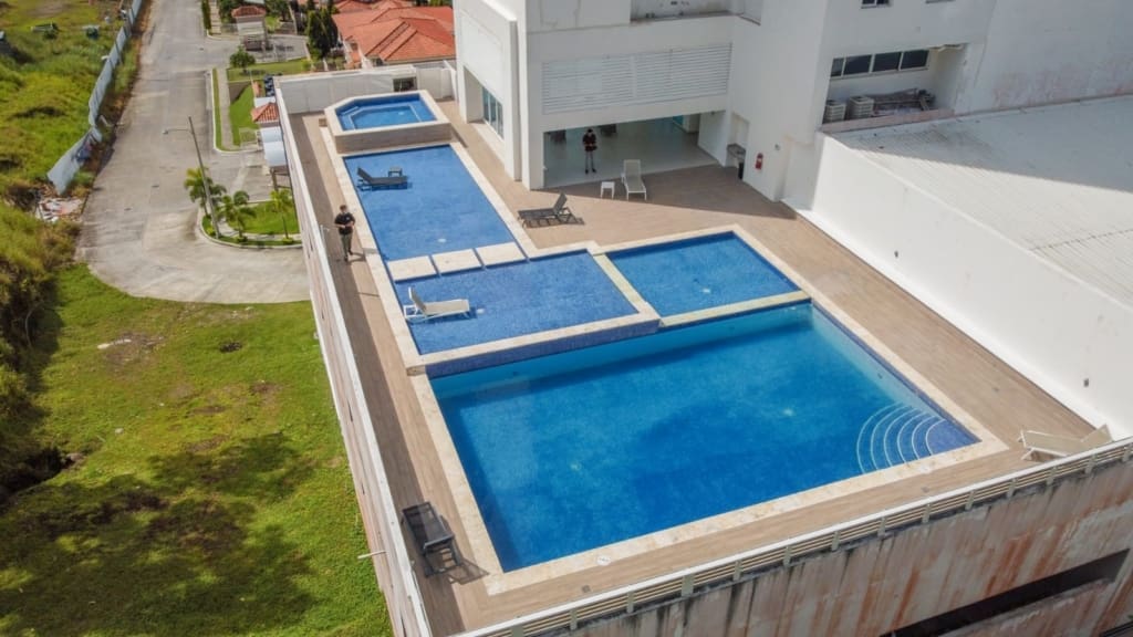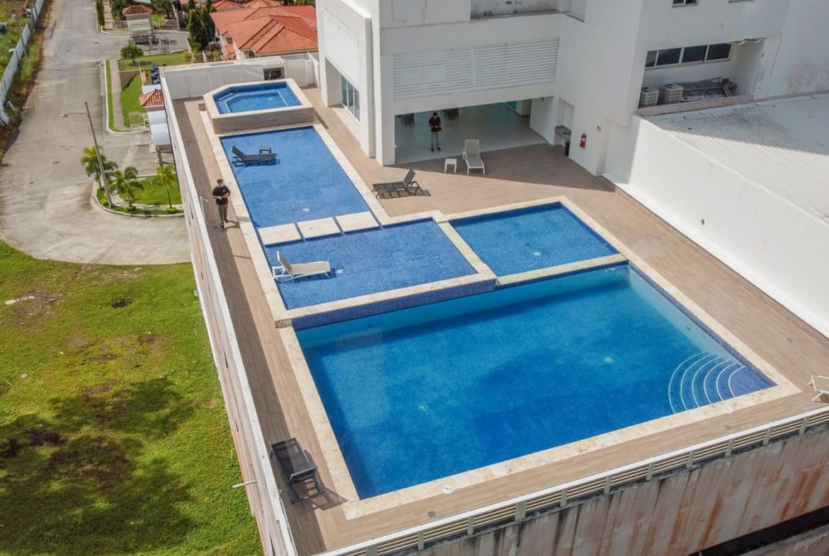 Piscina, Jacuzzi y Terraza: Imagina disfrutar de días soleados en nuestra amplia piscina, donde crearás recuerdos inolvidables con tu familia. Por las noches, relájate en nuestro jacuzzi “On Top” mientras contemplas el impresionante atardecer, brindando una vista inigualable de la hermosa ciudad de Panamá.