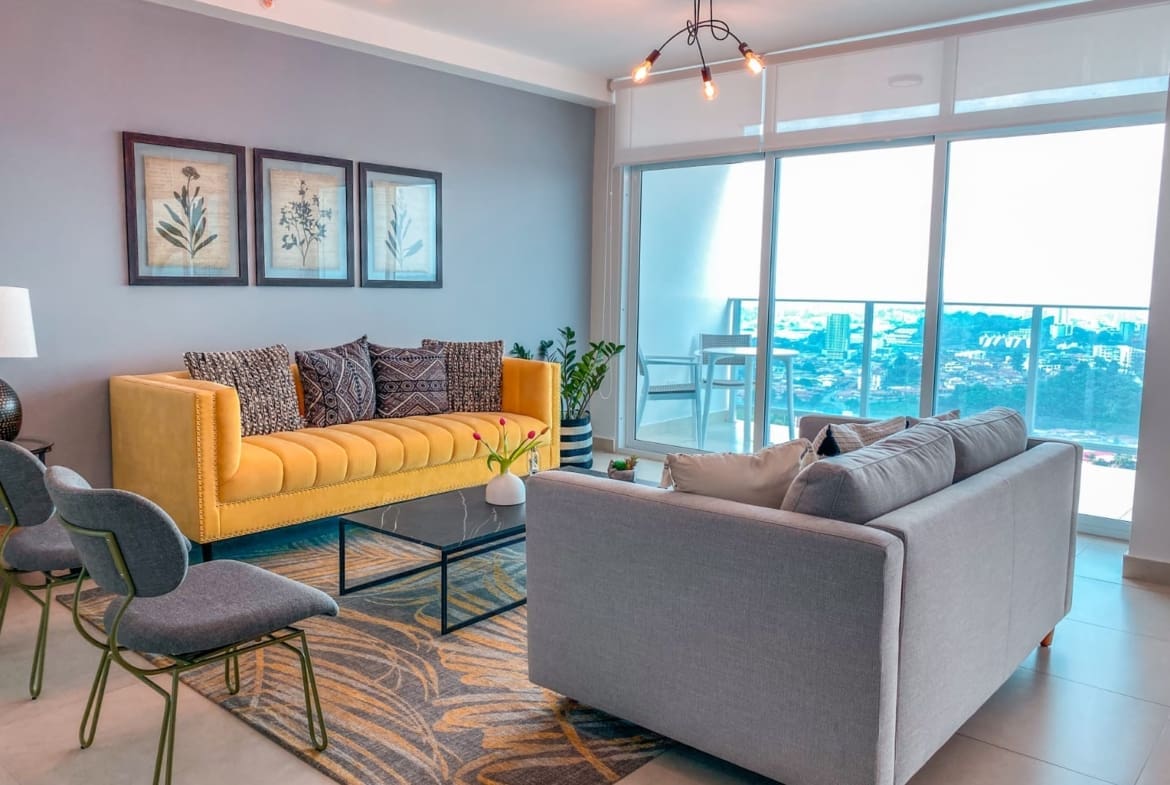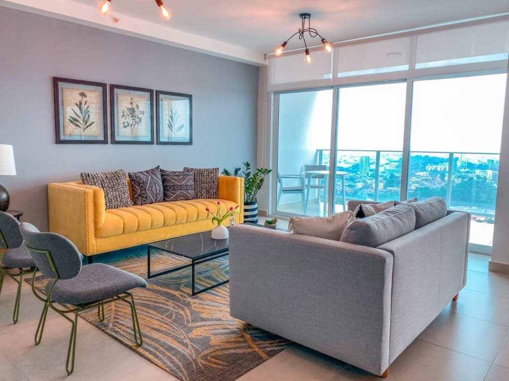 Apartamentos de Ensueño: Nuestros apartamentos son verdaderas joyas. Todos disfrutan de las espectaculares vistas de Panamá, tanto de día como de noche. Imagina relajarte en tu nuevo hogar mientras observas el horizonte desde la sala, el comedor o cualquiera de las habitaciones. Ofrecemos apartamentos de dos recámaras con 2.5 baños y apartamentos de 3 recámaras con 2 baños, estudio, cuarto y baño de empleada, además de balcones que te permitirán vivir “On Top” de todo. Los precios comienzan desde B/1900.00 por metro cuadrado. disponbles de 128m2, 136m2, 171m2, 218m2