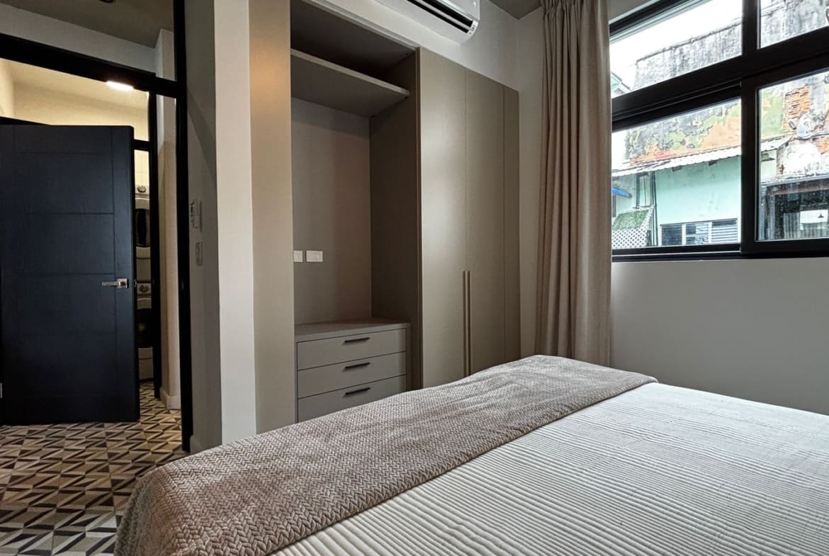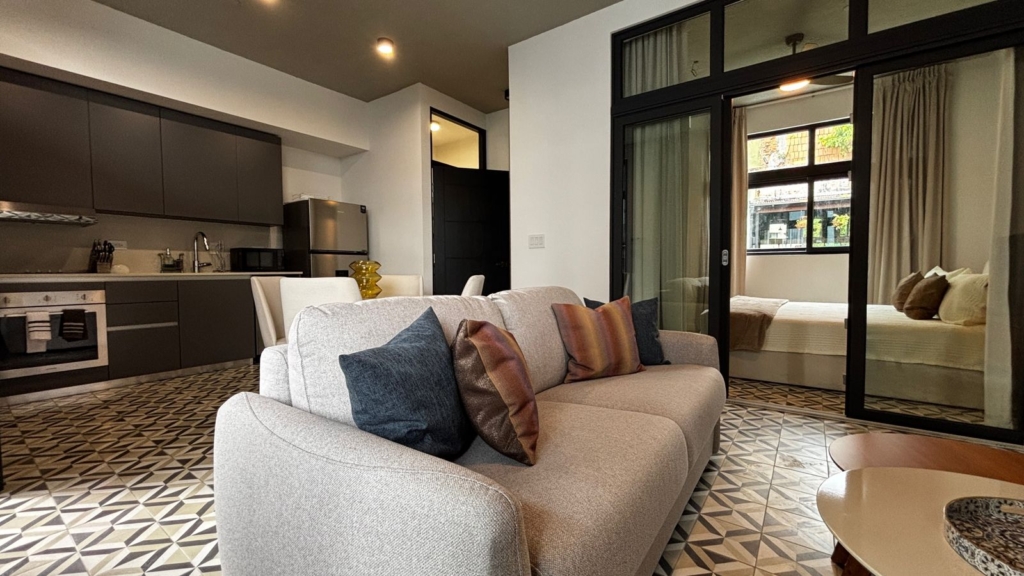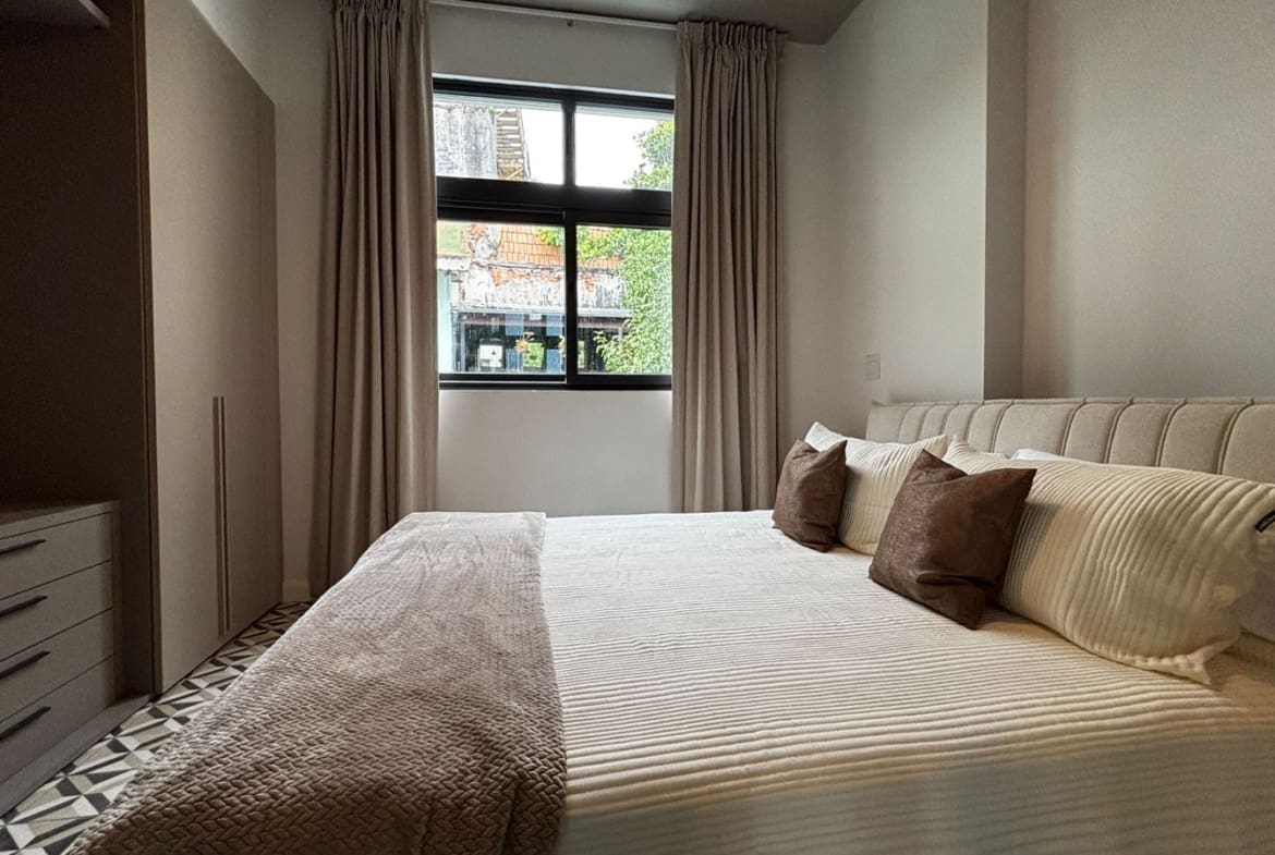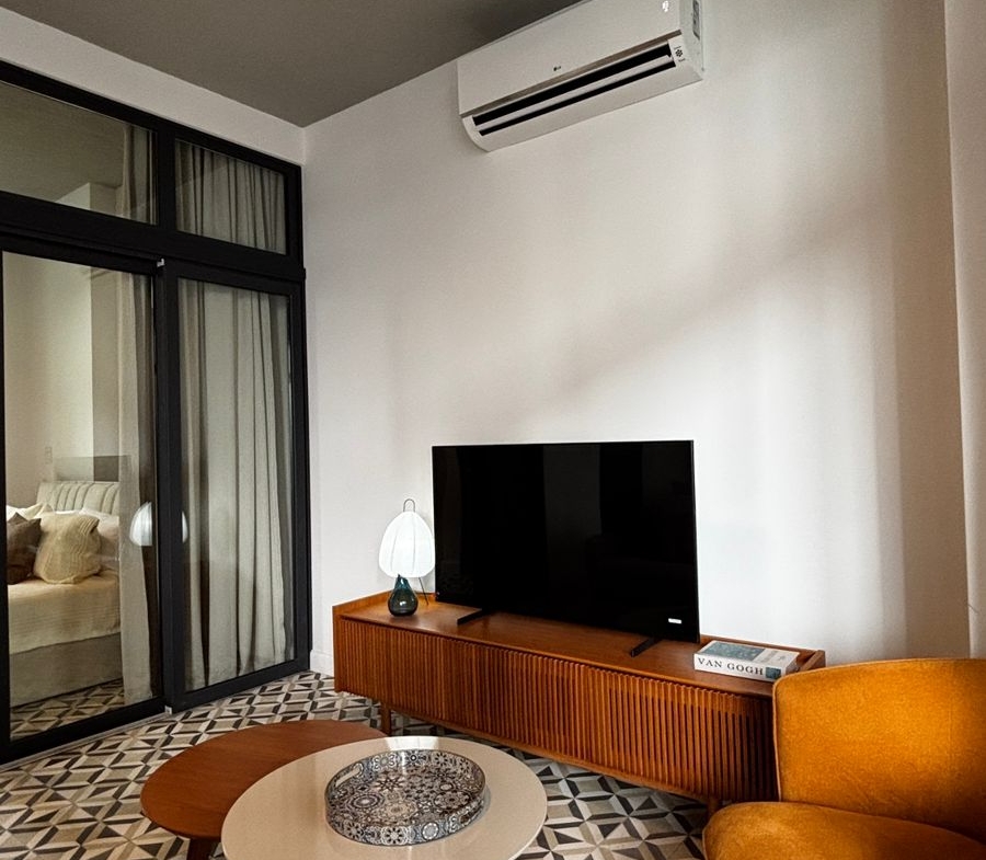 Apartamento de diseño práctico y acogedor con excelente iluminación natural. Ubicado en el corazón del Casco Antiguo, a pasos de restaurantes, plazas, cafés y galerías. Consta de una recámara cómoda, un baño completo, cocina abierta y sala comedor integrados. Equipado con línea blanca, aire acondicionado y mobiliario moderno.