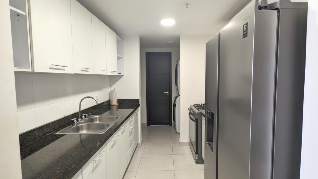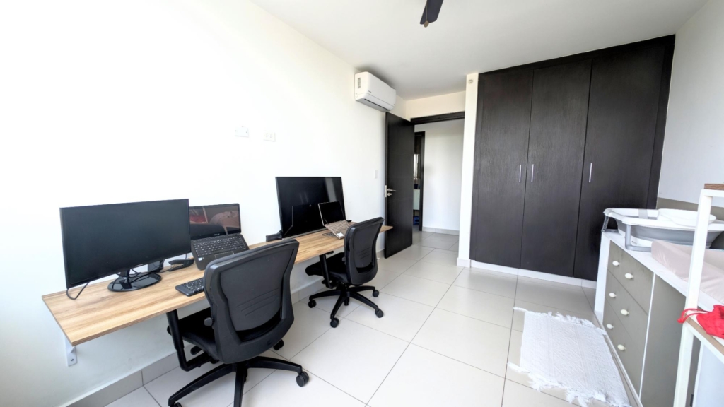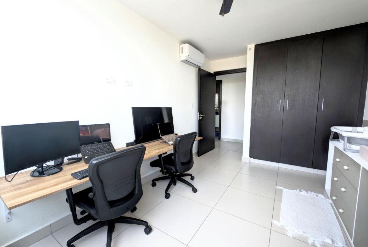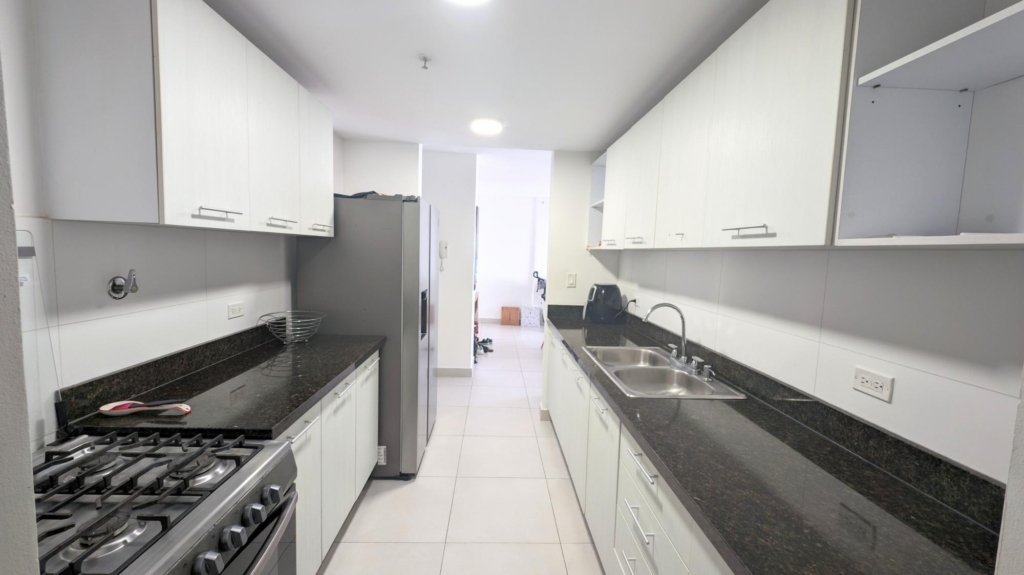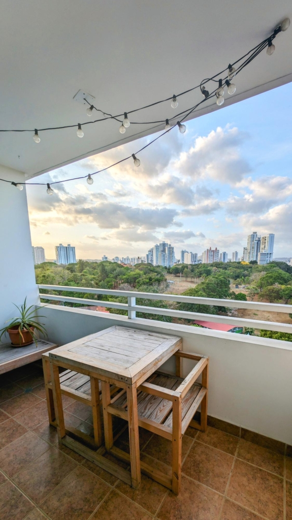 Este apartamento amoblado en PH Tee One es ideal para familias jóvenes o los que requieren un ambiente tranquilo en el centro de la ciudad. Ubicado en el límite entre San Francisco y Altos del Golf, el edificio está perfectamente ubicado en el borde del Parque Omar.. Las características principales de esta propiedad incluyen: – 126 m2 de área construida – Hermosas vistas al parque desde todas las recámaras – Sala-comedor con acceso directo al balcón – Cocina de galera con muebles modernos y electrodomésticos de buena calidad – 3 recámaras – 2 baños completos – Cuarto y baño de empleada – Excelente iluminación natural – Cuatro unidades de aire acondicionado Inverter – Estacionamiento de doble fondo para dos autos – Amplio depósito de 10 m2 incluido en la venta (excluida del alquiler) Las áreas sociales de Tee One incluyen una gran piscina infinita con terraza y área de BBQ, parque infantil, salón de fiestas y gimnasio bien equipado.