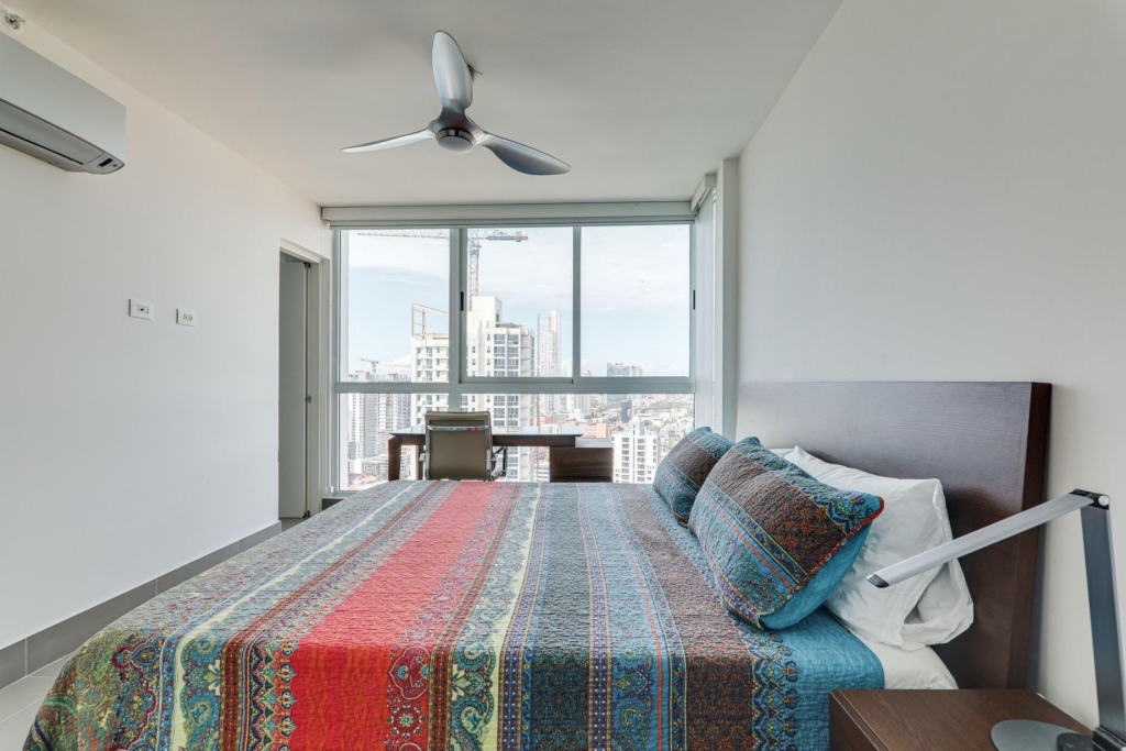 P.H. Altamira Residences es una torre moderna ubicada en Bella Vista, una de las zonas más deseadas del centro de la Ciudad de Panamá. A sólo pasos de la estación del metro y rodeado de supermercados, farmacias, cafés y restaurantes, Altamira Residences ofrece una ubicación privilegiada a un precio accesible. Este bello apartamento full amoblado está ubicado en un piso alto, ofreciendo vistas panorámicas de la ciudad hacia el Casco Viejo, el Cerro Ancón y las áreas revertidas del Canal de Panamá. Las características adicionales del apartamento incluyen: 92.56 m2 de área construida; Sala-comedor con acceso directo al balcón; Cocina abierta con sobres de cuarzo, electrodomésticos de acero inoxidable y área de lavado integrada con lavadora y secadora de tamaño completo; Recámara principal con ventanales de piso a techo, walk-in closet y baño privado; Segunda recámara con baño completo adyacente; Tres unidades de aire acondicionado Inverter Panasonic de primera línea y de bajo consumo con control WiFi para un máximo ahorro de energía; Abanicos de corriente directo (sin ruido) con control remoto en sala, comedor y recámaras; Rollers dobles (de privacidad y blackout) en instalada en cada ventana; Totalmente amoblado con muebles de diseño italiano de alta calidad de marca Tempo Design; Un estacionamiento asignado ubicado en el primer piso Las áreas sociales de Altamira Residences incluyen una gran piscina con terraza grande y área techada de BBQ/bar; parque infantil al aire libre; gran sala de juegos; salón de fiestas para eventos sociales; centro de trabajo conjunto (co-working); y gimnasio bien equipado en la azotea. Comuníquese con PGS Realty vía WhatsApp / celular +507 6434 2081 o vía correo electrónico info@pgsrealty.com para coordinar una cita para ver esta increíble propiedad «llave en mano».