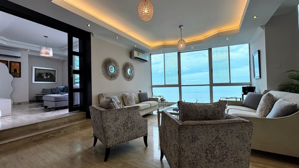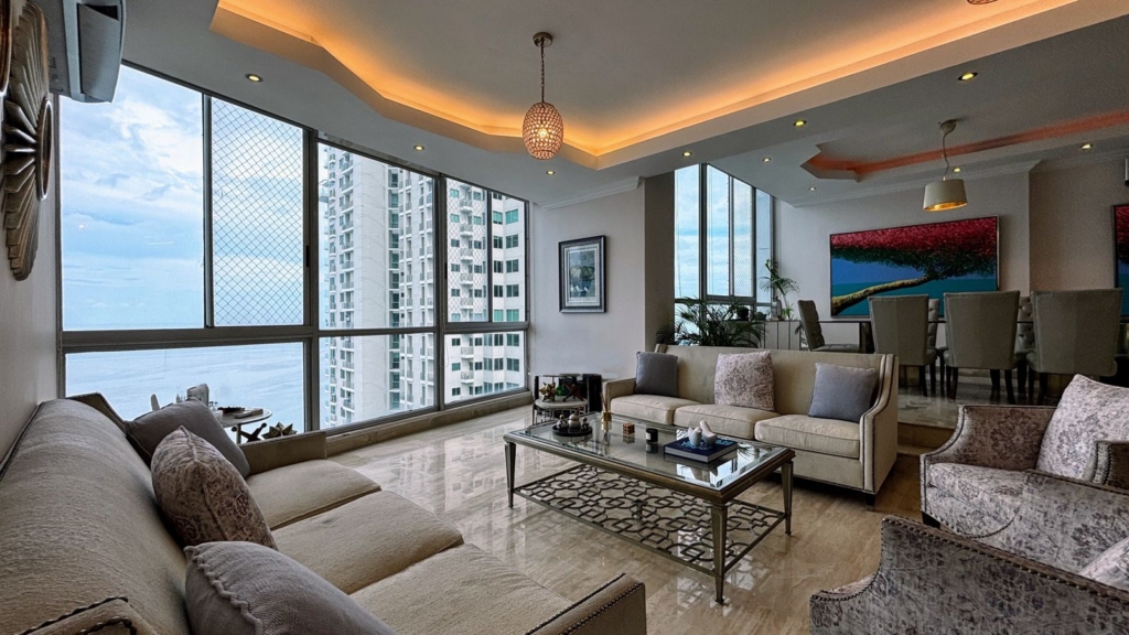 Descubre la experiencia de vivir en una de las zonas más exclusivas de la ciudad de Panamá. Este espectacular apartamento combina amplitud, confort y una vista inigualable al océano Pacífico.