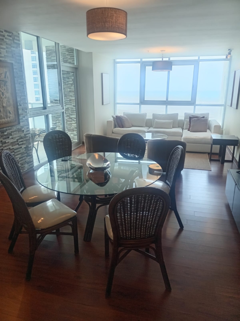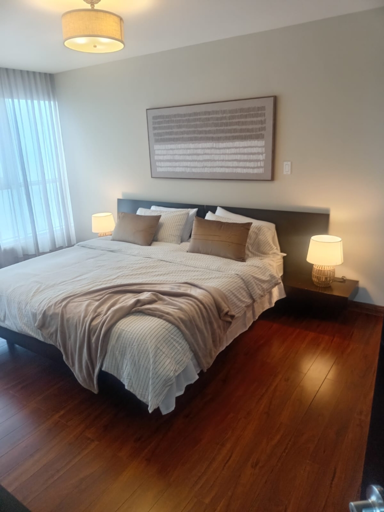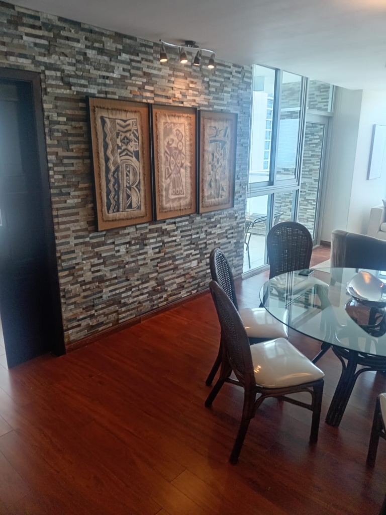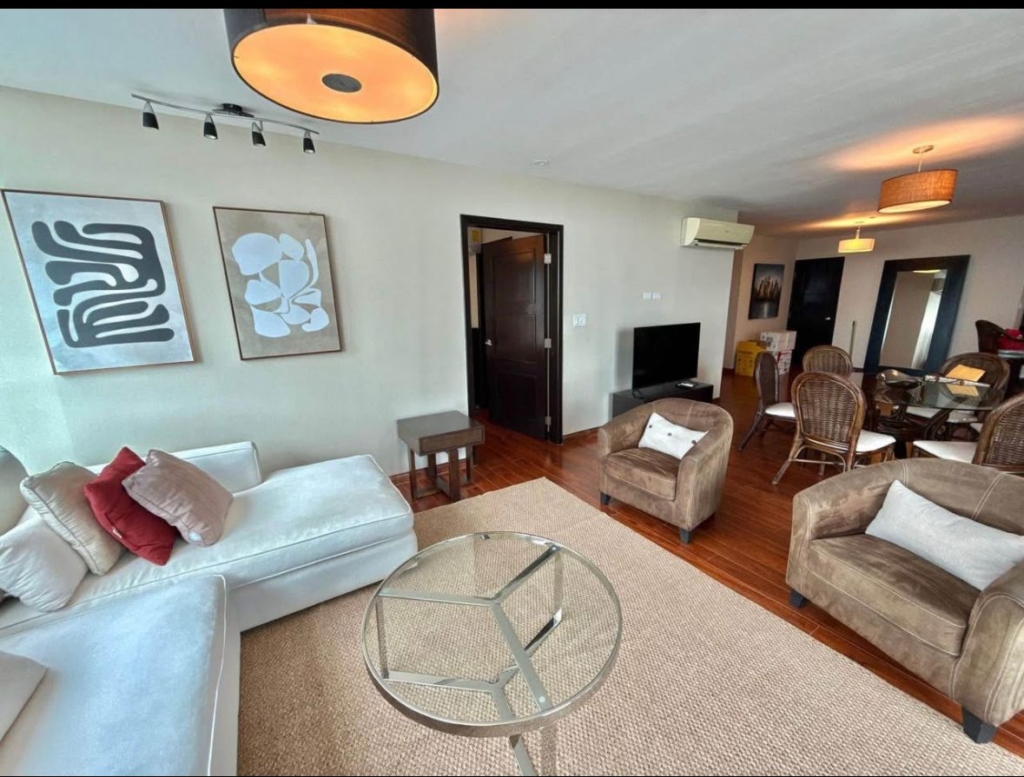El apartamento se entrega completamente amoblado, con mobiliario contemporáneo, aire acondicionado en todas las áreas y dos estacionamientos asignados.