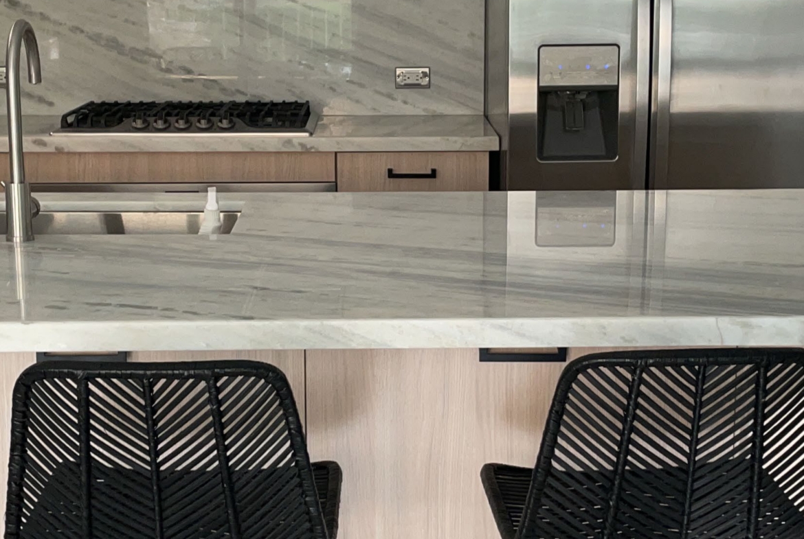 Sala – Comedor – Cocina remodelada con sobres de mármol