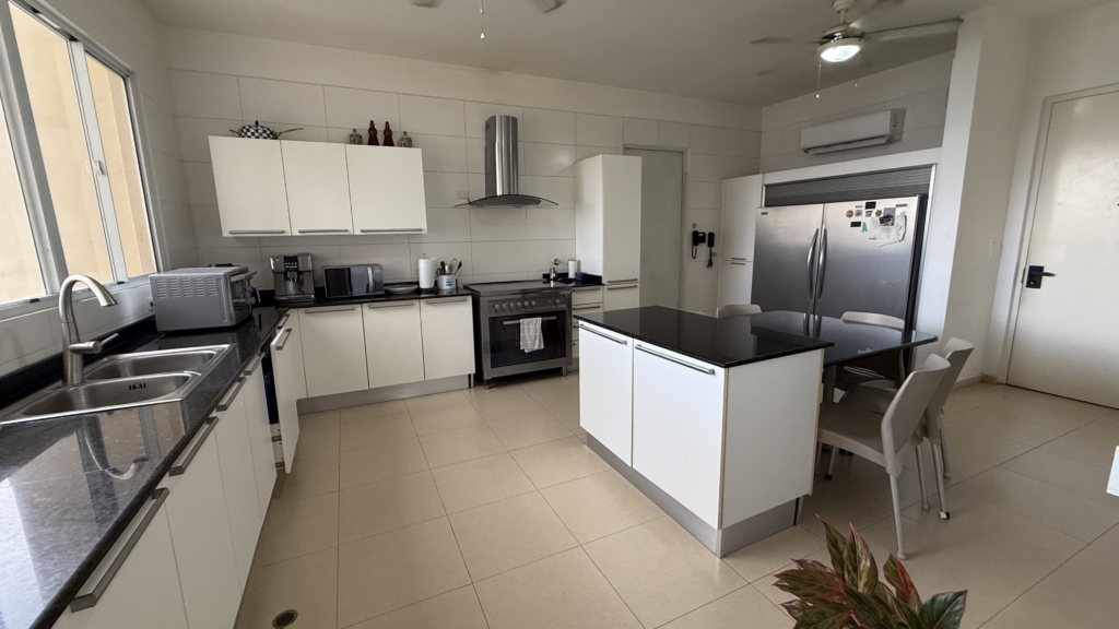El apartamento se entrega con línea blanca (incluyendo refrigeradora doble) y aires acondicionados.