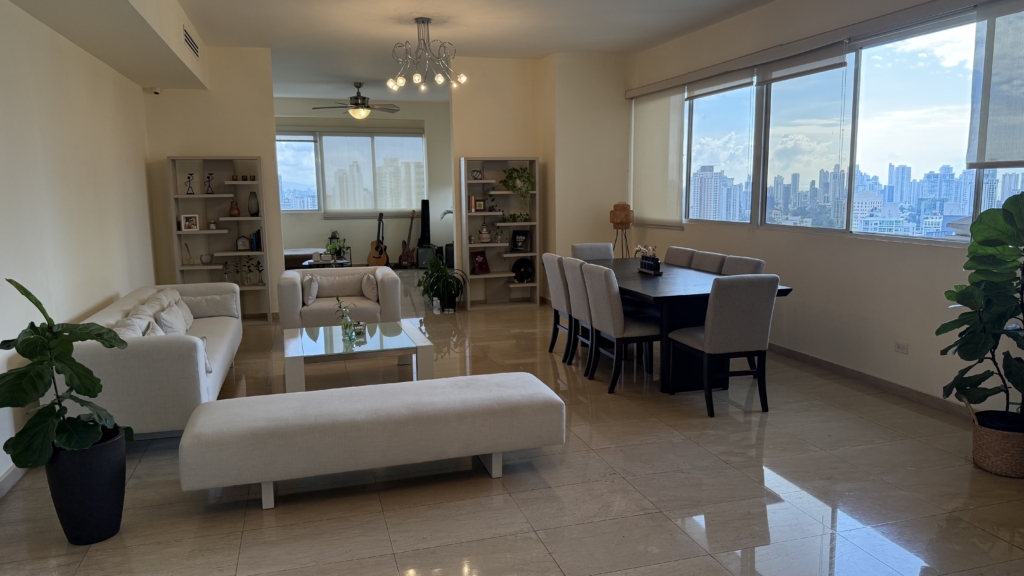 Este exclusivo apartamento ubicado en El Cangrejo, ofrece 262.13 m² de amplitud y confort en una de las zonas más céntricas de la Ciudad de Panamá.