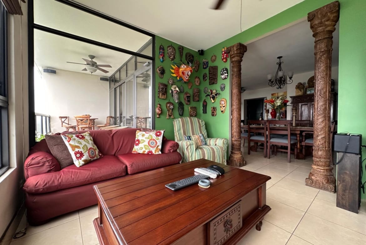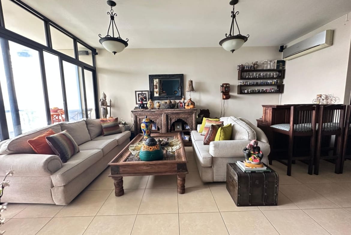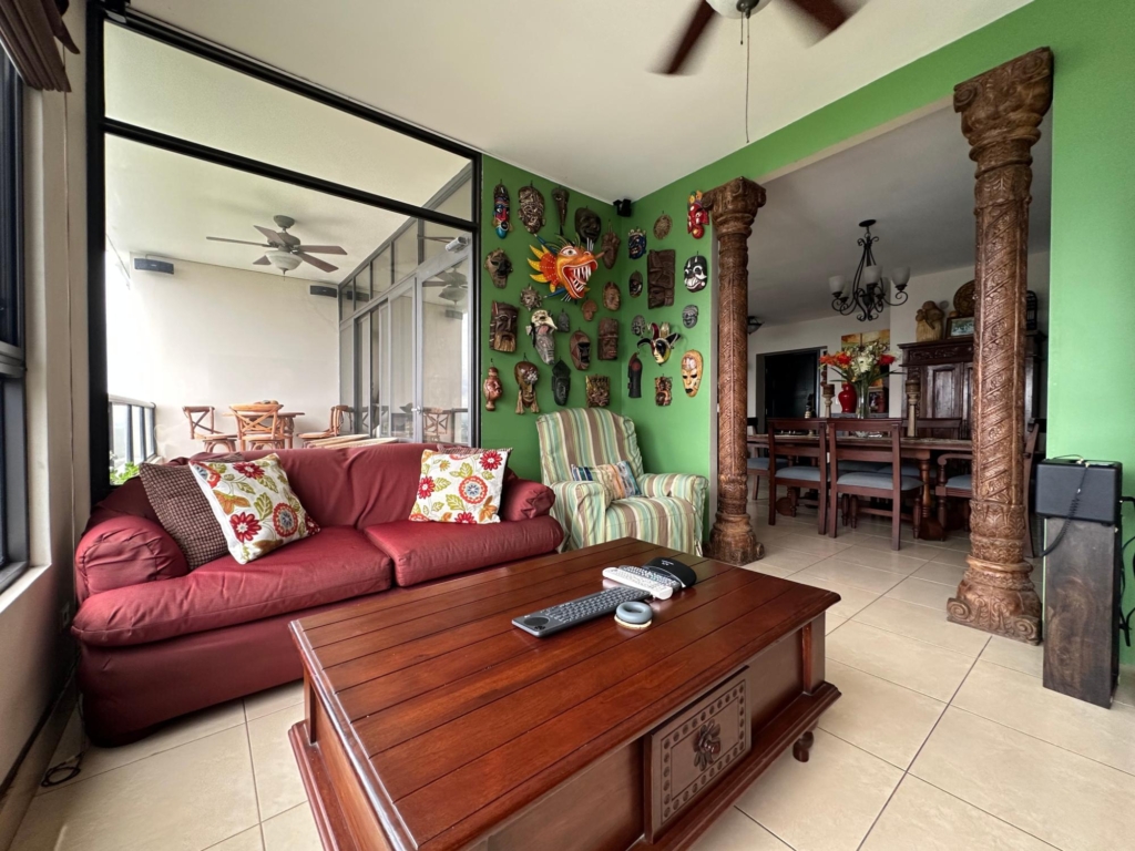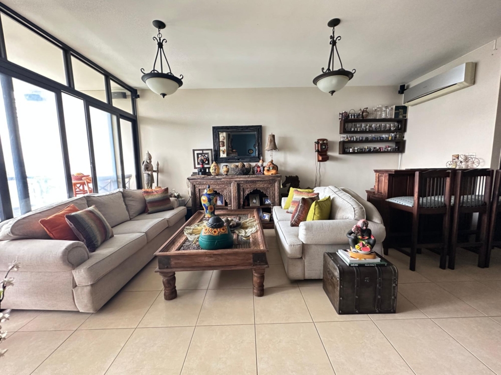 Hermoso Apartamento en Costa del Este, 202 m2, con vista al parque , amplio balcón, sala comedor , den familiar ,3 recámaras con baños, piso Alto, cocina con lavandería y cuarto de servicio, Línea blanca y aires acondicionados. 2 estacionamientos.