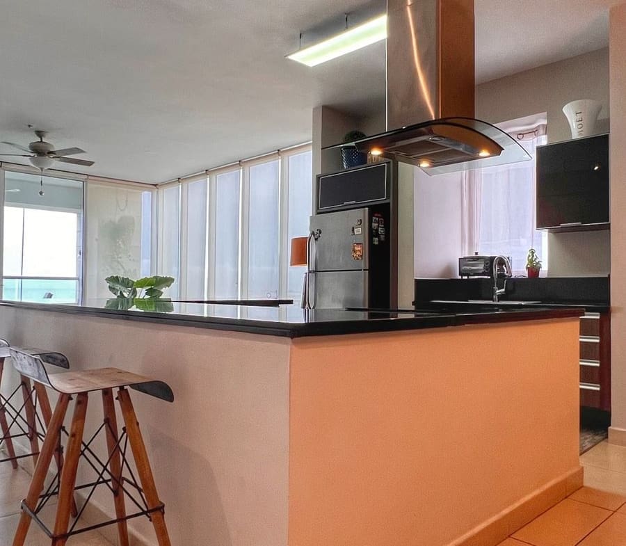 Disfruta de una impresionante vista directa al mar, la Cinta Costera y el Casco Antiguo desde su amplio balcón con mobiliario incluido. Su diseño moderno incluye una sala espaciosa con paredes revestidas, cocina abierta y acabados de excelente calidad.
