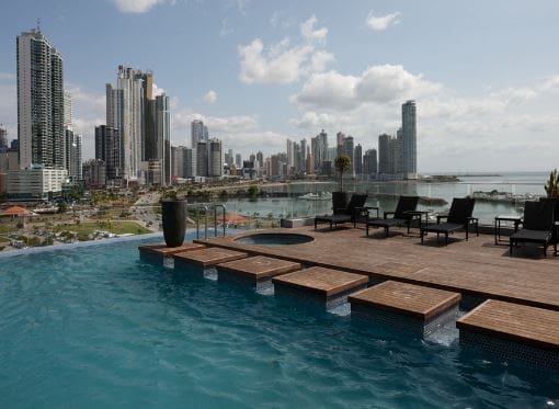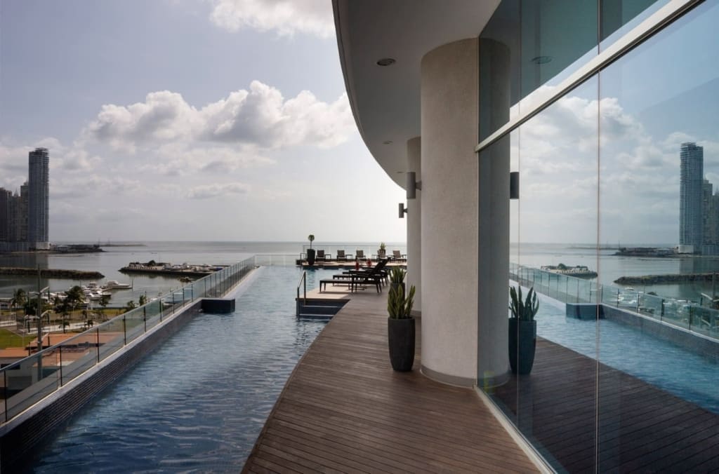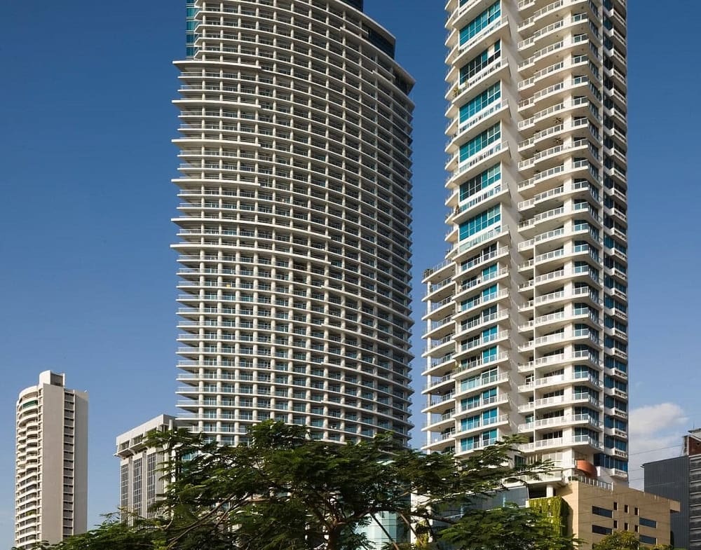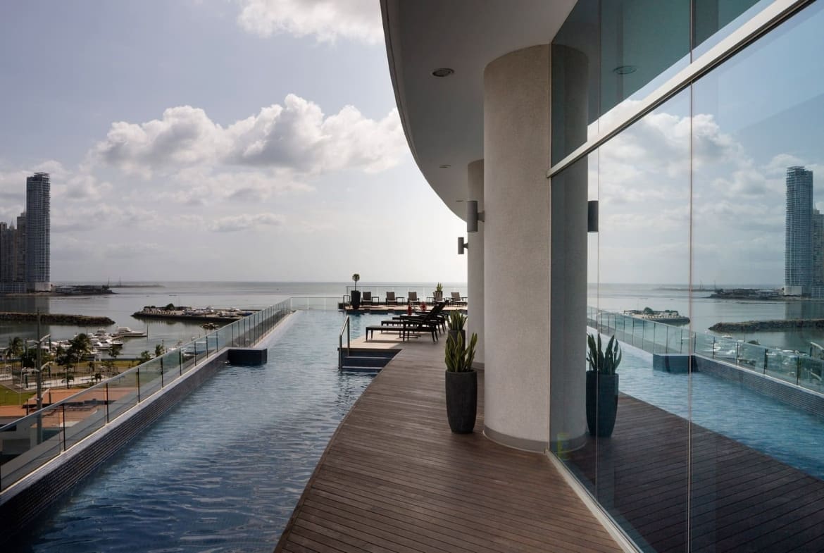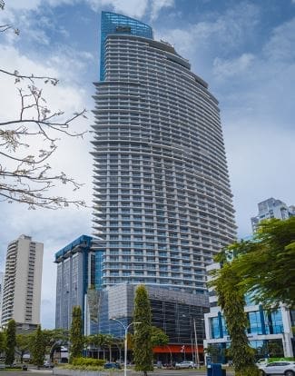Esta imponente torre tiene un diseño contemporáneo con fachada completa de cristal, ofrece espectaculares vistas panorámicas del mar y la ciudad, para disfrutar los mejores atardeceres en Panamá