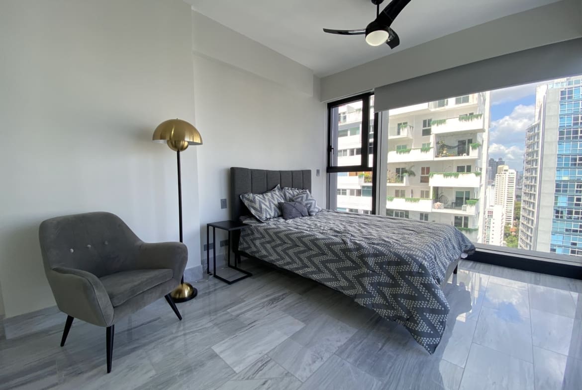 Nuovo Residences cuenta con ventanales de piso a techo que permiten apreciar vistas panorámicas hacia la bahía o la ciudad de Panamá, dejando entrar luz natural al apartamento convirtiéndolo en un espacio cálido y agradable para sus residentes.