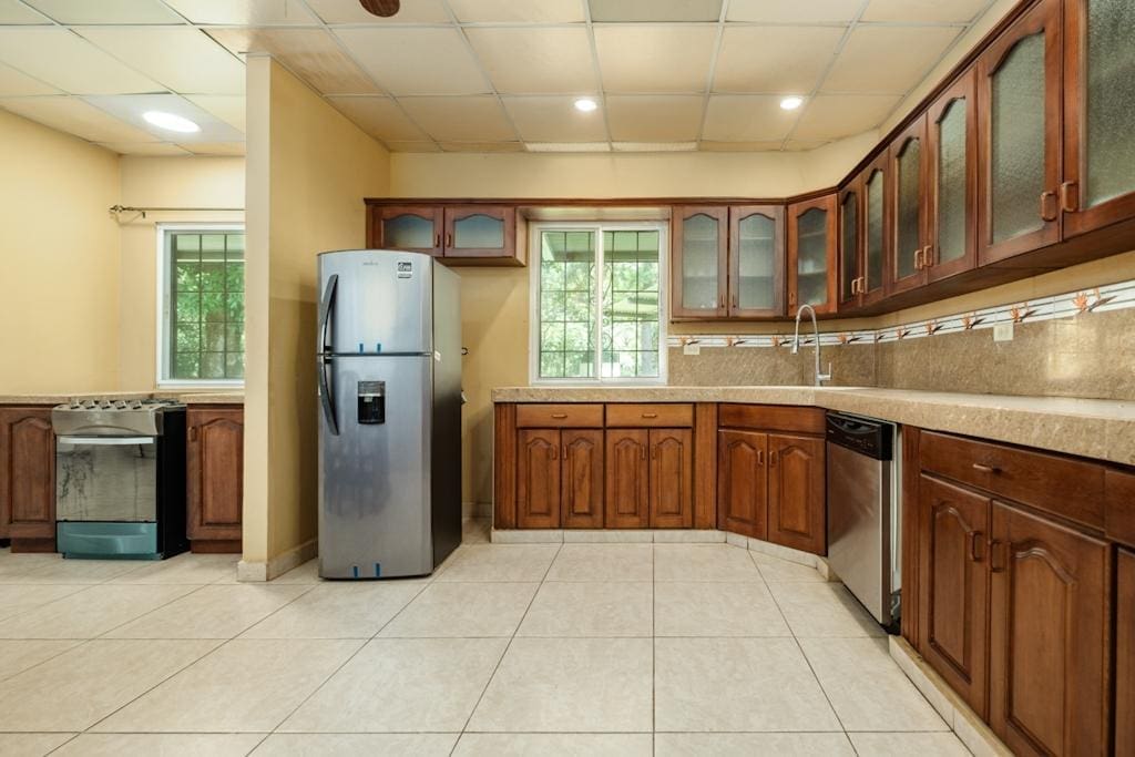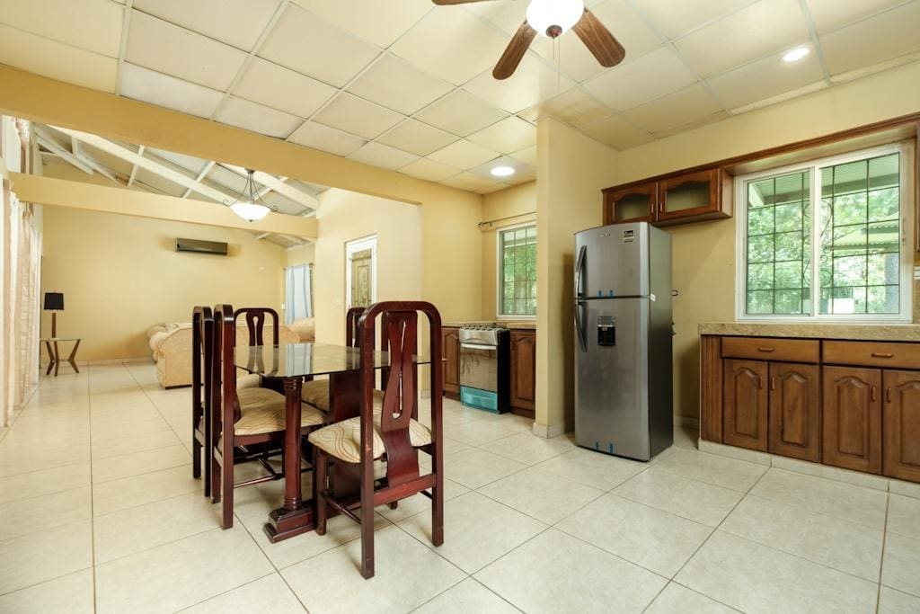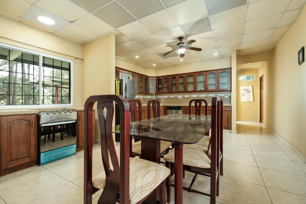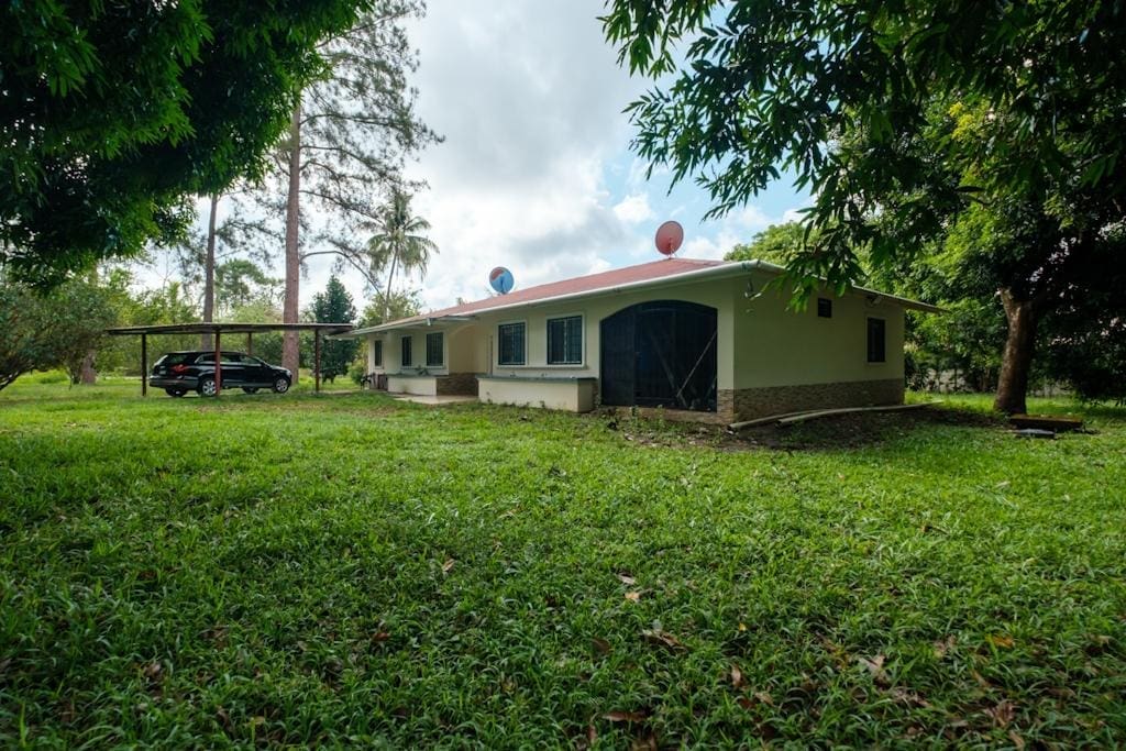 Esta pintoresca propiedad ofrece una combinación única de encanto rústico y confort moderno, asegurando un retiro tranquilo del ajetreo y el bullicio de la vida urbana. El camino a esta propiedad, un camino meticulosamente pavimentado, garantiza un fácil acceso desde el centro de la ciudad de David, a solo 15 minutos, y a sólo 45 minutos del encantador pueblo de Boquete. A su llegada, le espera una gran entrada, marcada por un portón eléctrico flanqueado por majestuosos pinos, que marcan la pauta de la belleza que se encuentra en el interior. La propiedad, rodeada por una valla segura, cuenta con una gran cantidad de árboles frutales, incluidos limoneros y mangos, que contribuyen al encanto de su exuberante entorno. Servicios prácticos como un sistema de agua de respaldo, suministro de agua caliente y un pozo con bomba eléctrica garantizan comodidad y confiabilidad, asegurando que el agua nunca sea un problema en esta idílica finca. El corazón de este retiro es la casa encantadoramente decorada, una combinación de elegancia atemporal y comodidades modernas. Aunque no tiene un diseño moderno, la casa desprende un encanto acogedor y rústico que recuerda a una cabaña rural. Ingrese y será recibido por un interior acogedor, completamente amueblado para brindar una experiencia de vida cómoda. El diseño está cuidadosamente diseñado, con la cocina a la izquierda y la sala de estar a la derecha al entrar.