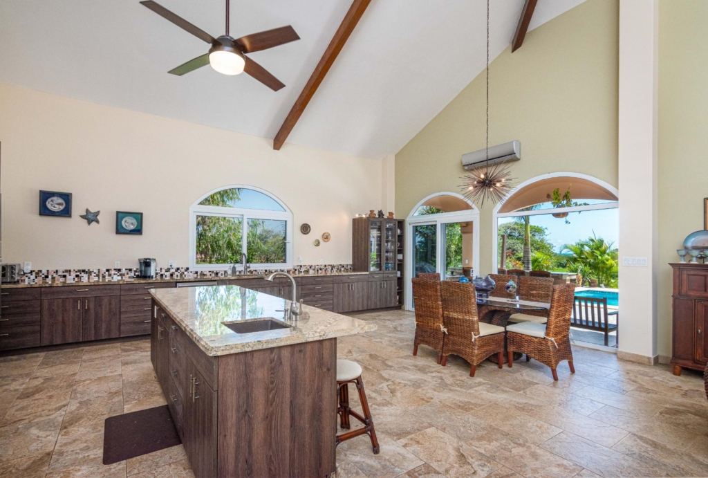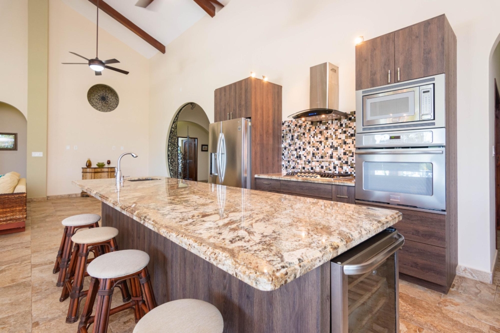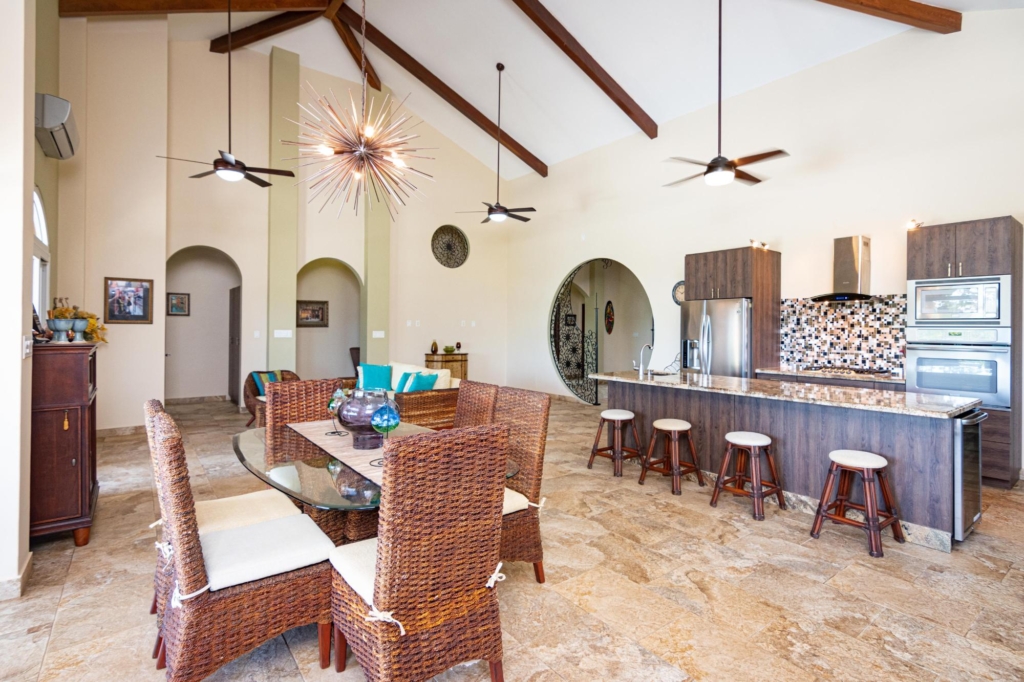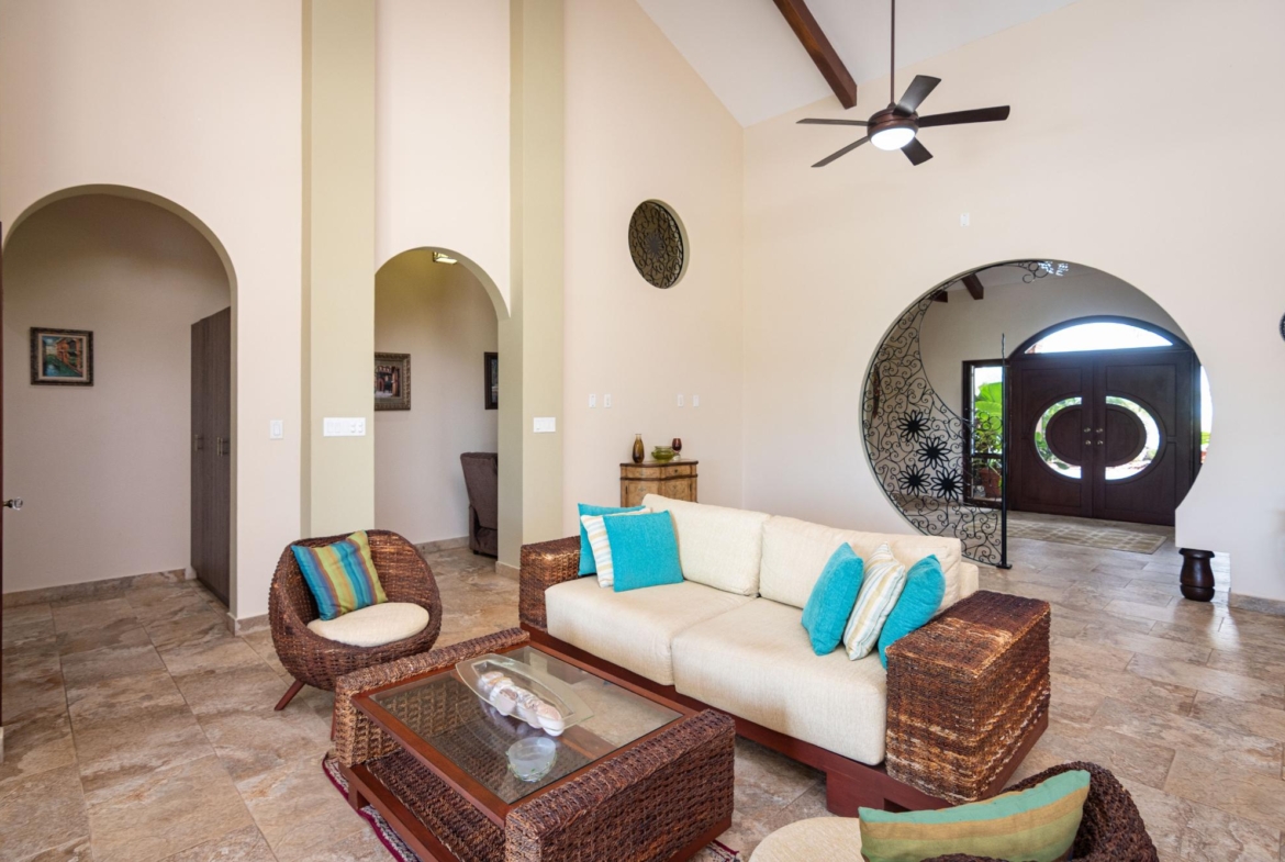 Esta hermosa casa personalizada en la comunidad cerrada frente a la playa de Costa Pedasi fue construida en 2016. La casa fue diseñada para ofrecer la combinación perfecta de vida interior y exterior, con amplias habitaciones, una increíble «gran sala» de planta abierta y un gran patio trasero. Terraza y zona de piscina con zonas de sombra y zonas de sol para adaptarse a cualquier momento del día y cualquier tipo de clima. De pie frente a la casa, su atención se centra en las puertas de madera del garaje personalizadas y la enorme puerta de entrada personalizada. Al entrar al espacioso vestíbulo, gire a la derecha para visitar los dormitorios y el estudio, o siga recto a través de un hermoso arco circular hacia la gran sala, que es el punto focal de la casa. La cocina, el comedor y la sala de estar de planta abierta de la casa son perfectos para el entretenimiento. La gran sala tiene techos altos, iluminación personalizada y mucho espacio en el mostrador de granito. Desde aquí puede dirigirse al área de entretenimiento al aire libre o girar hacia una gran despensa y el garaje cerrado para 2 autos más allá. Terraza de la piscina al atardecer Cubierta de la piscina Las puertas corredizas de vidrio conducen a la terraza privada del patio trasero y a la piscina, con espacios de terraza cubiertos y abiertos que cuentan con una fogata a gas y una fuente de agua que se ilumina por la noche. Es un hermoso lugar para que disfruten sus familiares y amigos. La casa y los terrenos están llenos de mejoras y extras. Por nombrar sólo algunos, la casa tiene su propio pozo de agua privado con tanque de almacenamiento y sistema de doble filtración. La casa tiene una caja eléctrica de 175 amperios y energía trifásica, todo respaldado por un generador Generac de 3kw con función de arranque automático. El patio con hermosos jardines tiene un paisaje maduro y un sistema de riego automatizado.