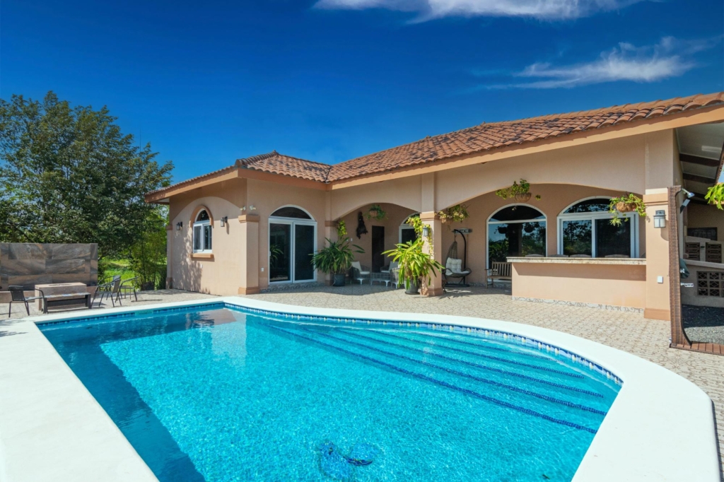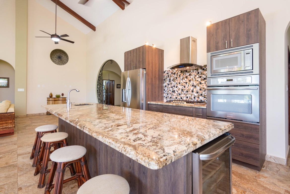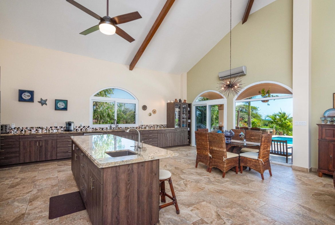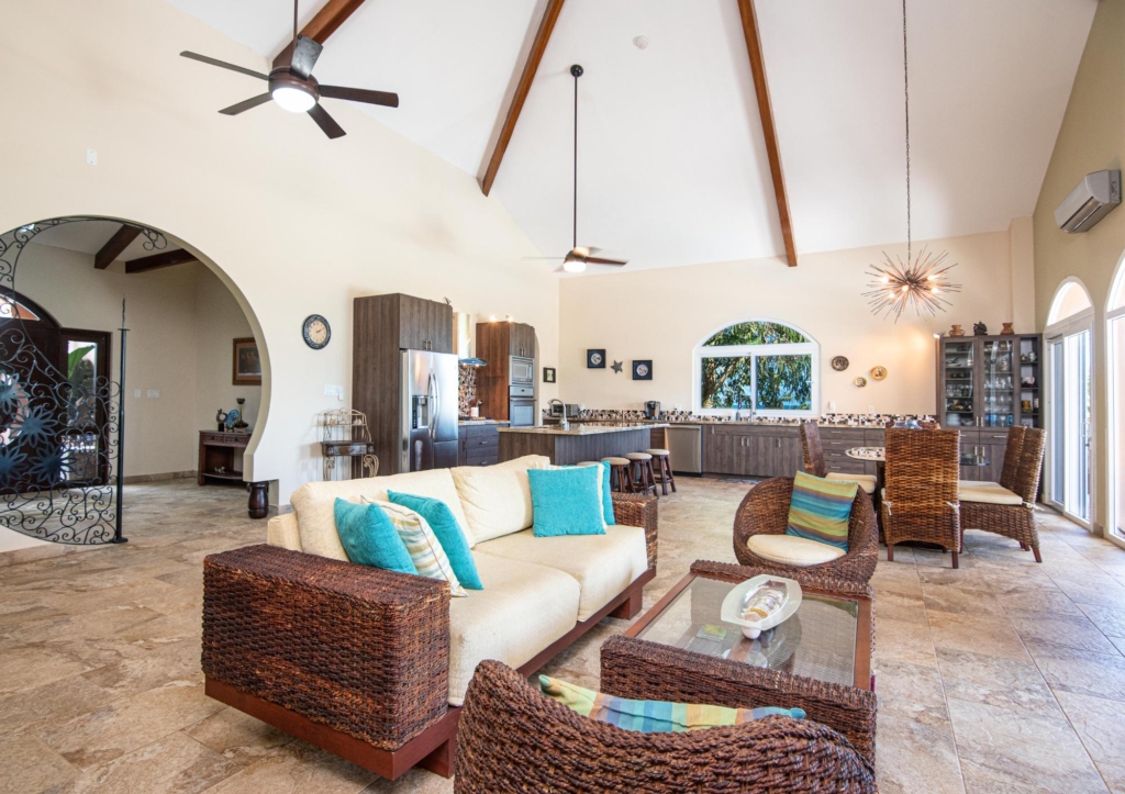 Esta hermosa casa personalizada en la comunidad cerrada frente a la playa de Costa Pedasi fue construida en 2016. La casa fue diseñada para ofrecer la combinación perfecta de vida interior y exterior, con amplias habitaciones, una increíble «gran sala» de planta abierta y un gran patio trasero. Terraza y zona de piscina con zonas de sombra y zonas de sol para adaptarse a cualquier momento del día y cualquier tipo de clima. De pie frente a la casa, su atención se centra en las puertas de madera del garaje personalizadas y la enorme puerta de entrada personalizada. Al entrar al espacioso vestíbulo, gire a la derecha para visitar los dormitorios y el estudio, o siga recto a través de un hermoso arco circular hacia la gran sala, que es el punto focal de la casa. La cocina, el comedor y la sala de estar de planta abierta de la casa son perfectos para el entretenimiento. La gran sala tiene techos altos, iluminación personalizada y mucho espacio en el mostrador de granito. Desde aquí puede dirigirse al área de entretenimiento al aire libre o girar hacia una gran despensa y el garaje cerrado para 2 autos más allá. Terraza de la piscina al atardecer Cubierta de la piscina Las puertas corredizas de vidrio conducen a la terraza privada del patio trasero y a la piscina, con espacios de terraza cubiertos y abiertos que cuentan con una fogata a gas y una fuente de agua que se ilumina por la noche. Es un hermoso lugar para que disfruten sus familiares y amigos. La casa y los terrenos están llenos de mejoras y extras. Por nombrar sólo algunos, la casa tiene su propio pozo de agua privado con tanque de almacenamiento y sistema de doble filtración. La casa tiene una caja eléctrica de 175 amperios y energía trifásica, todo respaldado por un generador Generac de 3kw con función de arranque automático. El patio con hermosos jardines tiene un paisaje maduro y un sistema de riego automatizado.