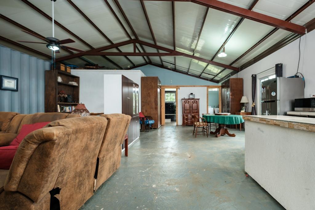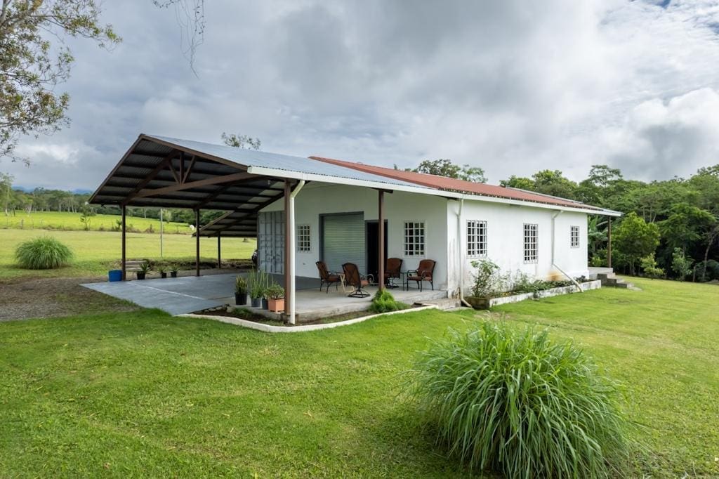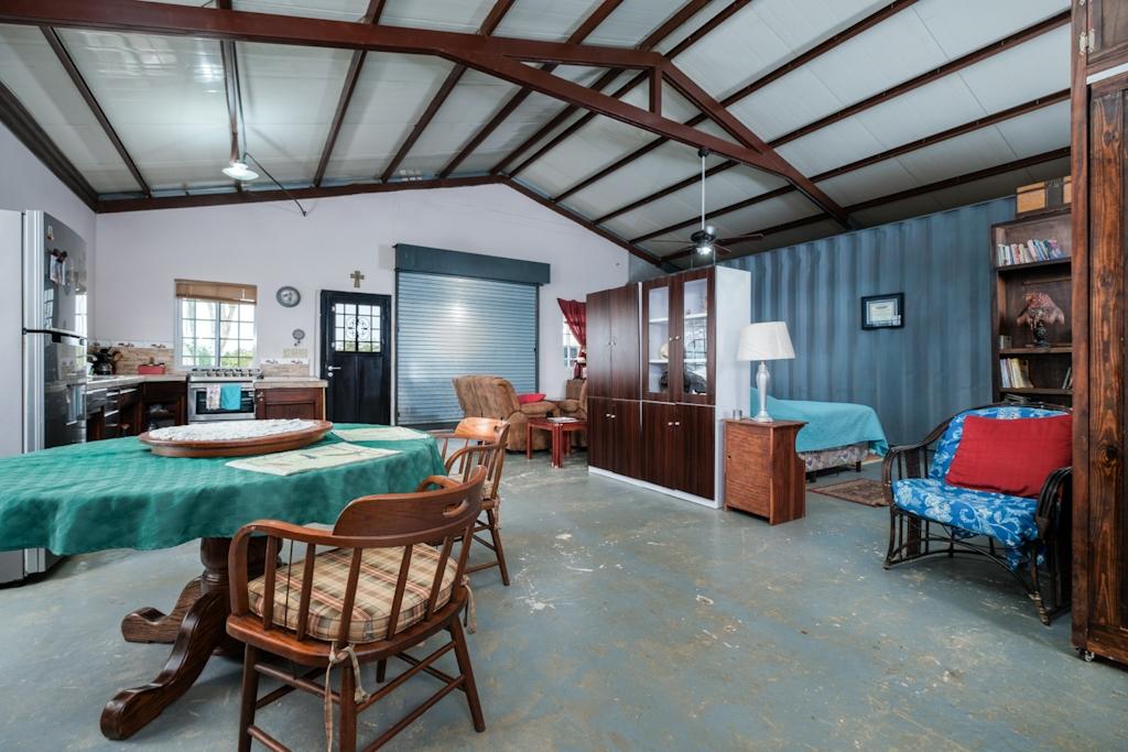 Descubra una propiedad única en el sereno Potrerillos, ubicada en una calle tranquila con 2 hectáreas de tierra fértil. Originalmente un gran garaje con un contenedor adjunto de 40 pies, esta casa ahora cuenta con un plano de planta abierto con techos altos, una amplia cocina, área de comedor, área para dormir, baño completo y lavandería en el piso principal. Disfrute de la terraza delantera cubierta y de una casita de 750 pies cuadrados, perfecta para renovación e ingresos adicionales. Rodeada de árboles y un arroyo, esta propiedad ofrece paz y tranquilidad. Ideal para amantes del motor con amplia plaza de garaje. No te pierdas esta extraordinaria vivienda que combina tranquilidad y funcionalidad.