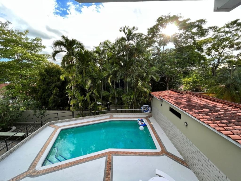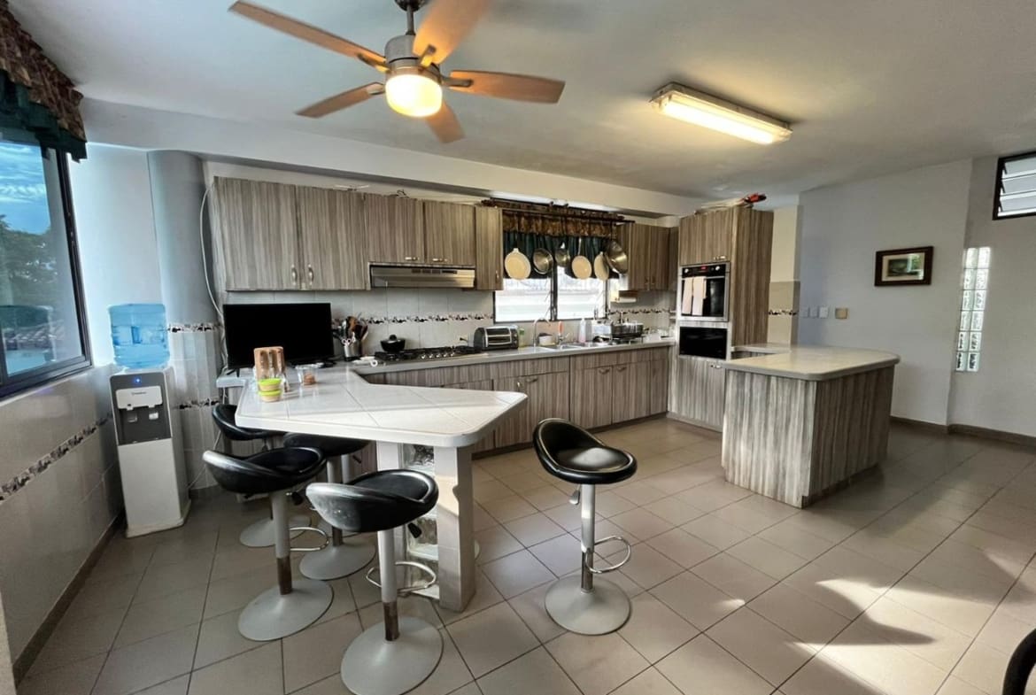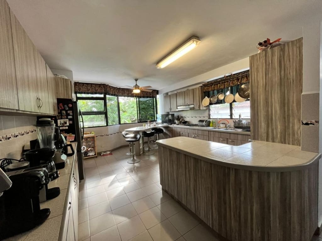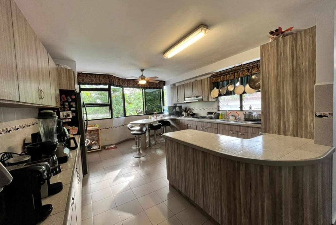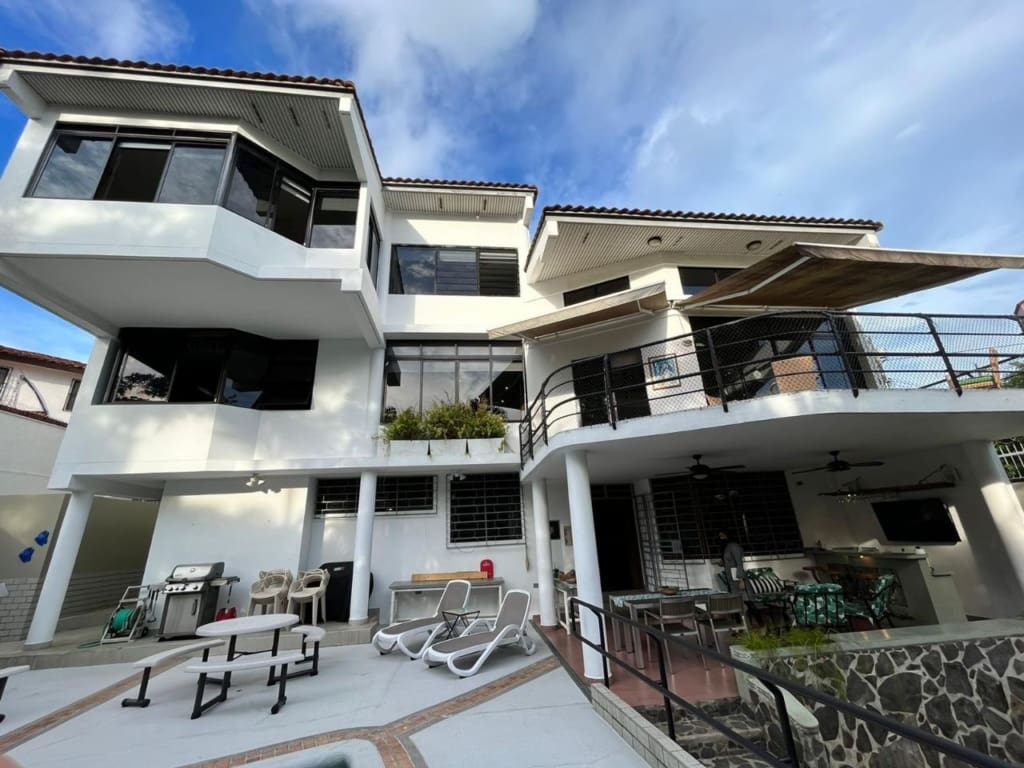Diseño moderno con tres niveles distribuidos de la siguiente forma: En el nivel medio está el vestíbulo, con medio baño para visitas, sala familiar con doble altura, ventanales de piso a techo y acceso a la primera terraza semi techada con vista al Parque Metropolitano. Comedor familiar de 10 puestos seguido de la cocina con desayunador de 4 puestos, iluminación natural y hermosa al Parque Natural Metropolitano, en la parte exterior está el jardín y 4 estacionamientos de los cuales 2 son techados, cerca perimetral y portón eléctrico. En nivel superior está el área de descanso con un pequeño depósito en el pasillo ideal para cuarto de costura o pequeño cuarto de estudio. 4 recámaras 4.5 baños 2 de ellos con jacuzzi La recámara principal con baño integrado, tina, walk in closet y hermosa vista al parque Metropolitano. En el semisótano encontramos un Den familiar y el área social con capacidad de hasta 50 personas, piscina climatizada, terraza techada con bar, terraza abierta, área de barbacoa y ducha con baño completo. Además, dos depósitos, cuarto y baño de servicio, cuarto de chuta para ropa sucia con foso desde los niveles superiores, portón eléctrico, sistema de cámaras de seguridad, tanques de reserva de agua de 1,500 galones y pasillo de acceso para personal de mantenimiento.