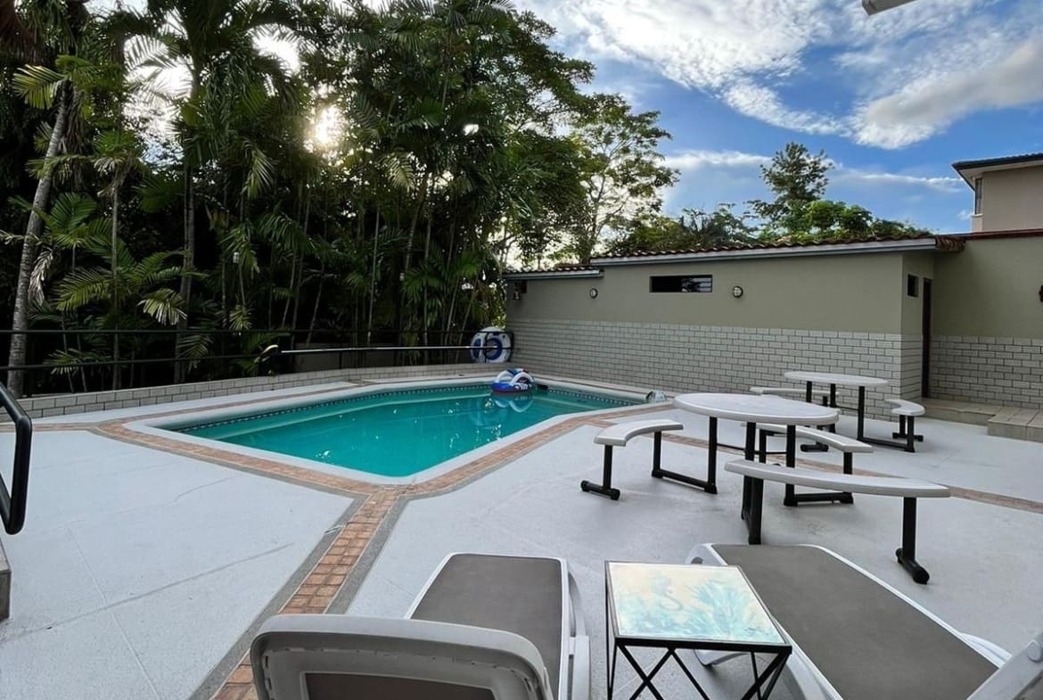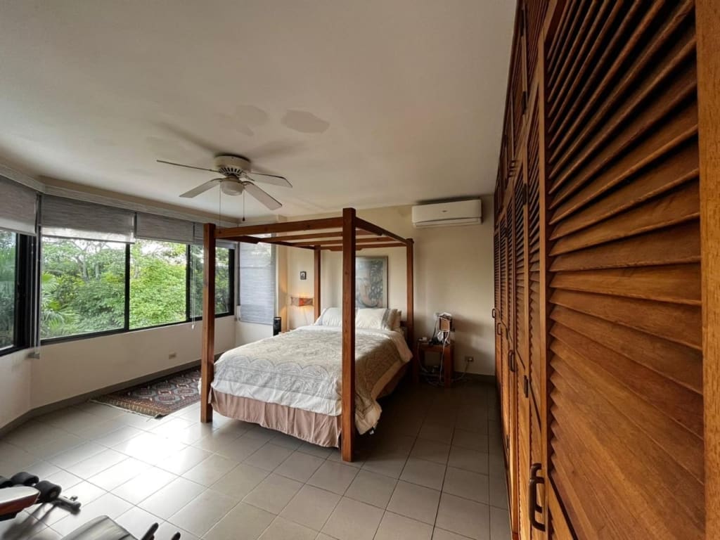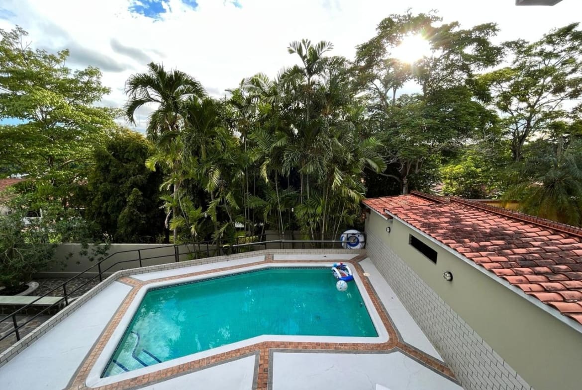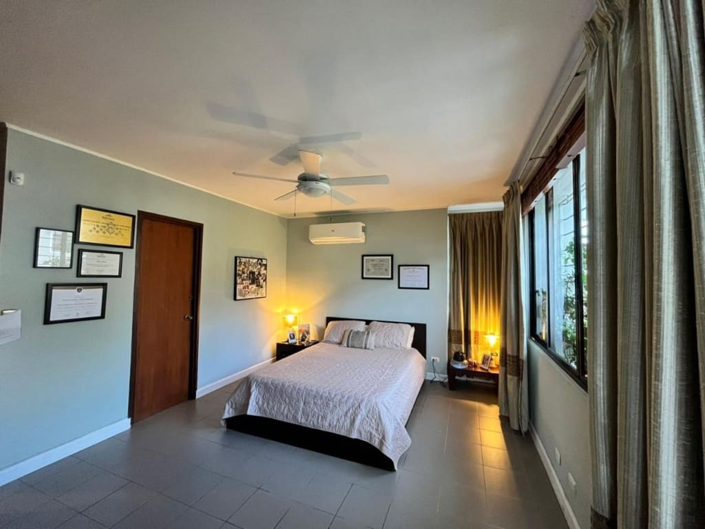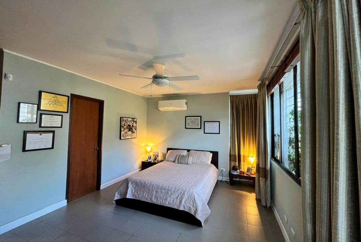 Diseño moderno con tres niveles distribuidos de la siguiente forma: En el nivel medio está el vestíbulo, con medio baño para visitas, sala familiar con doble altura, ventanales de piso a techo y acceso a la primera terraza semi techada con vista al Parque Metropolitano. Comedor familiar de 10 puestos seguido de la cocina con desayunador de 4 puestos, iluminación natural y hermosa al Parque Natural Metropolitano, en la parte exterior está el jardín y 4 estacionamientos de los cuales 2 son techados, cerca perimetral y portón eléctrico. En nivel superior está el área de descanso con un pequeño depósito en el pasillo ideal para cuarto de costura o pequeño cuarto de estudio. 4 recámaras 4.5 baños 2 de ellos con jacuzzi La recámara principal con baño integrado, tina, walk in closet y hermosa vista al parque Metropolitano. En el semisótano encontramos un Den familiar y el área social con capacidad de hasta 50 personas, piscina climatizada, terraza techada con bar, terraza abierta, área de barbacoa y ducha con baño completo. Además, dos depósitos, cuarto y baño de servicio, cuarto de chuta para ropa sucia con foso desde los niveles superiores, portón eléctrico, sistema de cámaras de seguridad, tanques de reserva de agua de 1,500 galones y pasillo de acceso para personal de mantenimiento.