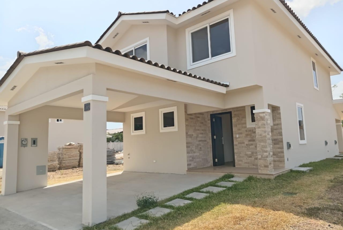 Casa unifamiliar nueva con sala familiar y comedor, cocina abierta, cuarto y baño de servicio completo, área de lavandería, 1/2 baño de visita. La parte superior tiene una recámara principal con walk in closet y baño incluido. Dos recámaras adicionales con un baño completo compartido y un amplio Den familiar. Este inmueble tiene un amplio terreno de aproximadamente 91 mt2 y dos estacionamientos techados. Esta cerca del área social del PH el cual consta de piscina, amplio y completo gimnasio, espacio cerrado para fiestas, área de recreación de niños, así como espacios para barbacoas. Es un complejo apropiado para las familiar que desean vivir rodeado de naturaleza, supermercados, senderos, colegios y restaurantes.