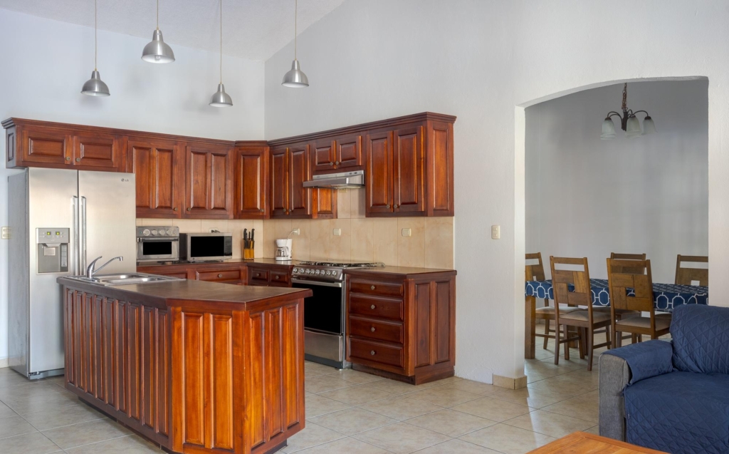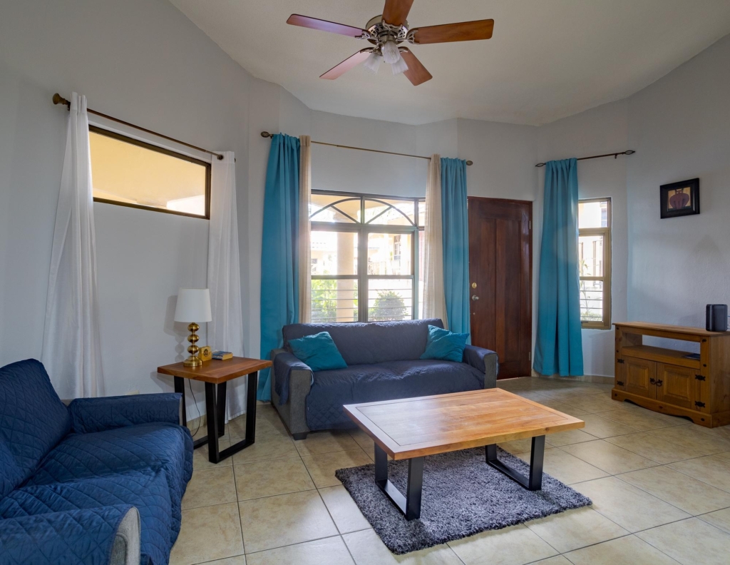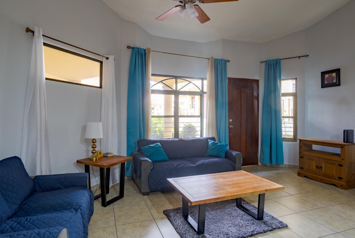 Este condominio en venta está convenientemente ubicado a 1 km del centro de David y es una opción popular para alquileres. Al ingresar a la propiedad, encontrará una sala de estar compartida con la cocina, separada por una isla que también sirve como barra desayunadora. La cocina cuenta con gabinetes de madera. El comedor tiene su propio espacio, al que se accede a través de un arco. El condominio incluye dos amplias recámaras, cada una con closets y su propio baño. El dormitorio principal cuenta con una bañera hundida. La unidad viene equipada con todos los electrodomésticos estándar, que incluyen lavadora y secadora, televisores grandes, cocina totalmente equipada y ropa de cama incluida. También hay una terraza de buen tamaño en la parte delantera para relajarse. Este condominio incluye tanque de agua de respaldo, lugares de estacionamiento y estacionamiento para visitas. La tarifa de mantenimiento actual es de $139, que cubre la basura, el agua y el mantenimiento del jardín.