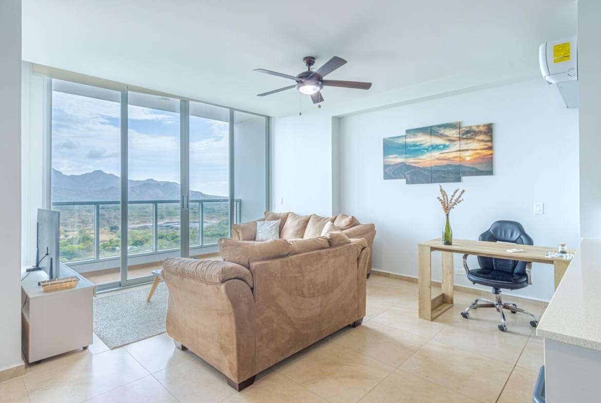 ¡Bienvenido al retiro de tus sueños frente al mar! Ingrese a una vida de lujo con este impresionante condominio de 2 dormitorios ubicado en el piso más alto del popular proyecto Royal Palm en Gorgona, Panamá. Ubicado en la codiciada torre frontal, este condominio decorado con buen gusto ofrece vistas panorámicas del resplandeciente océano y la exuberante costa, brindando una experiencia de vida costera incomparable. Royal Palm no es sólo una residencia; es una elección de estilo de vida. Ya sea que esté buscando una oportunidad de inversión, una escapada a tiempo parcial o una residencia a tiempo completo, este condominio ofrece la combinación perfecta de comodidad y conveniencia. Disfrute de las excelentes comodidades que Royal Palm tiene para ofrecer, incluido un conveniente restaurante en el lugar, dé un paseo tranquilo por la playa para nadar a solo unos pasos de su puerta, donde podrá tomar el sol, sentir la arena entre los dedos de los pies, y date un refrescante chapuzón en el océano cuando te apetezca. Con su ubicación privilegiada y comodidades incomparables, Royal Palm establece el estándar para vivir frente al mar en Gorgona, Panamá. No pierda esta rara oportunidad de poseer un pedazo de paraíso. ¡Programe su visita hoy y haga realidad sus sueños costeros!
