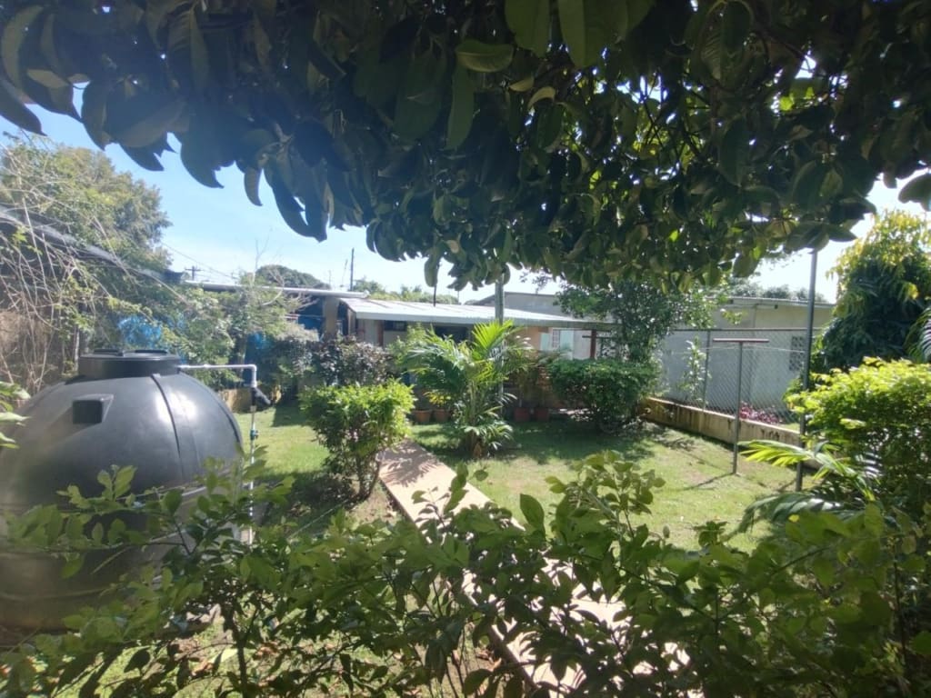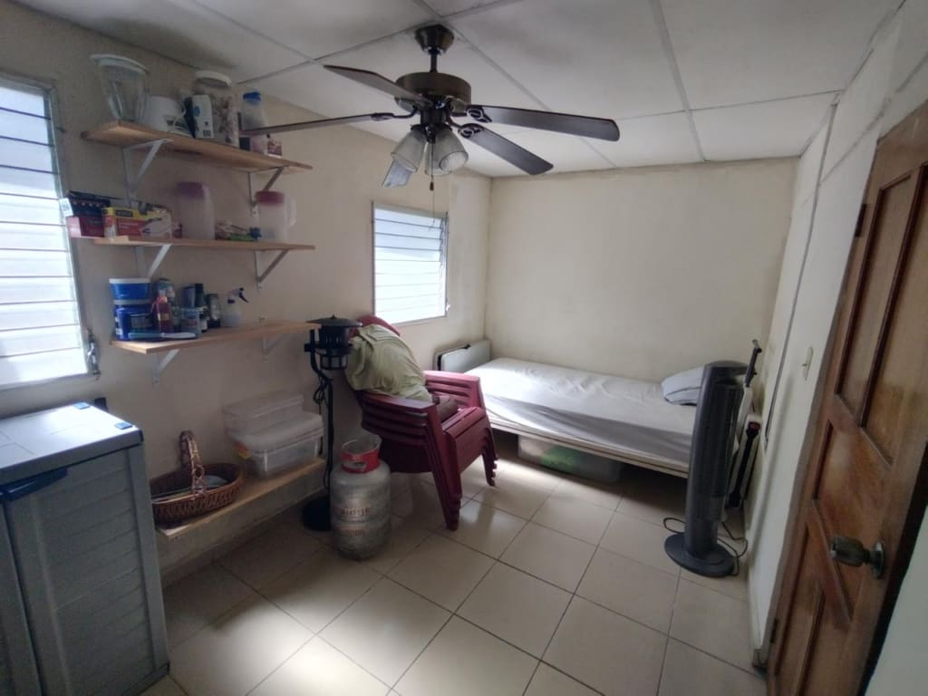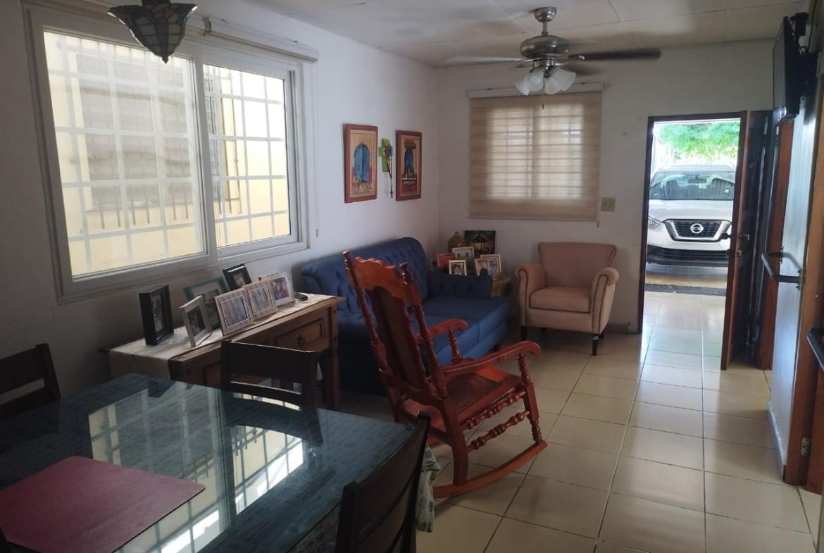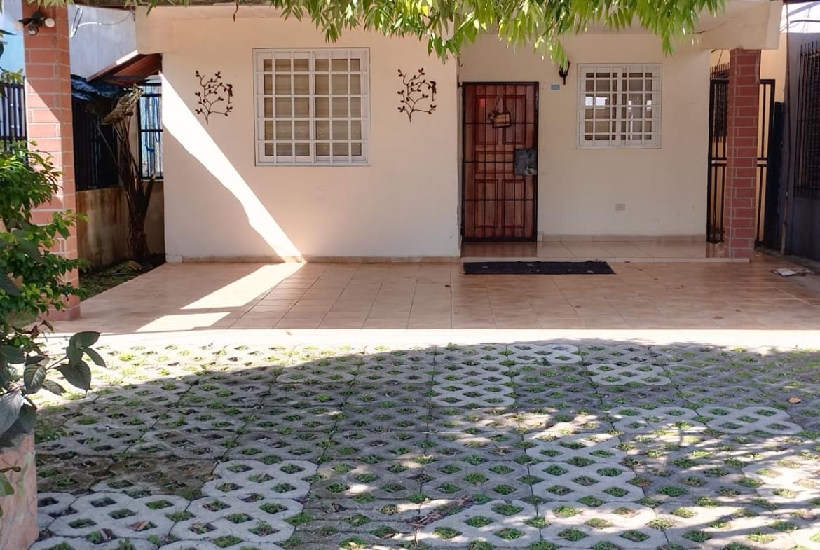 Justo en el medio de Doleguita, David, Chiriquí, esta casa de 3 habitaciones te ofrece una opción inteligente si deseas vida en la ciudad y vibraciones naturales. Está en un terreno plano con una mezcla de árboles (bosques, frutas y jardines) y está a solo 7 minutos en auto del Federal Mall cuando esté listo para ir de compras o divertirse. Cuando entres, verás un impecable piso de cemento que te llevará a dos lugares de estacionamiento cubiertos. Una vez dentro, la sala de estar y el comedor fluyen juntos, un lugar cómodo para pasar el rato. No muy lejos está la cocina, con armarios de madera que encajan muy bien en un rincón de la estancia. Esta casa desprende una sensación cálida y acogedora, perfecta para crear tu propio espacio. Tiene tres dormitorios y un baño. El diseño tiene sentido y moverse es fácil. Pero el verdadero placer está afuera. El patio es como una pequeña escapada tranquila. Hay una bonita terraza donde podrás relajarte, también compartida con el área de lavandería. Entre plantas y vegetación, hay un pequeño sendero que conduce a un mirador sin terminar junto a un gran árbol que da algo de sombra. El cenador tiene suelo de baldosas, un lugar fresco para relajarse. También hay un tanque de agua afuera para su tranquilidad. Esta casa no sólo tiene buenas características; también encaja bien con el vecindario. Está cerca de lo que necesitas, como escuelas y esas cosas.