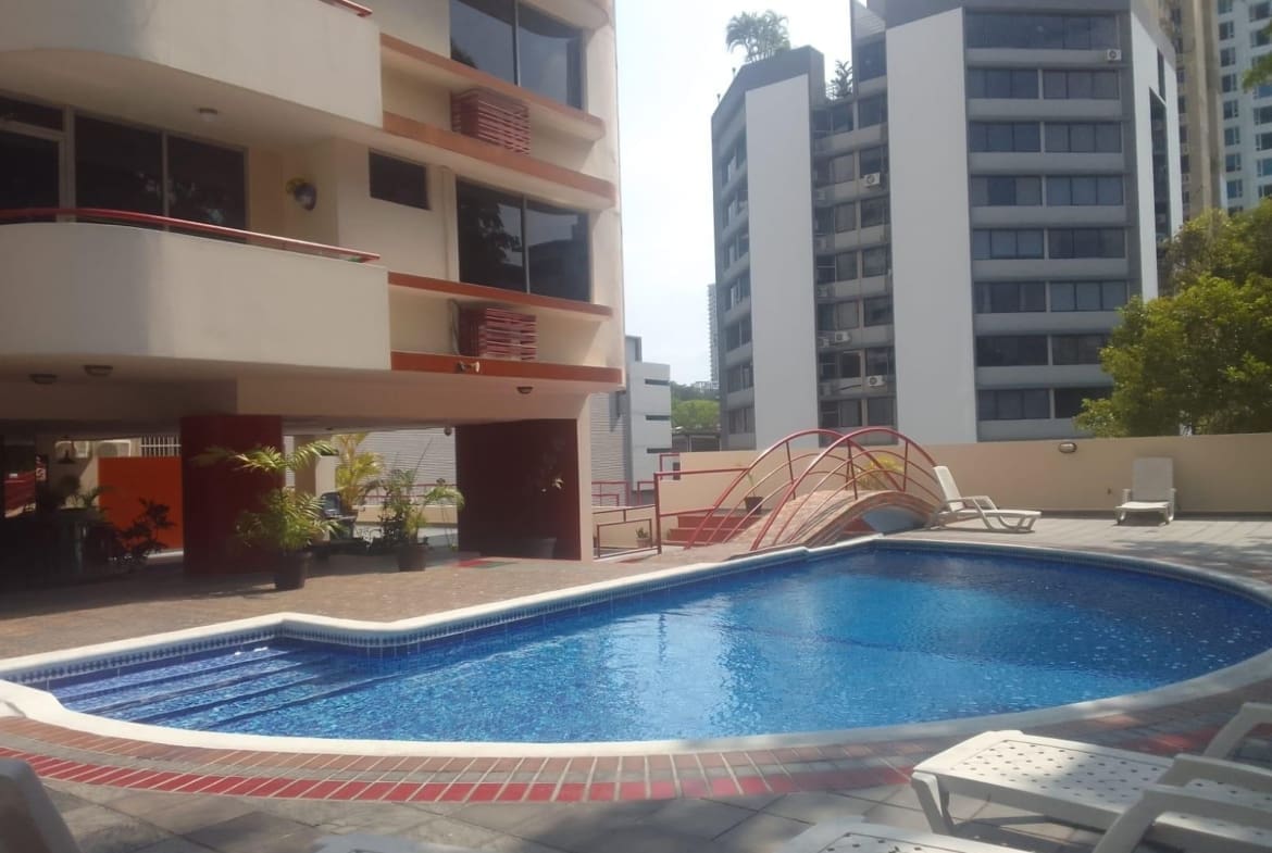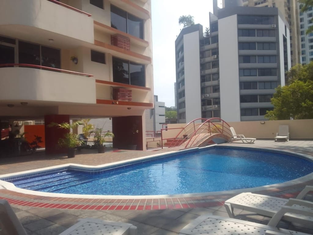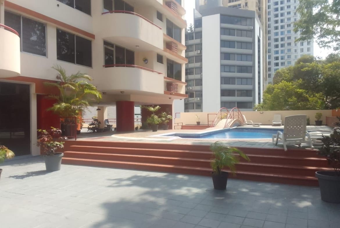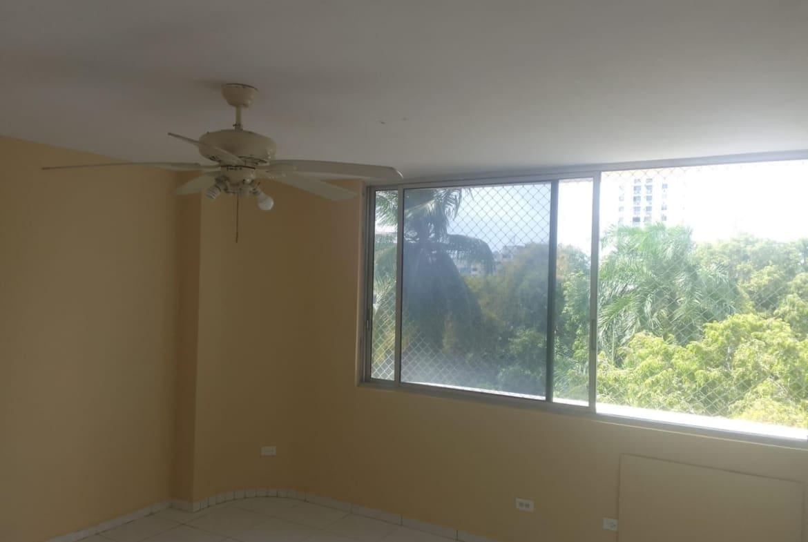 Espacioso apartamento de 133 metros cuadrados y tres habitaciones con cuarto y baño de servicio, en buenas condiciones, cuenta con balcón, sala comedor y baño de visitas, un estacionamiento y de facil acceso a mutiples comercios, supermercados restaurantes en el corazón de la ciudad de Panamá.