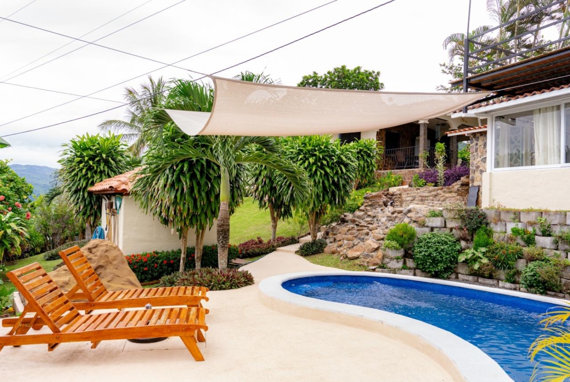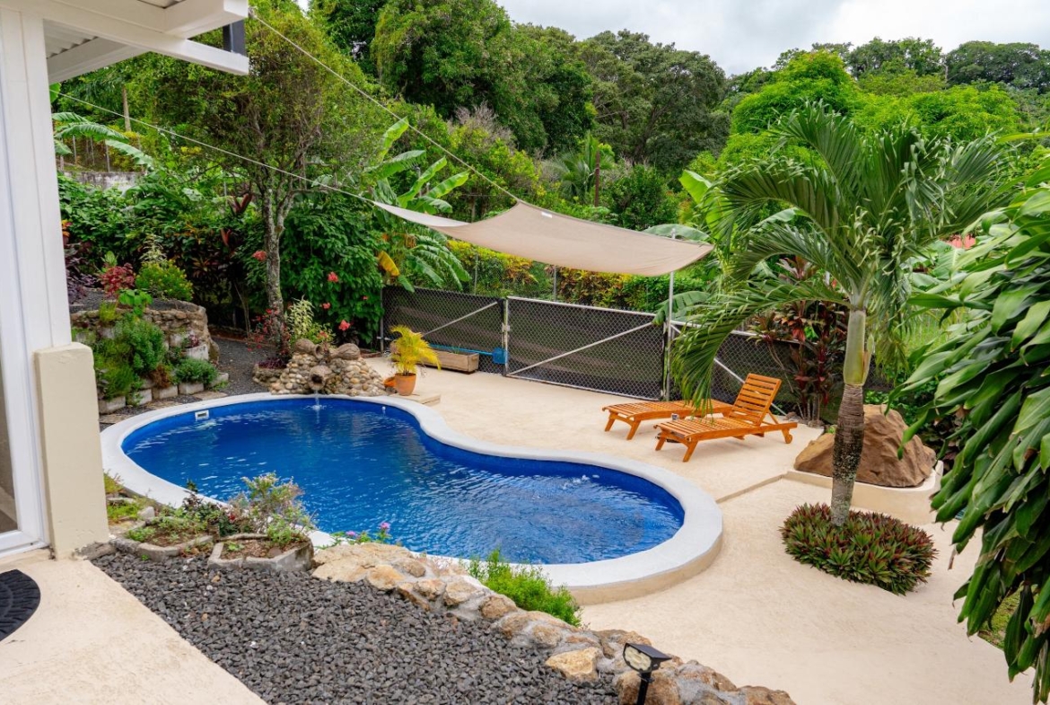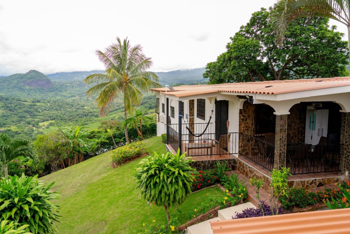 ¡Escápese a la tranquilidad y a las impresionantes vistas a la montaña en esta casa completamente renovada de 3 dormitorios y 2 baños! Ubicada en una comunidad segura y amigable cerca de Chame, Panamá, esta propiedad ofrece la combinación perfecta de relajación y aventura. Relájese con estilo: • Completamente renovado con acabados modernos • Impresionantes vistas a las montañas desde casi todas las habitaciones o Vistas noroeste de la montaña Picacho, Sora, Chica, Baja Del Rio, El Jobo, Altos De Maria) • Dormitorio principal con cama king y baño privado balcón con vista a las montañas • 2 dormitorios adicionales con 4 camas tamaño queen de teca • Muebles de teca hechos a mano en toda la casa, que agregan calidez y elegancia Oasis interior y exterior: • Piscina grande y espectacular en forma de riñón con garantía de 8 años • Múltiples patios para el entretenimiento y disfrutar de las vistas • Paisaje exuberante con cientos de plantas que atraen a colibríes y mariposas • Macetero sudafricano que rodea la piscina para darle un toque de lujo • Baldosas antideslizantes y terraza fresca para mayor seguridad y comodidad • Cercas de privacidad al aire libre para mayor aislamiento Comodidad inigualable: • Totalmente amueblado: ¡múdate y comienza a disfrutar del paraíso! • Cochera cubierta para 4 vehículos para estacionamiento seguro. • Casita adicional con cocineta y baño completo, perfecta para invitados o ingresos por alquiler.