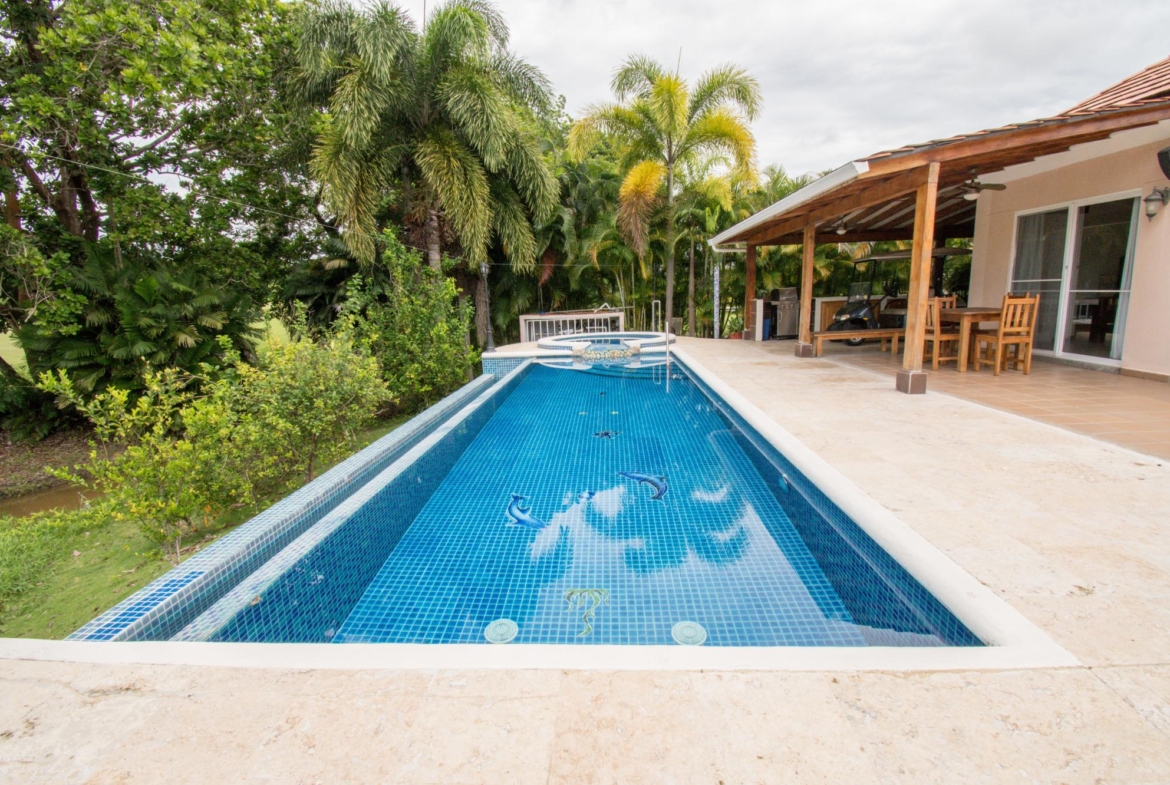 Esta villa en Costa Blanca Golf & Villas, Decameron, es una residencia de una sola planta que ofrece lujo y tranquilidad. Con una piscina y un jardín rodeado de árboles, la propiedad cuenta con 250 m² de construcción y un terreno de 992.56 m². Incluye 3 habitaciones más un cuarto de servicio, 3.5 baños, y estacionamiento cubierto para 3 vehículos. La membresía de golf está incluida y tiene acceso a un club privado en la playa, exento de impuestos. Ubicada cerca del Mantaraya Golf Club y a tres minutos de la playa Farallón, la villa se encuentra en una comunidad segura y tranquila. El club de golf ofrece un campo de 18 hoyos diseñado por Randall Thompson. La región disfruta de sol todo el año. La villa posee una cocina luminosa, integrada con la sala y el comedor, y habitaciones con grandes ventanas y closets espaciosos. La habitación principal se destaca por su amplitud y una ventana de piso a techo. Esta villa ofrece una vida excepcional en un entorno sereno, con instalaciones de golf y proximidad a la playa, ideal para una familia.