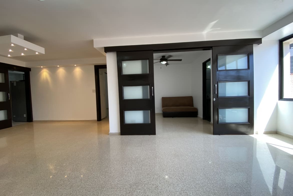 Cómodo y céntrico apartamento en Marbella a pasos de la Cinta Costera, restaurantes, parques, hospitales y de fácil acceso a vías principales como Calle 50 y Avenida Balboa. Este apartamento cuenta con 3 recámaras, 3 baños, estudio, sala-comedor, cocina cerrada y cuarto y baño de servicio.