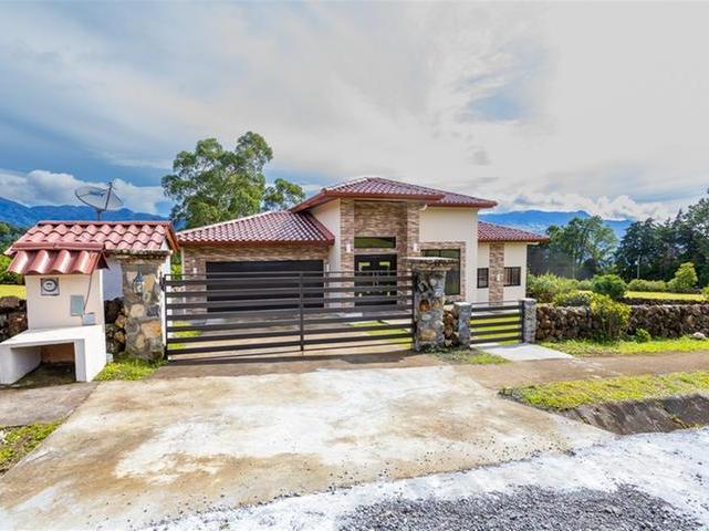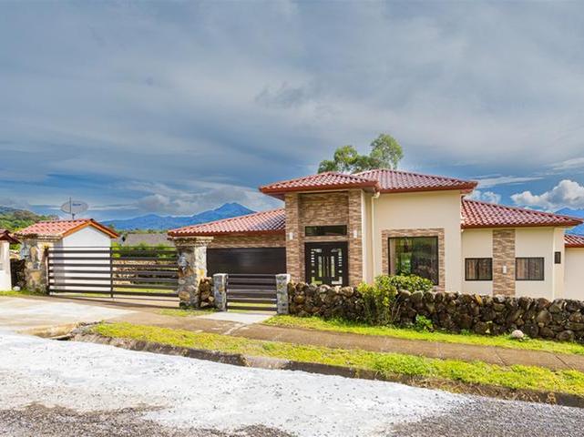 A medida que conduce por la pintoresca carretera de circunvalación que adorna el lado occidental de Boquete, se eleva por encima de la ciudad pasando por casas de lujo, campos de café y granjas románticas establecidas desde hace mucho tiempo. A unos 15 minutos del centro, notará que el entorno se abre a propiedades del tamaño de una finca y fincas de café más grandes. En este entorno de clima fresco, hay un dulce desarrollo llamado Cerro Verde. Está en la parte superior del circuito con acceso a la ciudad a través de Volcancito en una dirección y El Salto en la otra. La entrada al famoso Parque Nacional Volcán Barú y al Parque Internacional La Amistad está cerca. Aquí se encuentra esta excelente casa en venta. La casa tiene un atractivo tan encantador. También es de construcción de alta calidad. Y las vistas son increíbles. La casa está construida para maximizar el disfrute de la escena con enormes ventanales y un hermoso patio trasero. El atractivo exterior es muy agradable con una valla de pared de roca, una elegante puerta de entrada con pilares de piedra, un hermoso trabajo de azulejos en el exterior y unas impresionantes puertas de entrada doble. Por dentro, la casa es igual de bonita. Tiene encimeras de granito, hermosos azulejos, puertas de ducha de vidrio y otras excelentes características. ¡También es una casa nueva! Esta casa tiene solo un año.