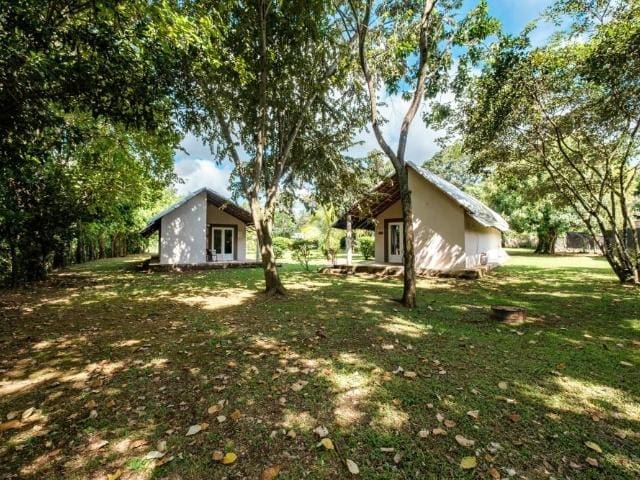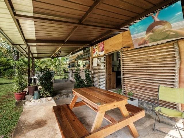 Propiedad notable, una joya escondida de oportunidad turística con casas de huéspedes de alta gama cerca de David y Boquete ubicadas en Santa Rosa Dolega. Esta hermosa propiedad tiene un enorme potencial, está en camino de desarrollo, a menos de 30 minutos del centro de Boquete y espera su visión y creatividad. A solo unos pasos del área de estacionamiento, descubrirás la zona de restaurantes, un vibrante paraíso tropical. Equipado con una cocina funcional, mesas de madera y un ambiente claramente tropical, es un lugar donde cenar se convierte en una experiencia. En el techo, las lámparas tropicales y las plantas colgantes estilo lavanda crean una atmósfera única. El restaurante también dispone de una acogedora cafetería con cómodos sofás de palés y mesas a juego. Este acogedor espacio fomenta la relajación y la socialización. La pieza central de la propiedad es sin duda la piscina, que tiene las dimensiones de un pequeño lago. La propiedad cuenta con ocho acogedoras cabañas y cuatro encantadoras casitas, todas estratégicamente ubicadas alrededor del área de la piscina. Cada cabaña ofrece una experiencia única con su techo de palma y su dormitorio meticulosamente decorado, completo con baño privado. Hay un armario, una nevera pequeña, además de una silla y una mesa.