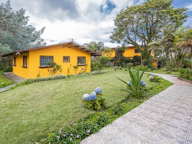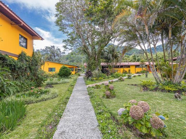 Hay un área casi mágica justo encima del centro de Boquete llamada El Santuario. Es una meseta justo encima del centro de la ciudad en el corazón de Boquete. Se ingresa a El Santuario por un corto camino pavimentado bordeado de plantaciones de café, arbustos en flor y buganvillas. Al pasar por el único castillo de Boquete, llegará a la meseta a unos 5 minutos del vivaz centro de Boquete con hermosas vistas alrededor y un excelente microclima. Este es El Santuario, hogar de uno de los barrios más cotizados de toda la provincia. Enclavada en esta área y aislada de gran parte de la propiedad que la rodea, se encuentra esta fabulosa propiedad con un potencial comercial impresionante. Con tantas camas, la propiedad está lista para un hotel o una operación de alquiler. También podría convertirse en una residencia, un retiro o un centro de convenciones que pueda albergar a muchos invitados. l gran edificio principal tiene un área de recepción y una gran planta baja abierta con una amplia terraza. Arriba hay dos apartamentos muy agradables de 1 habitación. Baja por un camino en una dirección hasta una hilera de dulces cabañas. Cada uno tiene una pequeña sala de estar y un dormitorio. Las maderas nobles utilizadas en el diseño de las paredes y techos son un gran complemento para el entorno. Cada cabaña tiene su propio balcón pintoresco. En la otra dirección encontrará cabinas adicionales de otro diseño.