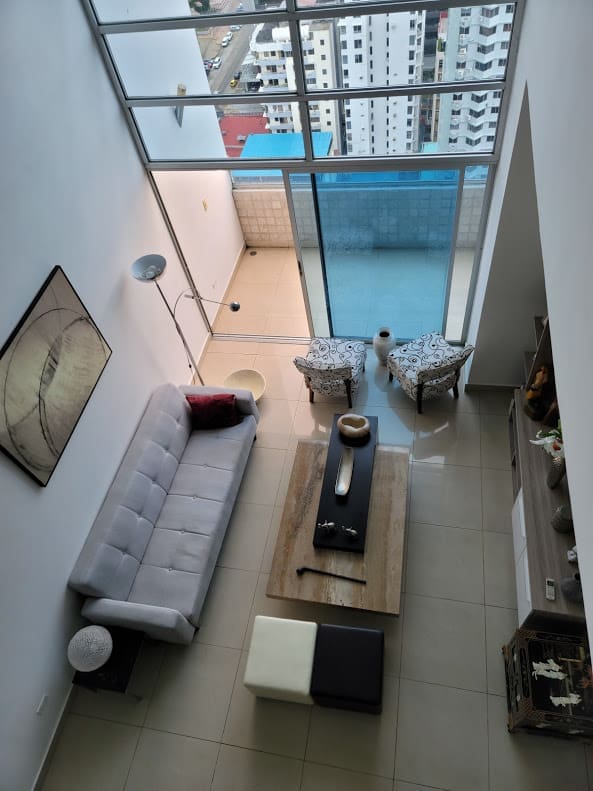 Con 2 estacionamientos, este compacto apartamento, fácil de mantener, pero con espacios cómodos y llenos de luz, incluye en sus 177 m2 de área: sala-comedor, oficina/estudio, medio baño para visitas, c/b de servicio y balcón en su primera planta; mientras en la segunda planta encontraremos 2 recámaras, la principal con un gran baño que hasta jacuzzi ofrece y walk-in closet, y un segundo baño que sirve a la recámara secundaria. Ubicado en un área muy céntrica y de fácil acceso, el Famagosta Loft comparte en sus áreas comunes una piscina, salón para fiestas y área infantil para juegos.