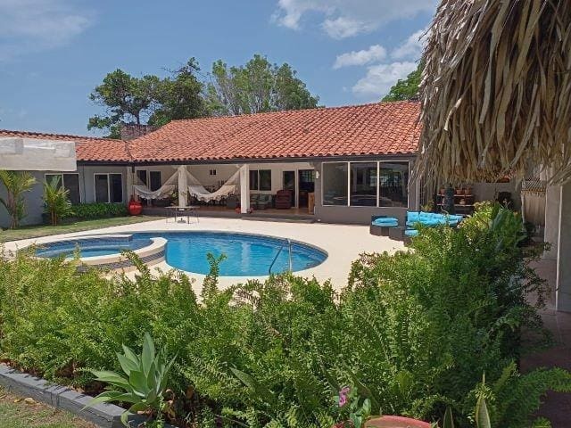 ¡Bienvenido a tu hogar de ensueño en Coronado Golf! Ubicada en una zona tranquila y segura cerca de la playa, esta impresionante propiedad ofrece vistas al campo de golf y todo lo que necesitas para vivir con lujo: Hermosos jardines para relajarte en serenidad. ♂️ Piscina con jacuzzi para un confort máximo. Espacioso rancho con área de barbacoa y bar, perfecto para el entretenimiento. La casa principal cuenta con cinco habitaciones, cada una con su propio baño. ️ Amplia sala y comedor para recibir a tus invitados con facilidad. ️ Terraza cubierta con vista a la piscina, ideal para reuniones al aire libre. Además, ¡la propiedad incluye un amplio terreno con potencial para otra casa! Con 3752 metros cuadrados (aproximadamente 40,366.528 pies cuadrados) de espacio, hay lugar para infinitas posibilidades. Ubicado en Playa Coronado, tendrás supermercados, restaurantes, farmacias y tiendas a solo minutos de distancia. No pierdas esta oportunidad de tener tu pedacito de paraíso, ¡contáctanos para programar una visita hoy mismo! ️♂️ ️