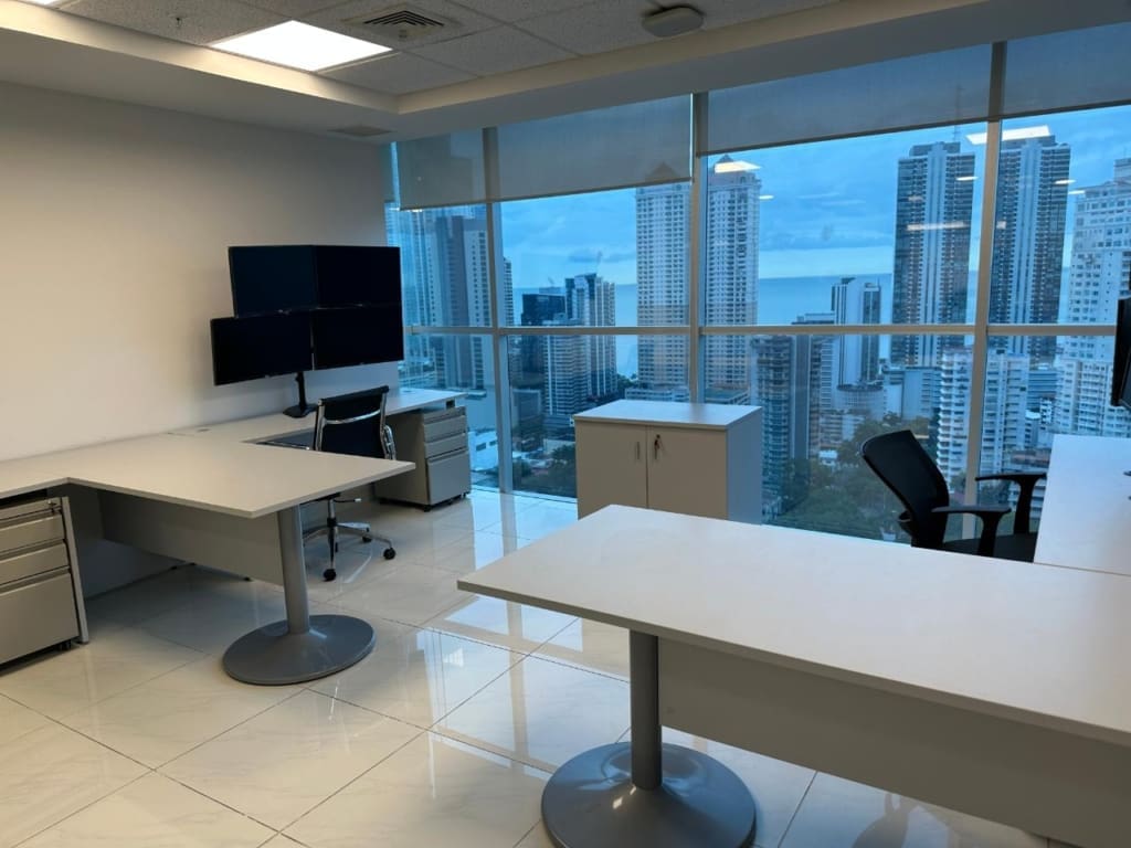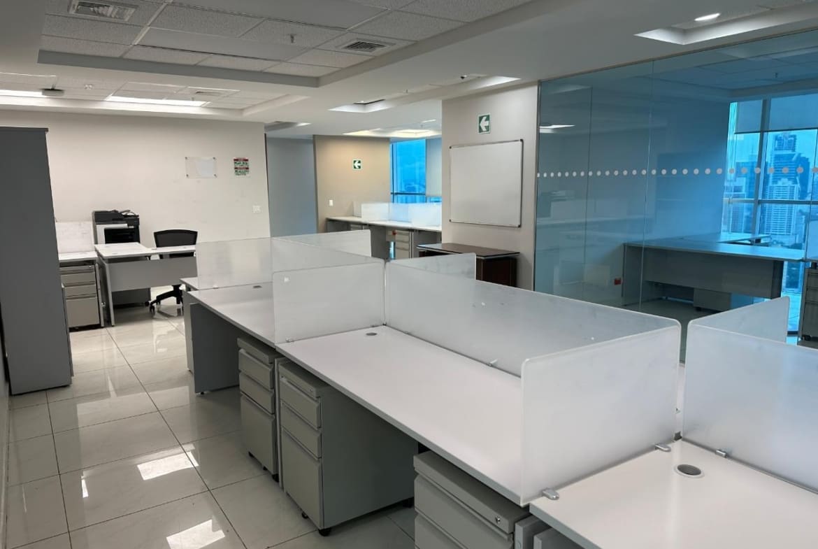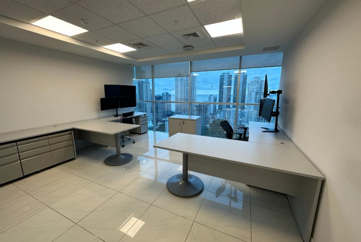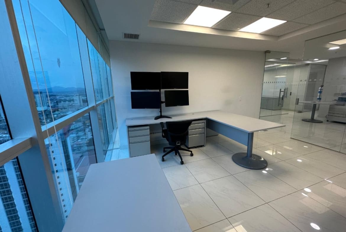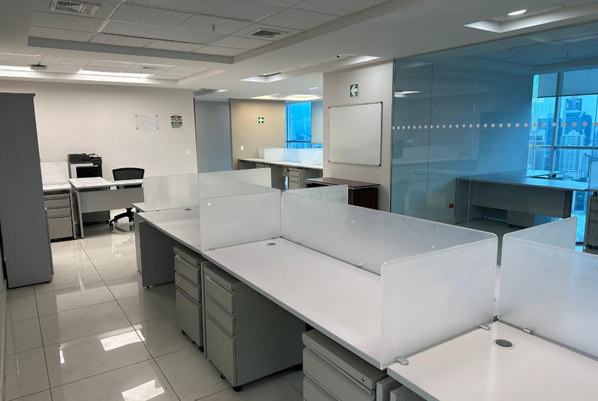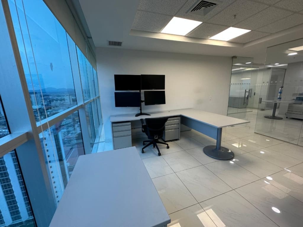 Galardonado con el Premio Magno MOA 2018 Gran lobby principal con finos acabados de mármol Amplio acceso y puerta cochera 4 elevadores de Alta Velocidad Planta eléctrica de 100% Sistema de alarmas contra incendio Detectores de calor y humo Sistema de Rociadores Controles de Acceso CCTV y Cámaras de Seguridad Seguridad 24 horas Luces de áreas comunes y escaleras de alta eficiencia Gran capacidad de reserva de agua Estacionamientos para clientes y visitantes Oficina ubicada en piso 21 Área: 373 m2 Completamente terminada Pisos de mármol Divisiones de vidrio templado Recepción Gran sala de conferencia 2 baños Cortinas Oficina presidencial Cafetería Despachos varios Sistema de A/A completo Cableado general Sistemas contra incendio completos Sistema de seguridad instalado Propuesta Oficinas totalmente terminadas, listas para ocupar. También contamos con pisos de oficinas en gris para diseño propio. Disponibilidad para colocar nombre en Azotea del edificio y monolito en entrada principal. Ubicación: Calle 51 y Federico Boyd Ciudad de Panamá.