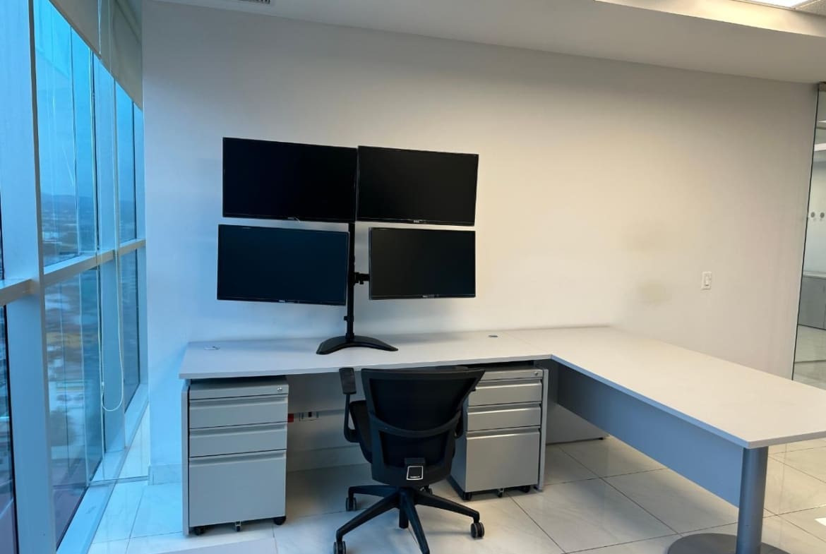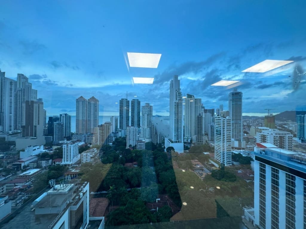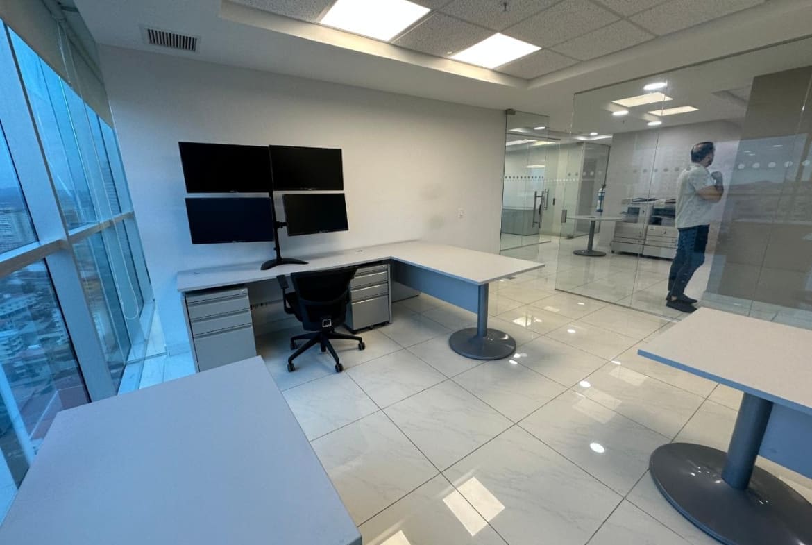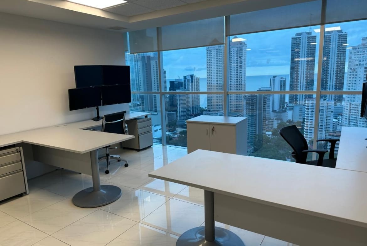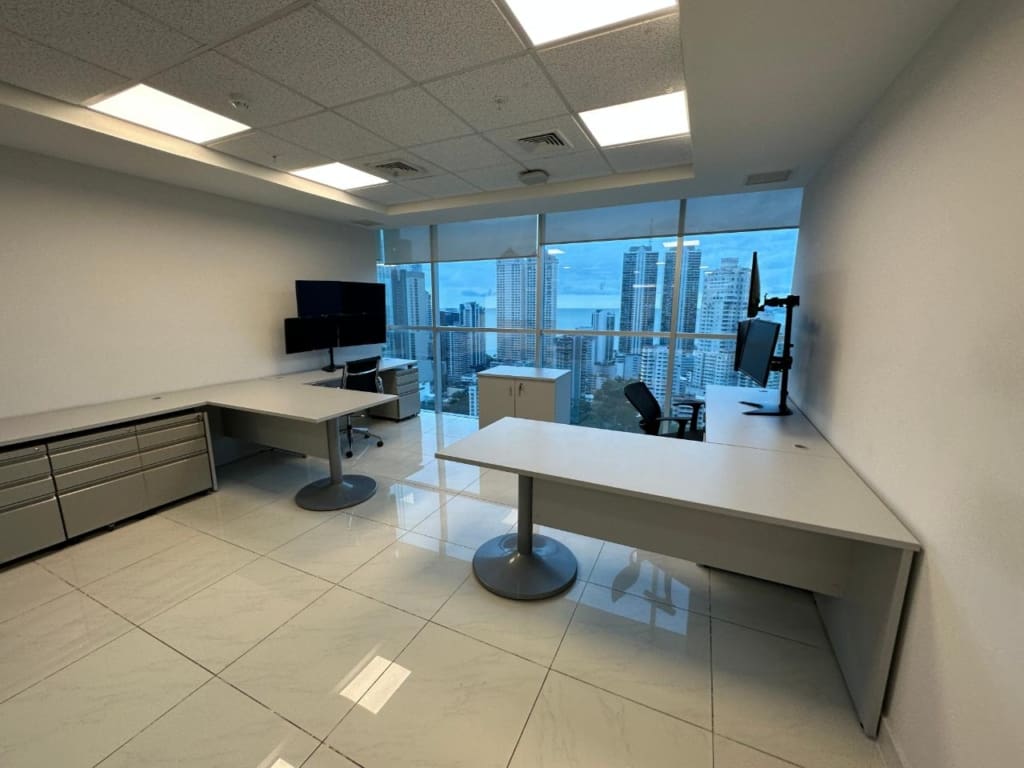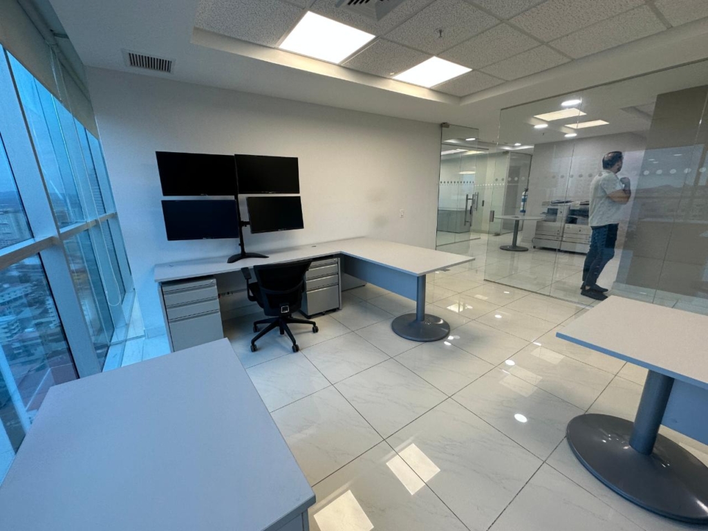 Galardonado con el Premio Magno MOA 2018 Gran lobby principal con finos acabados de mármol Amplio acceso y puerta cochera 4 elevadores de Alta Velocidad Planta eléctrica de 100% Sistema de alarmas contra incendio Detectores de calor y humo Sistema de Rociadores Controles de Acceso CCTV y Cámaras de Seguridad Seguridad 24 horas Luces de áreas comunes y escaleras de alta eficiencia Gran capacidad de reserva de agua Estacionamientos para clientes y visitantes Oficina ubicada en piso 21 Área: 373 m2 Completamente terminada Pisos de mármol Divisiones de vidrio templado Recepción Gran sala de conferencia 2 baños Cortinas Oficina presidencial Cafetería Despachos varios Sistema de A/A completo Cableado general Sistemas contra incendio completos Sistema de seguridad instalado Propuesta Oficinas totalmente terminadas, listas para ocupar. También contamos con pisos de oficinas en gris para diseño propio. Disponibilidad para colocar nombre en Azotea del edificio y monolito en entrada principal. Ubicación: Calle 51 y Federico Boyd Ciudad de Panamá.
