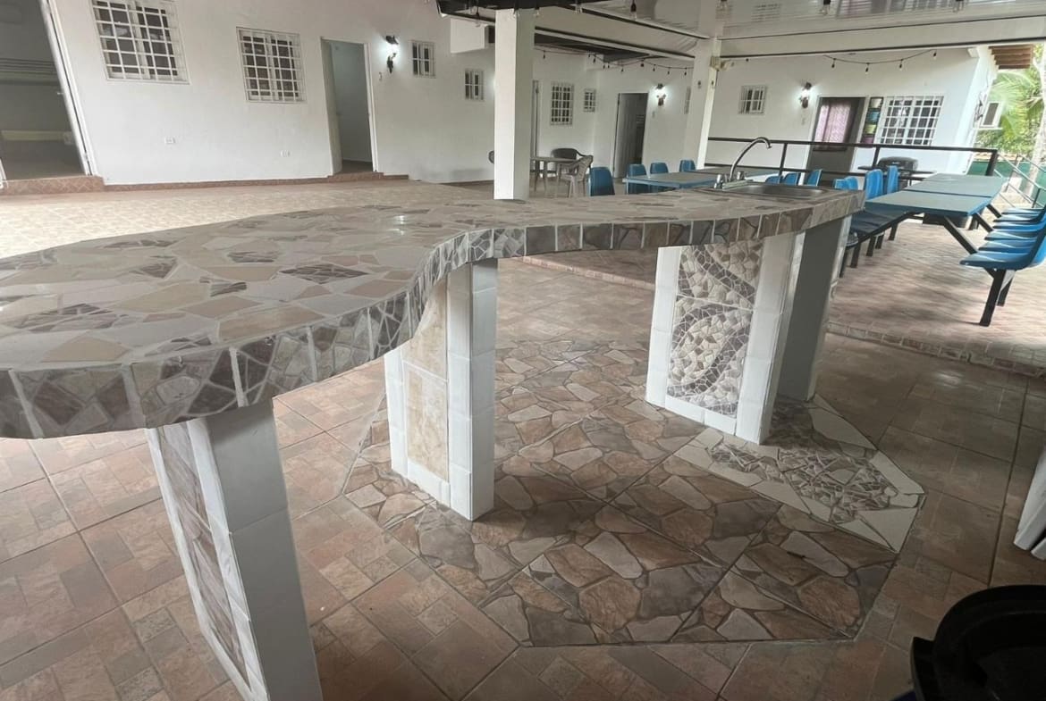 Extraordinario Hostal de 6 cuartos con baños, terraza y comedor para hasta 35 Personas. A solo 1 hora y 40 minutos de la ciudad de Panamá, 20 minutos de Coronado y a 30 minutos de Penonomé. A una distancia de 10 minutos de la playa. Tambien cuenta con un area de cocina externa, jacuzzi y piscina. Precio US$180,000.00