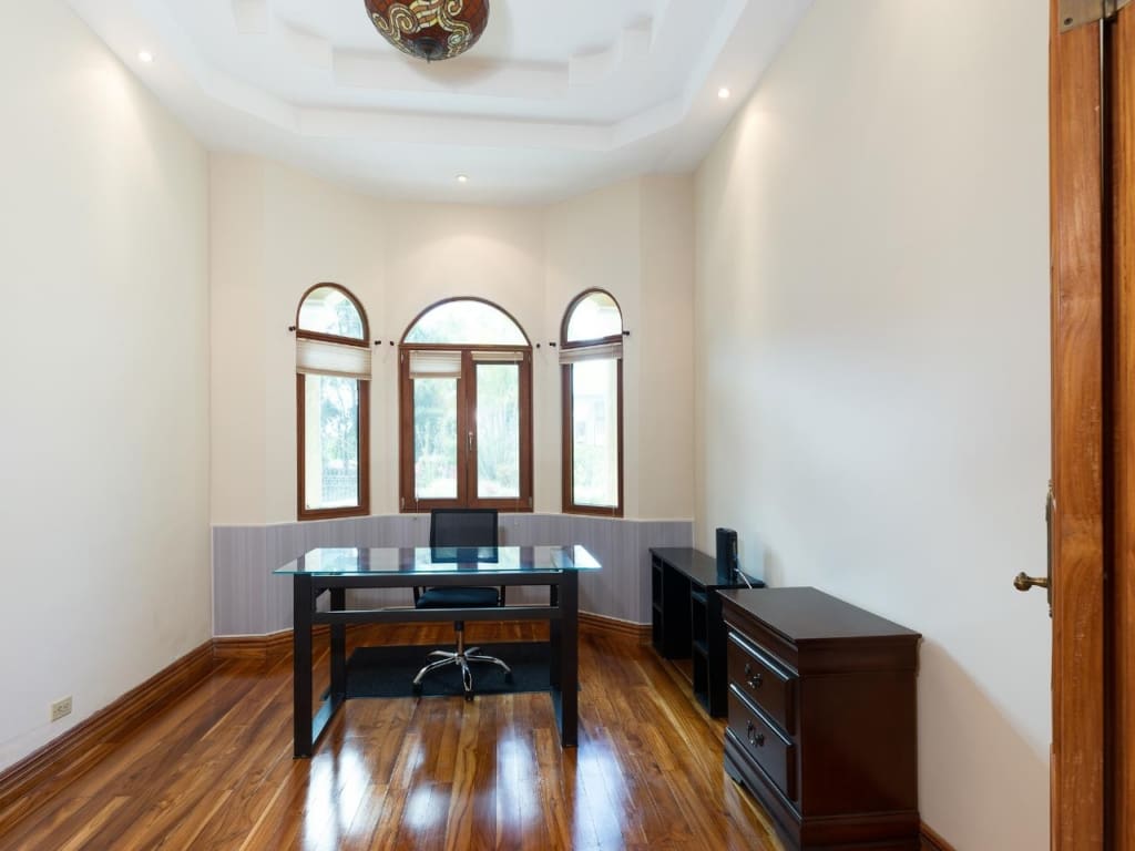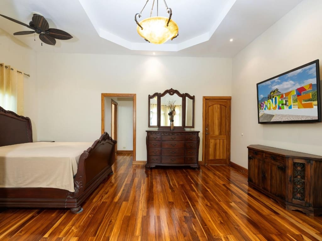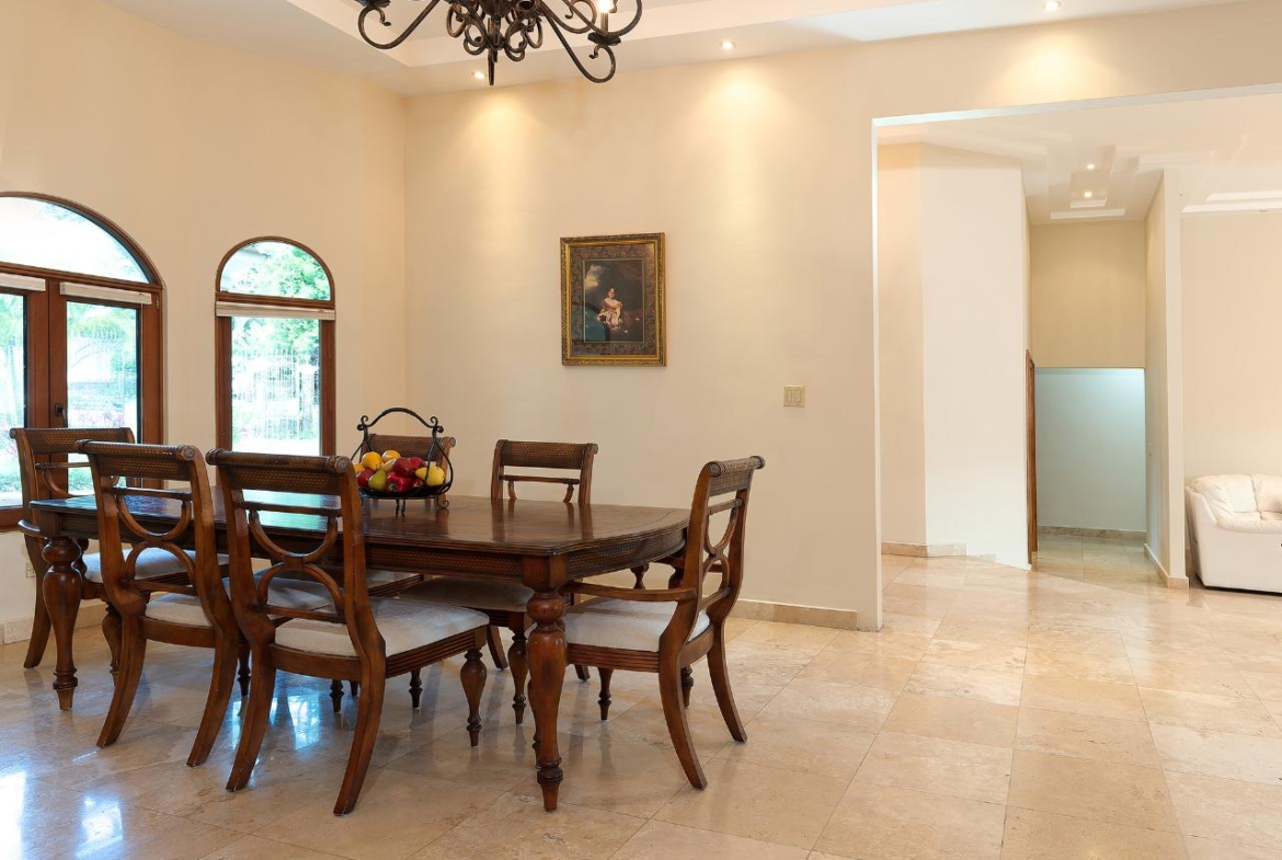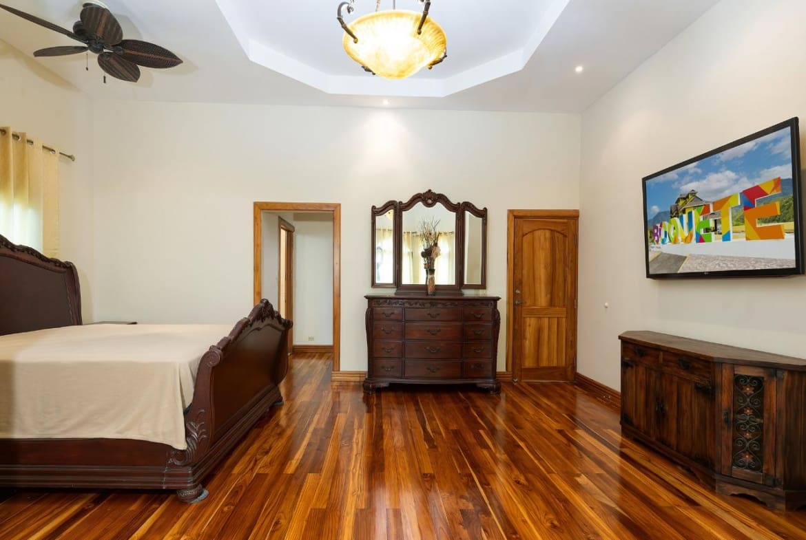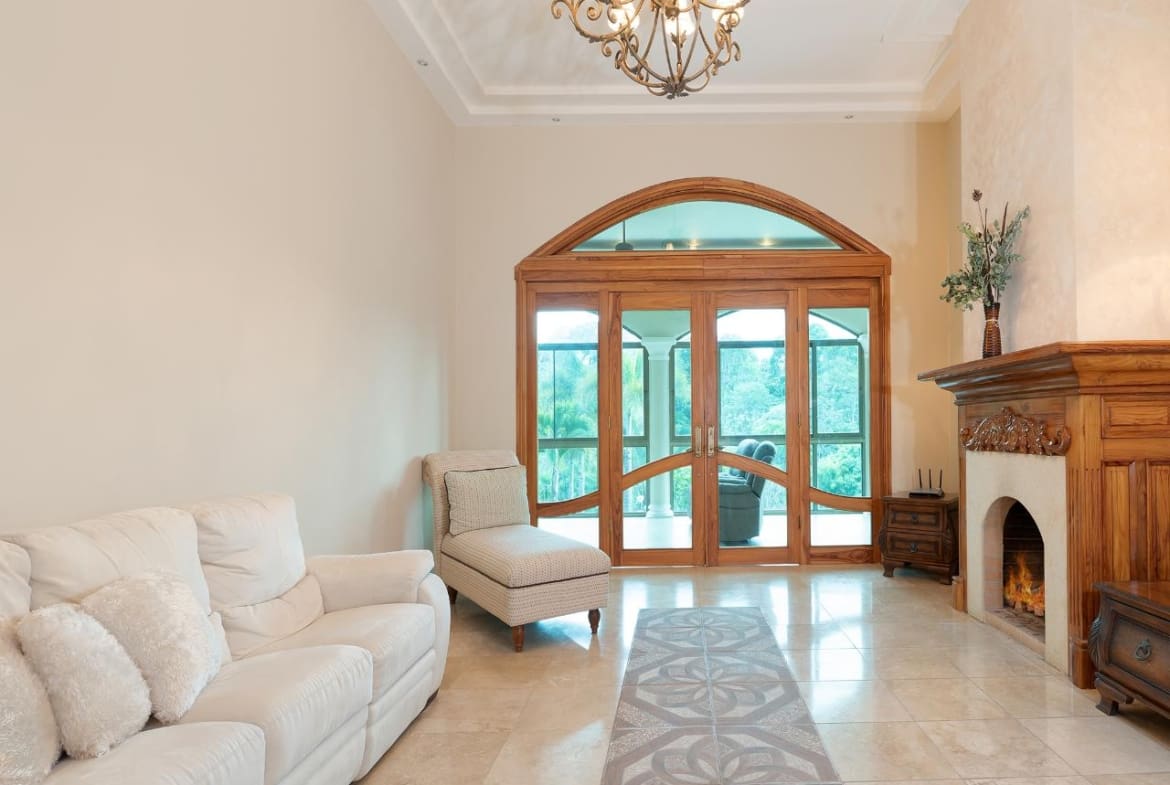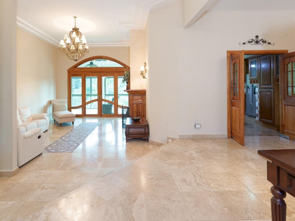 Bienvenido a esta impresionante casa de 6 dormitorios y 5.5 baños ubicada en el deseable vecindario de Santa Lucía, a solo minutos del centro de Boquete. Disfruta de la comodidad de las tiendas, cafés y restaurantes cercanos. Fabulosa sala de estar con techos altos de bandeja y una hermosa chimenea. La puerta de la terraza francesa conduce a una maravillosa terraza acristalada, que ofrece sensacionales vistas a la montaña. La cocina grande cuenta con gabinetes de madera, encimeras de granito y mucho espacio de almacenamiento, mientras que los electrodomésticos de acero inoxidable completan el sueño de este chef. Un espacioso comedor formal ofrece el escenario perfecto para entretener a los invitados. La planta principal cuenta con 4 amplios dormitorios, cada uno con su propio baño privado, y una mezcla de travertino y pisos de madera en todas partes. Un espacio de estudio/oficina ofrece versatilidad y el espacio perfecto para trabajar desde casa. El nivel inferior ofrece una entrada independiente con dos dormitorios adicionales, un baño y un estudio o sala de estar.
