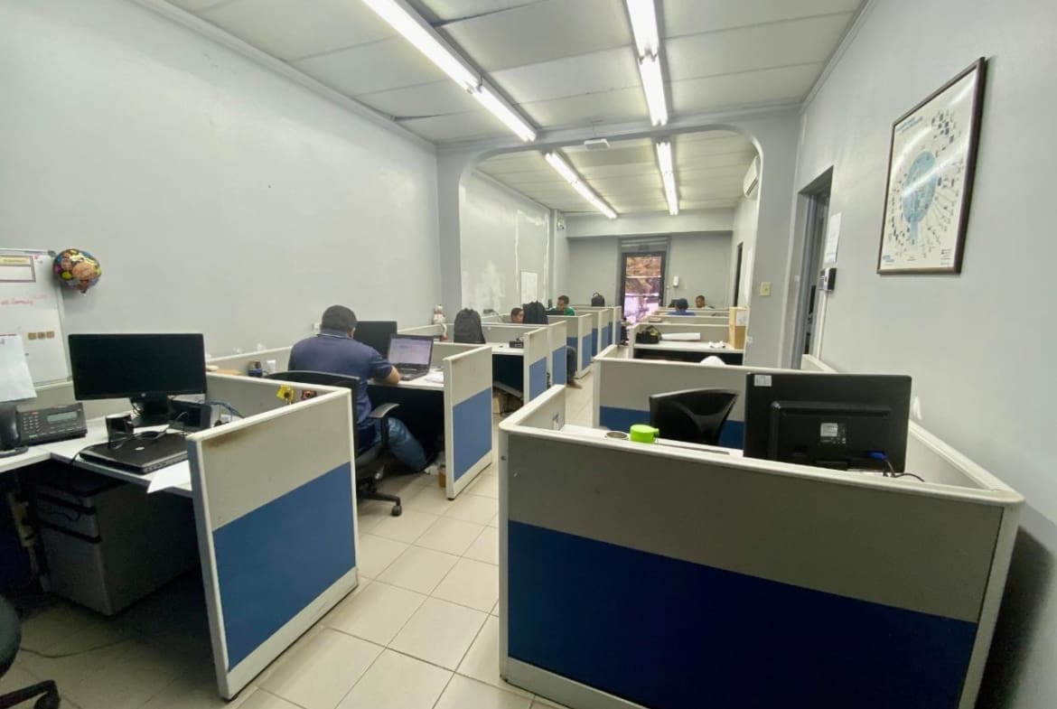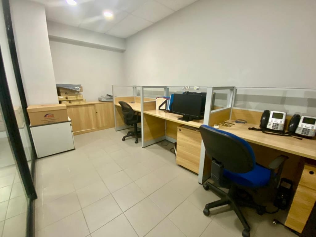 Local Comercial de dos piso con una excelente Ubicación en Marbella a pocos metros de la calle 50 tiene la ventaja de estar rodeado de restaurantes, Diferentes Comercios, Hospitales Y bancos Cuenta con recepción área de showroom, oficinas Administrativas Salón de conferencia, servicio, Sanitario para Visita de uso Múltiple para Administrativos. su construcción en términos generales, cuenta con piso concreto cubierto con baldosas de cerámica Importada, congrani revestida con alfombra diviciones de Gypsum Muebles Modulares puerta principal y ventanales de vidrio fijo puerta de madera plywood techo lámina Galvanizada sobre cielo raso, cuenta con sistema de aire acondicionado central, sanitario integrado, área de vestidores, deposito cuarto de limpieza y cafetería cuenta con una bodega planta baja y alta áreas de oficinas, paredes de bloques repellado, divisiones de gysum ventanas de vidrio fijo con marco de aluminio, puerta enrollable metalica, techo de losa tipo metaldeck,