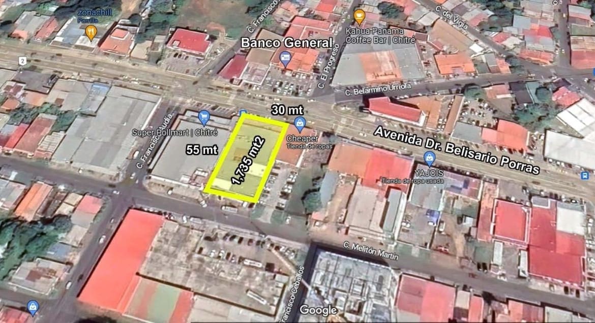 Local comercial de 1,735 mt2 en el centro de la Ciudad de Chitré, frente a la Ave. Dr. Belisario Porras, una de las mas importantes de Chitré, es ideal para supermercados, almacenes, ferreterías entre otros. Precio de venta: $2,000,000.00 Precio de alquiler: $12,000.00 Para mayor información contáctanos. www.grupogestiones.com