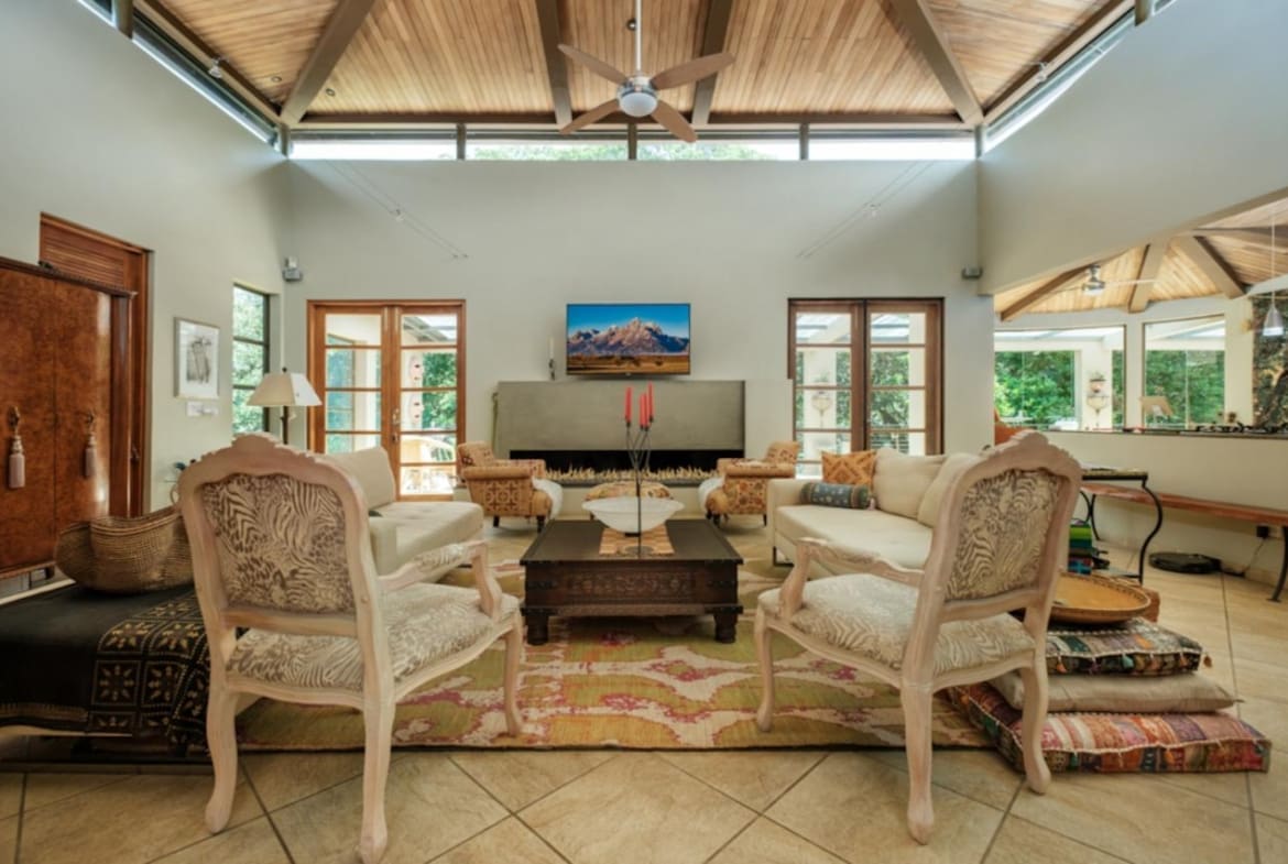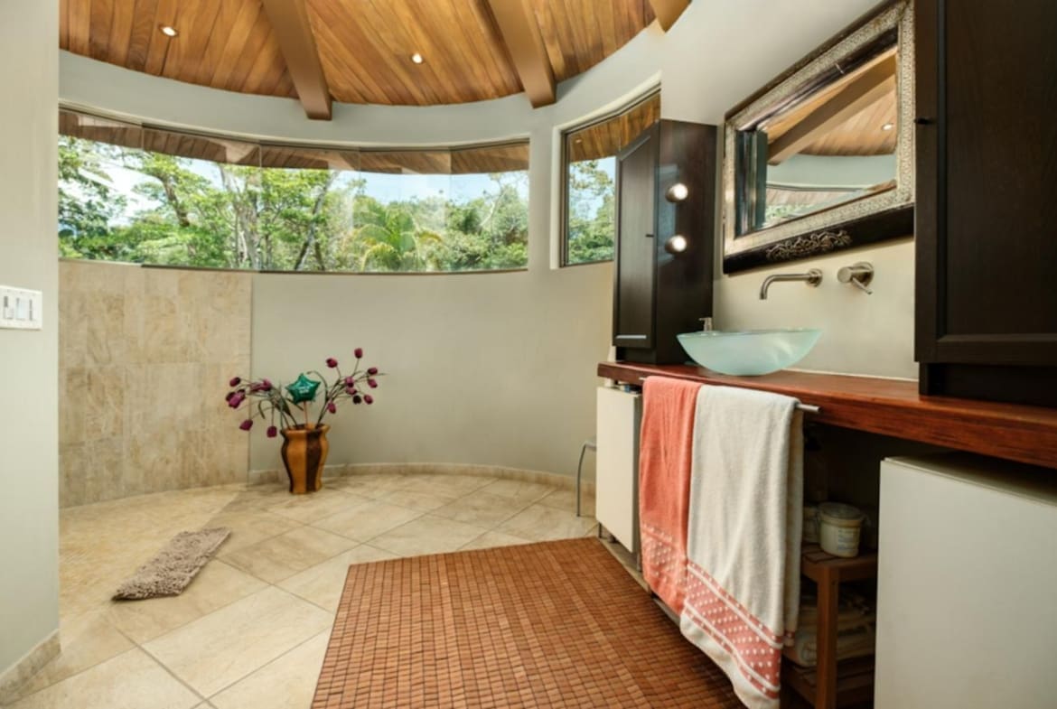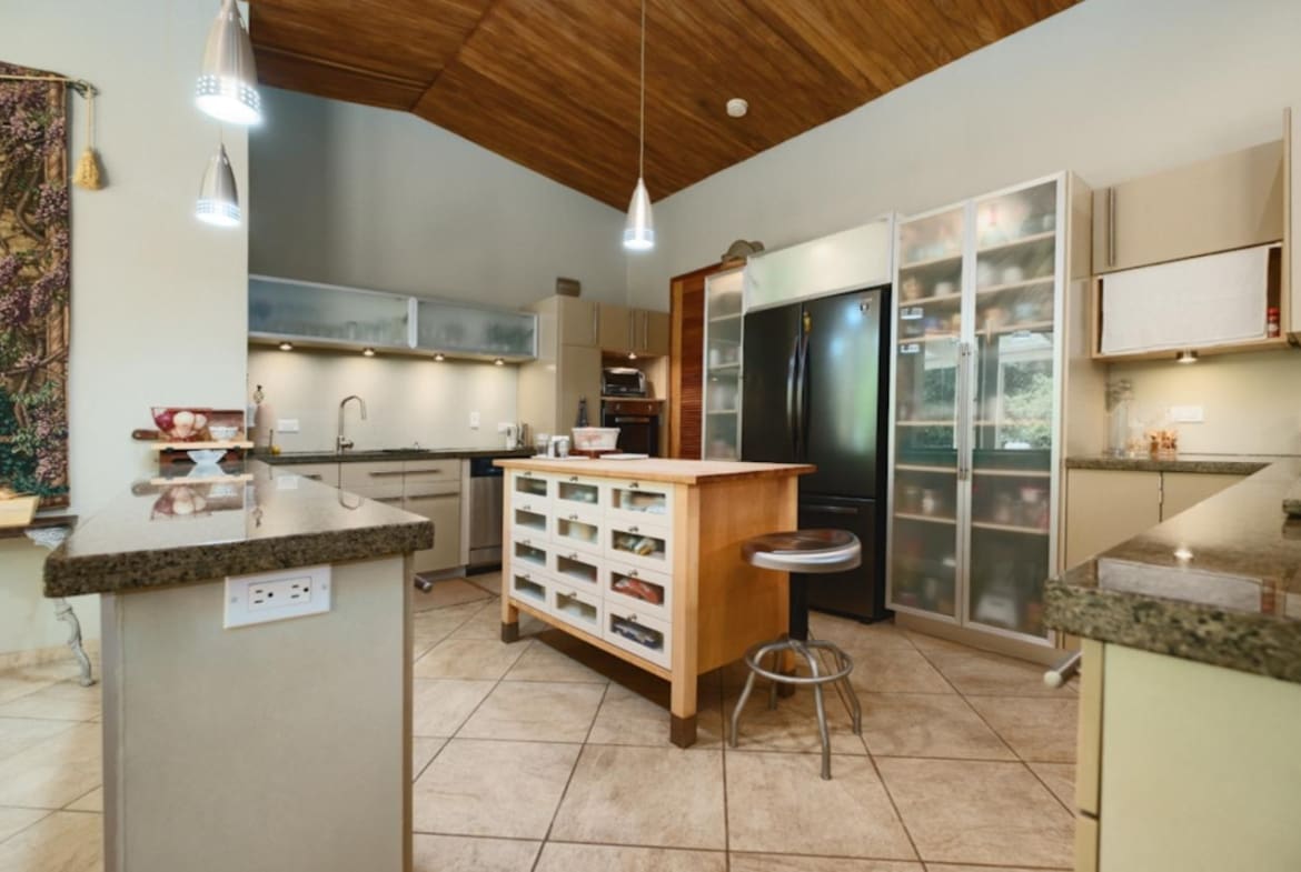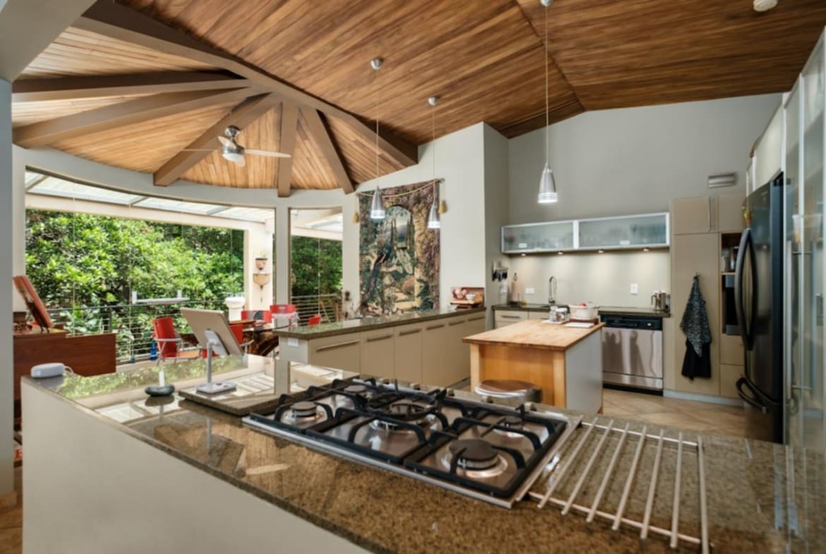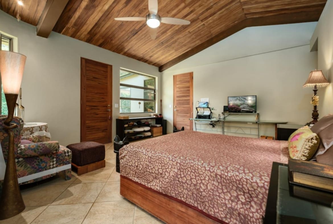 ¡Bienvenido a tu santuario de lujo y tranquilidad! Esta maravilla arquitectónica cuenta con puertas personalizadas con entrada sin llave, una chimenea hecha a medida y techos altos adornados con madera de Guanacaste. La cocina gourmet cuenta con azulejos de cerámica española, encimeras de granito y electrodomésticos de primera línea, perfectos para el entretenimiento. Retírese a suntuosas habitaciones con terrazas privadas y baños de California. En el exterior, descubra exuberantes terrenos con 38 variedades de palmeras, senderos serpenteantes y encantadores puentes. Disfrute de riego con arroyo vivo durante todo el año y de un sistema de filtración de agua trifásico. Las actualizaciones recientes incluyen pintura exterior y una revisión del techo en 2023. ¡No pierda esta oportunidad de disfrutar de serenidad y sofisticación!