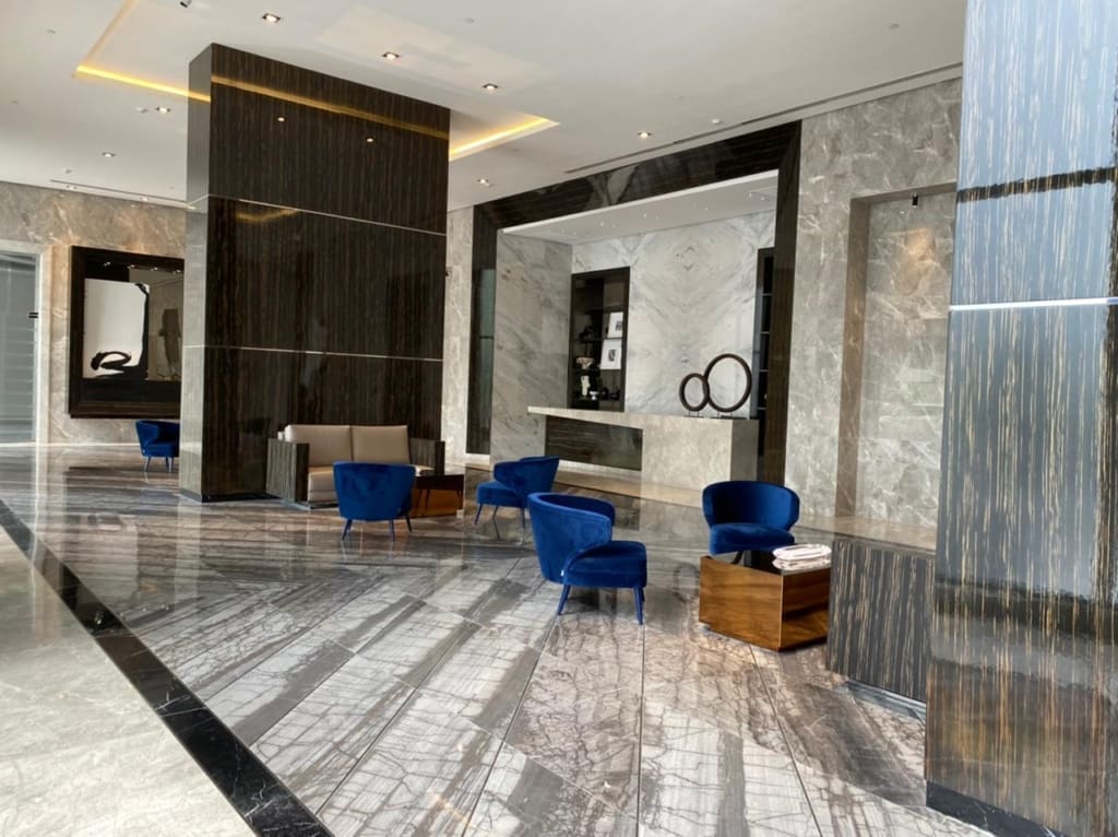 En Empire Residences, encontrarás una torre residencial que ha sido meticulosamente diseñada con una arquitectura vanguardista que cautivará tus sentidos desde el primer momento. Su imponente lobby, completamente revestido en mármol y con una doble altura, te recibirá con elegancia y sofisticación cada vez que entres en este edificio de ensueño.