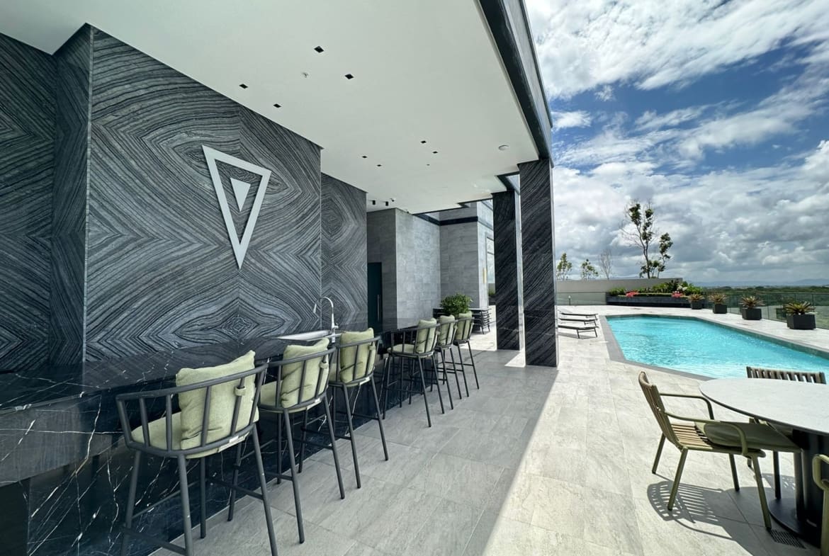 Para complementar tu estilo de vida, hemos creado un área social que te dejará sin aliento. Disfruta de una refrescante piscina para adultos y otra para niños, un pool bar techado y un sun deck para relajarte bajo el cálido sol. Los más pequeños de la familia tendrán su propio cuarto de juegos con vista a la piscina, mientras que los amantes del ejercicio podrán mantenerse en forma en nuestro gimnasio de primer nivel.