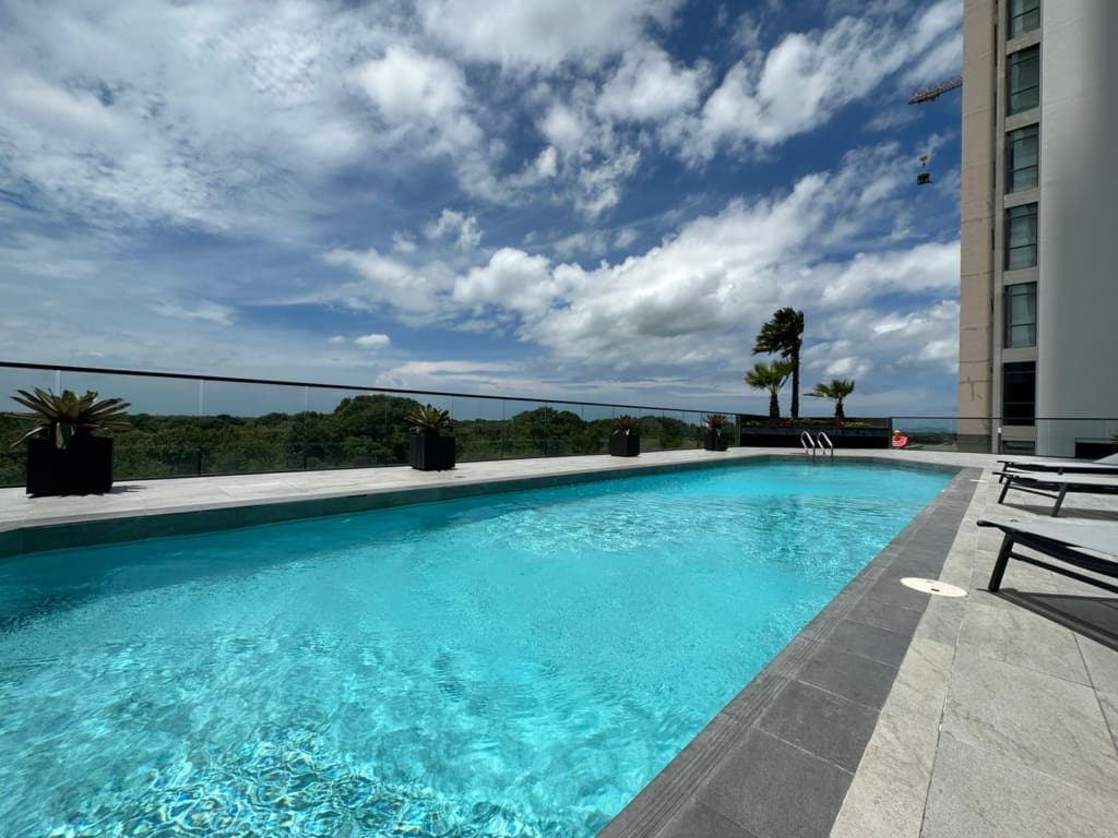 Imagina ascender en tu propio ascensor con acceso directo al apartamento, lo que significa que serás recibido en un foyer privado y exclusivo. Los amplios ventanales permitirán que la luz natural ilumine cada rincón, mientras que la ventilación cruzada te brindará una sensación refrescante en todo momento. Además, podrás deleitarte con una despejada y hermosa vista que te permitirá conectar con la naturaleza y la majestuosidad de la cancha de golf y el mar.