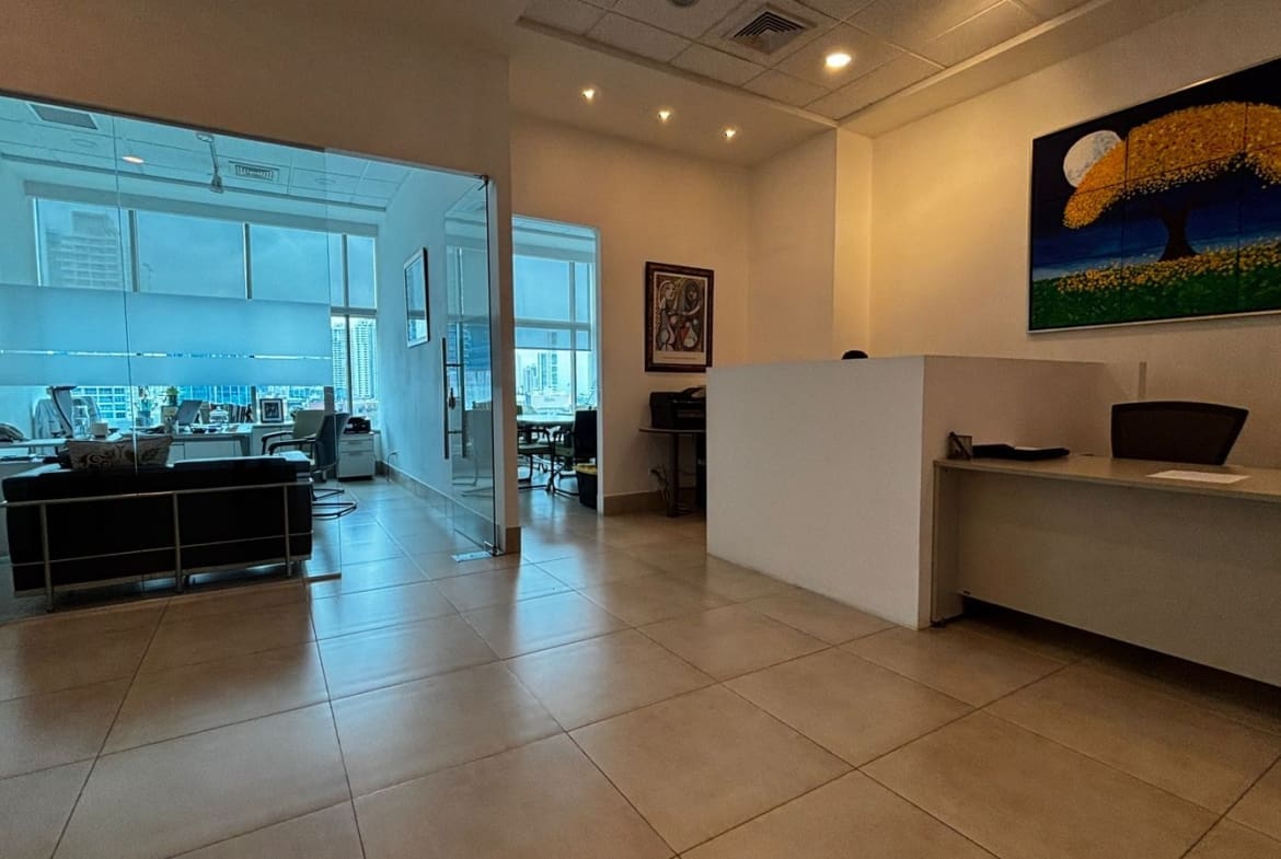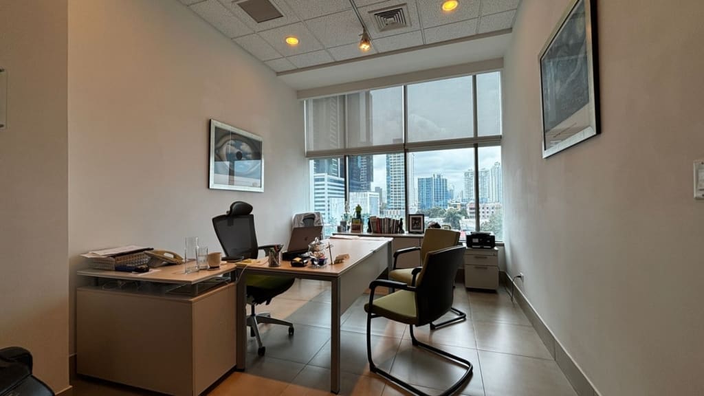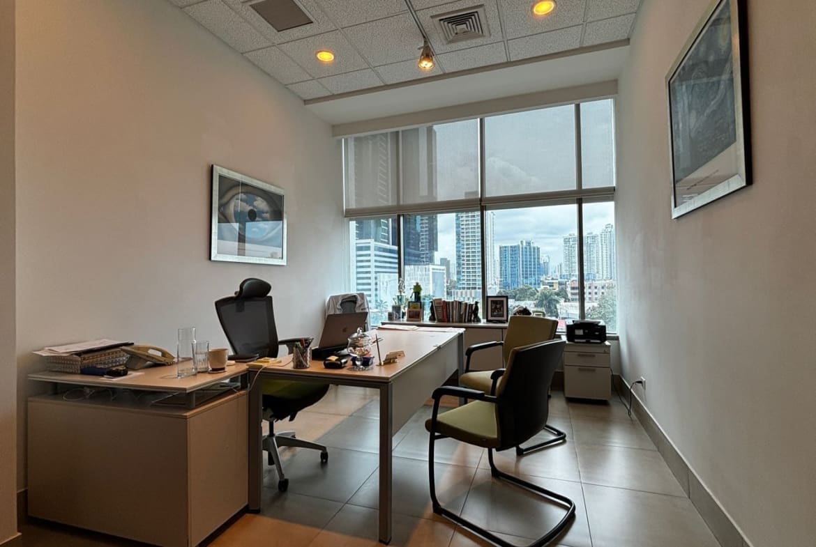 Moderna oficina de 148.50 m² ubicada en el reconocido Edificio PWC en Obarrio, una de las zonas comerciales más exclusivas de la ciudad. Ideal para firmas profesionales, consultoras o empresas que buscan una ubicación estratégica y un espacio funcional.