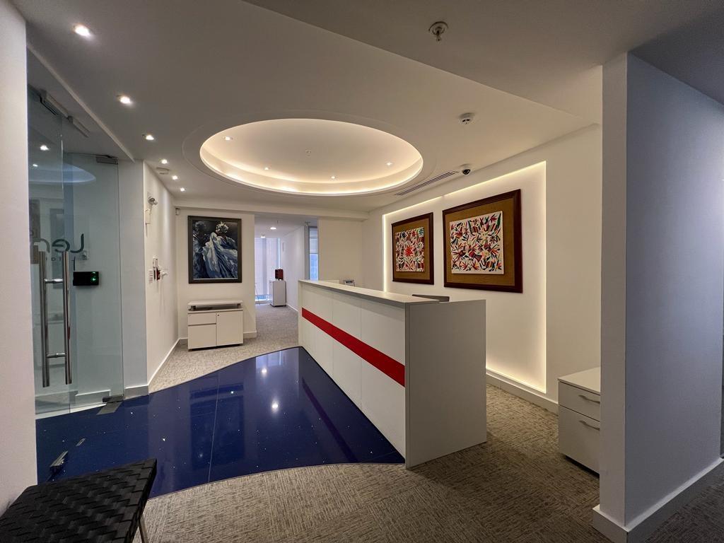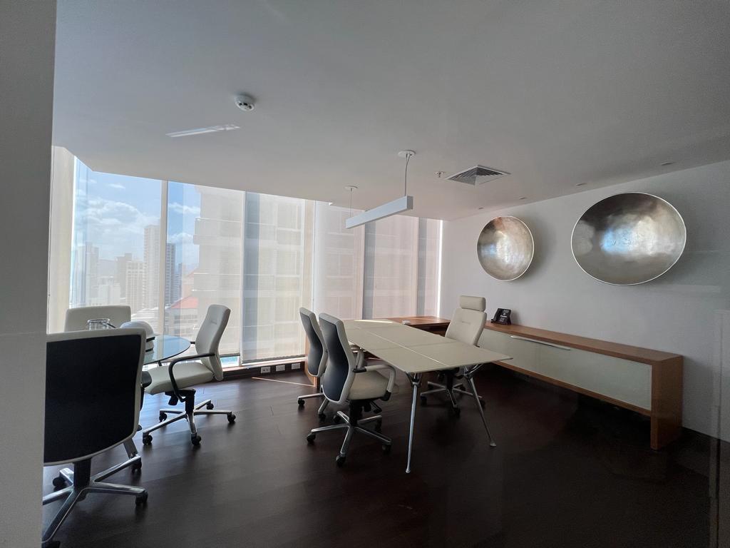 Torre SFC es un edificio comercial ubicado en el corazón empresarial de Obarrio finamente amoblado con mobiliario Fursys y Codutti . Es un piso completo de 419 M2 que se encuentra distribuido de la siguiente manera: – 6 oficinas Ejecutivas – 11 oficinas de 2, 3 y hasta seis personas – Cuenta con un moderno salón de conferencias – Área de cafetería – Baños para damas y caballeros – 7 estacionamientos – Vista 360 Grados de la Ciudad – Aire Acondicionado – Conexión a Internet – cableado de fibra óptica y servicio de telefonía – Seguridad las 24 horas y acceso a todas las áreas comerciales de la ciudad. ChatGPT Se pone a la venta una oficina en la Torre SFC, ubicada en la calle 55 de Obarrio, un destacado edificio comercial situado en el epicentro empresarial de la zona. Esta propiedad, elegantemente amoblada con mobiliario de alta calidad de las marcas Fursys y Codutti, ofrece un piso completo con una superficie total de 419 metros cuadrados. La distribución interna de la oficina es notable y comprende: Seis oficinas ejecutivas. Once oficinas diseñadas para albergar de 2 a 6 personas. Un moderno salón de conferencias. Un área de cafetería. Baños separados para damas y caballeros. Siete estacionamientos exclusivos. Impresionantes vistas panorámicas de 360 grados de la ciudad. Equipada con aire acondicionado. Conexión a Internet. Cableado de fibra óptica y servicio de telefonía. Sistema de seguridad operativo las 24 horas, con acceso a todas las áreas comerciales de la ciudad. Esta oficina en venta en la Torre SFC no solo ofrece un espacio de trabajo funcional y moderno, sino también una ubicación estratégica que facilita el acceso a las principales áreas comerciales de la ciudad. No pierda la oportunidad de adquirir este espacio comercial único y bien equipado.