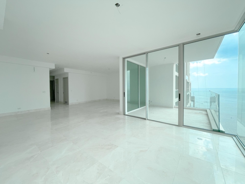 Oportunidad en Pacific Point Torre 400 ubicado en Punta Pacifica es un moderno edificio de lujo de 48 pisos frente al Océano Pacífico. El apartamento de 309.74m2 esta distribuidos en amplia sala con iluminación natural y finos acabados, comedor, estudio, sala familiar, medio baño de visita, balcón con vista al mar, cocina con desayunador, 3 recámaras completas, lavandería, cuarto y baño servicio, 2 estacionamientos y 1 deposito. Además este magno proyecto cuenta con las más estratégicas medidas de seguridad, como una gran muralla en todo el perímetro del proyecto, control de acceso, garitas individuales para cada 2 torres de apartamentos, la garita principal le dará acceso a la casa club y a las villas. La torre cuenta con vestíbulo principal con doble altura finamente decorado y con aire acondicionado, salón de fiestas y eventos, salón de juegos para niños, jardines decorados, piscina, extensas áreas verdes y de juegos para los niños, health club con gym, aeróbicos, sauna y área de masaje tipo spa.